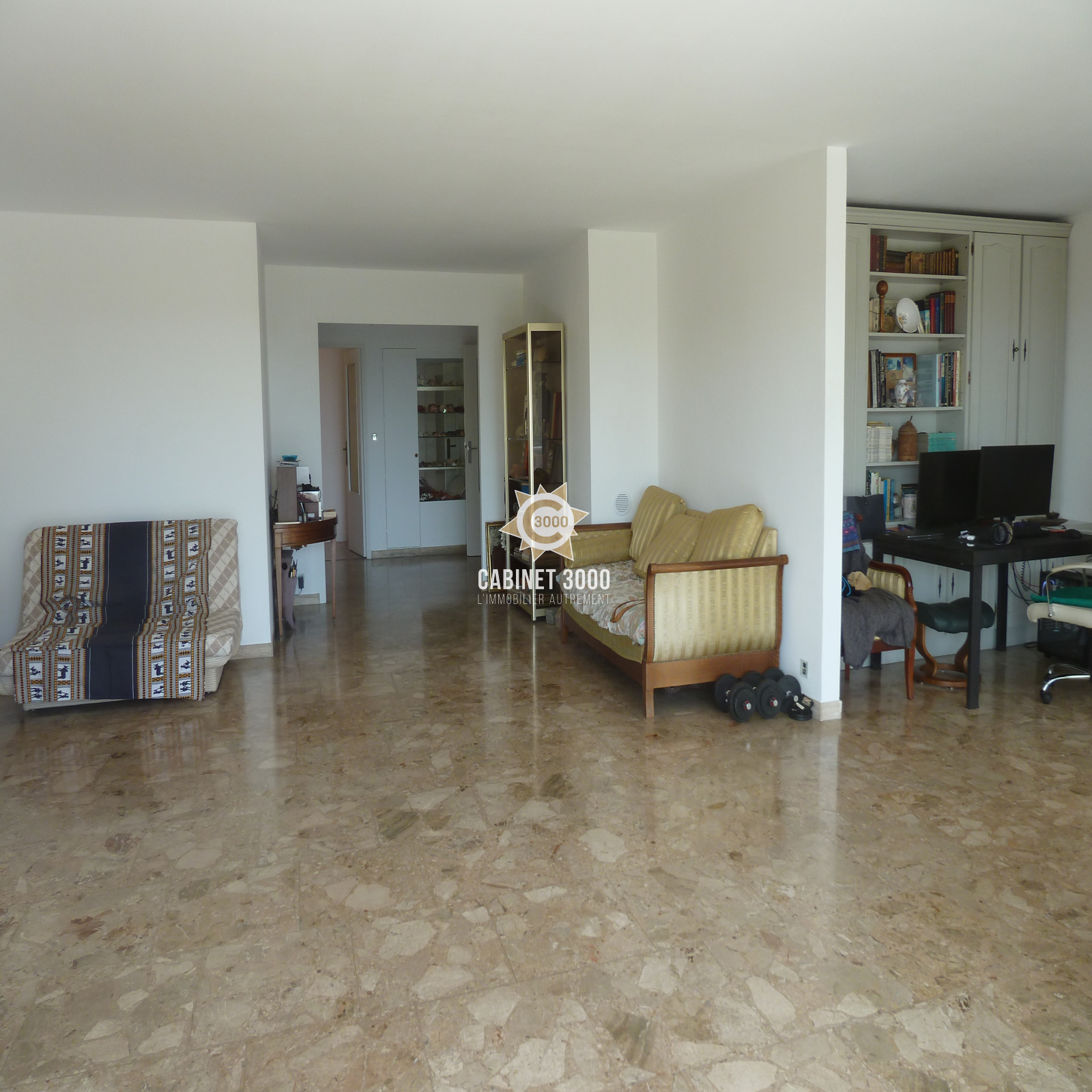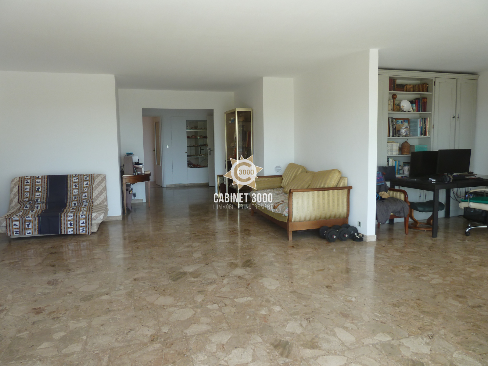 EXCLUSIVITE - A Toulon, Bas Faron, au 1er étage sur 4 avec ascenseur, beaux volumes pour ce lumineux appartement de type T5 de 112 m², traversant, comprenant : cuisine, salon/séjour de 48 m² donnant sur terrasse Sud de 17 m² avec aperçu mer, 2 chambres, bureau, salle de bain, WC, cave, garage et grand parking collectif dans copropriété de standing fermée, au fond d'une impasse au calme.