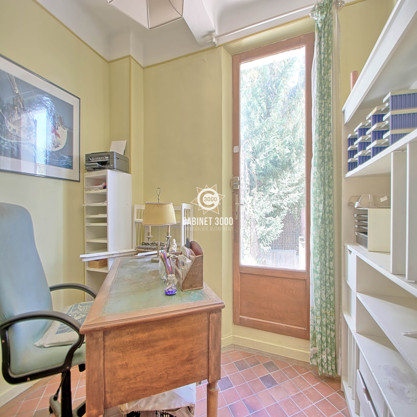 EXCLUSIVITE - A Toulon, Petit Bois-Cap Brun, au fond d'une impasse, dans maison bourgeoise 1900, lumineux appartement T6 de 150 m² vue mer, comprenant : cuisine, salon, 4 chambres, bureau, salle de bain, salle d'eau, 2 WC, buanderie, cheminées, cellier, terrasse de 25 m², cave, dépendance de 23 m² donnant sur jardin en jouissance exclusive de 180 m² et 2 parkings privés, à proximité des plages à pied.