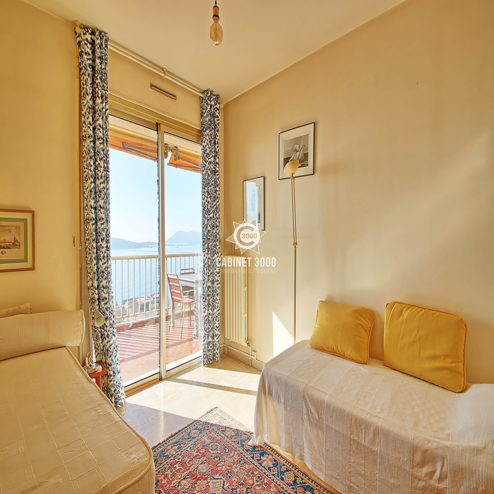 EXCEPTIONNEL - A Toulon, Le Mourillon, au 7ème et dernier étage avec ascenseur, vue mer panoramique pour ce lumineux appartement de type T6 de 133 m² comprenant : cuisine, salon/séjour donnant sur terrasse de 24 m², 4 chambres, salle de bain, salle d'eau, 3 WC, cave de 26 m² et garage de 15 m² dans copropriété fermée avec gardien, tennis et piscine.