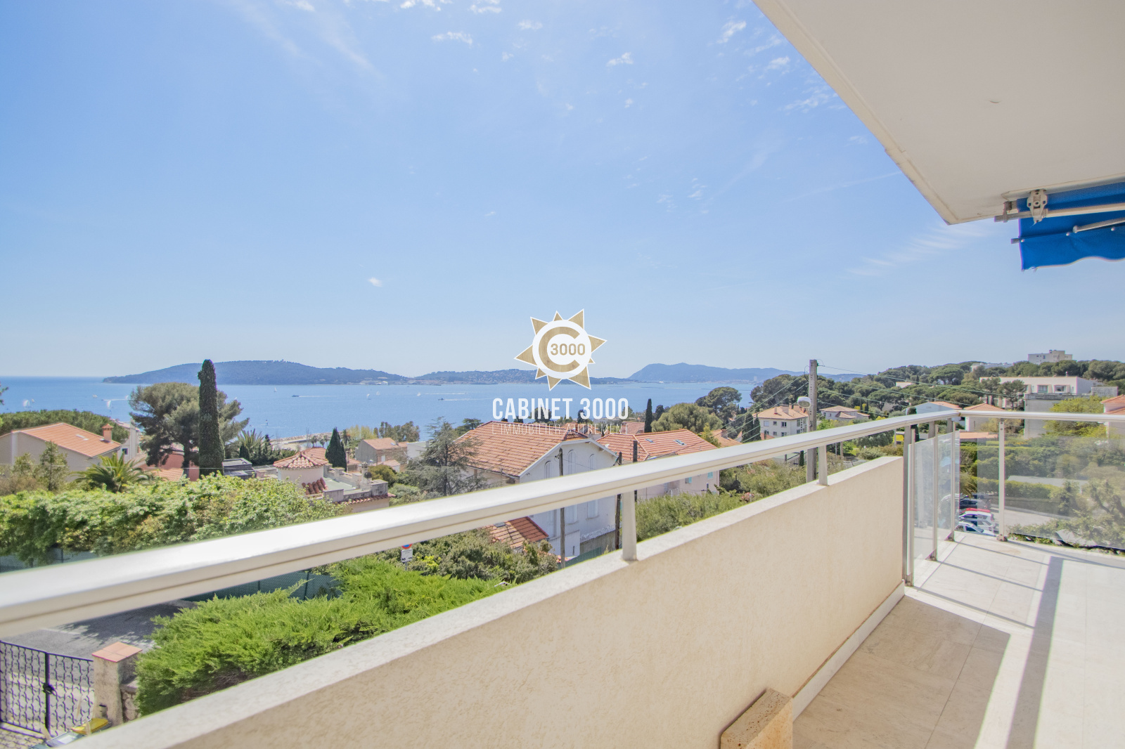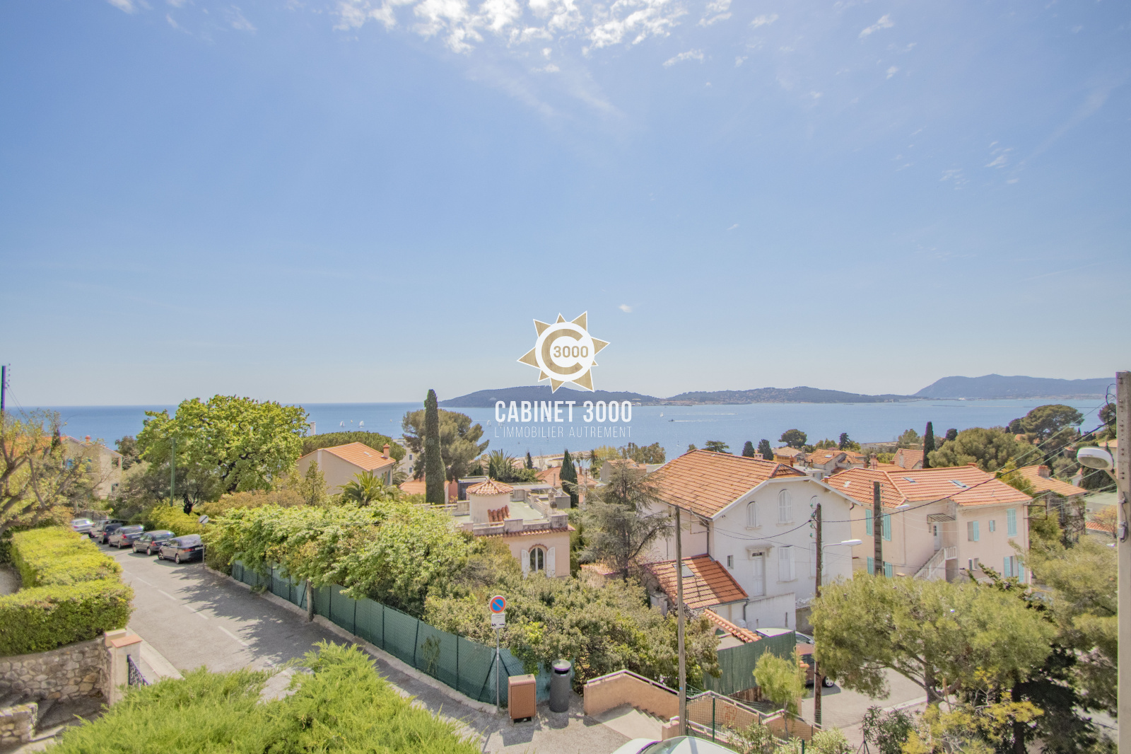 EXCLUSIVITE - A Toulon, Mourillon-Lamalgue, au 3ème étage avec ascenseur, dans petite copropriété de standing, vue mer panoramique pour ce lumineux appartement de type T5 de 98 m², comprenant : cuisine avec loggia, salon/séjour donnant sur terrasse, 3 chambres avec balcons, salle de bain, salle d'eau, 2 WC, cave et garage de 22 m², à proximité des écoles et des plages.