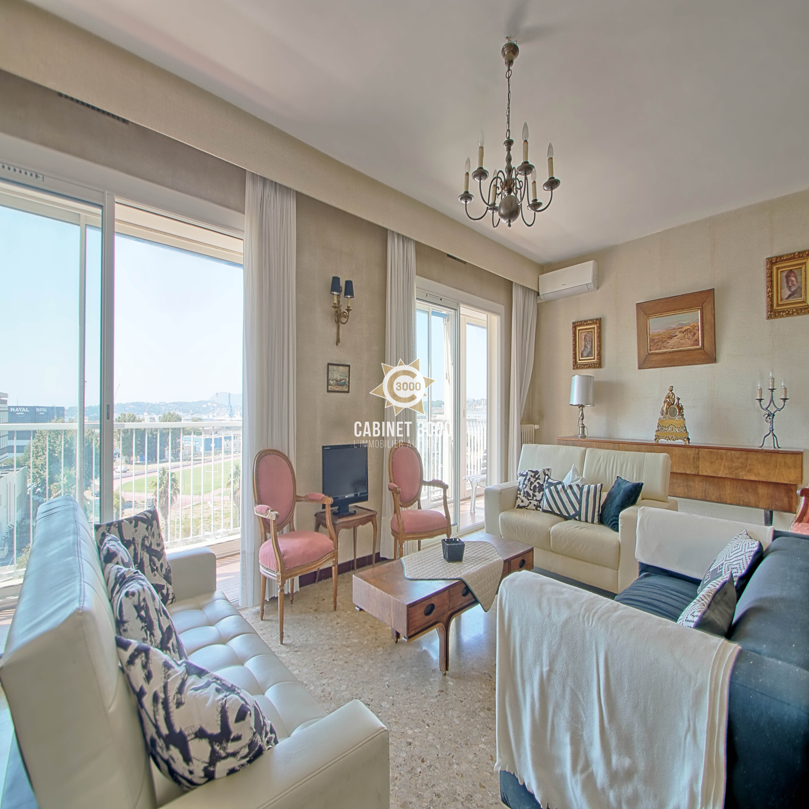 A Toulon, Saint Roch, dans copropriété avec gardien, au 5ème étage sur 6 avec ascenseur, beaux volumes pour ce lumineux appartement de type T5 de 133 m², traversant Nord-Sud, comprenant : cuisine, salon/séjour de 43 m² donnant sur loggia, 3 chambres dont une avec loggia, 2 salles de bain, 2 WC, buanderie, cave, à proximité de la Gare, de la base navale et des commerces. Rafraichissement à prévoir. Possibilité de parking ou de garage.