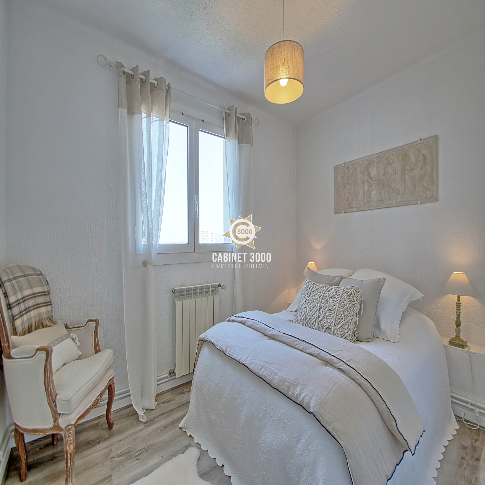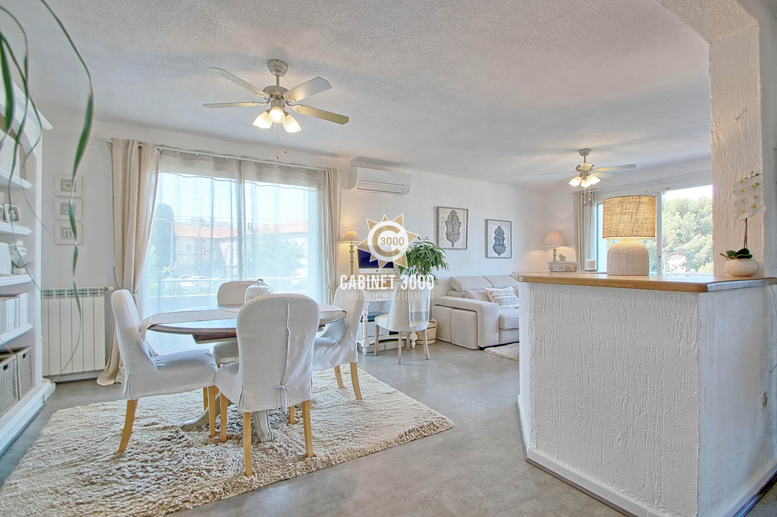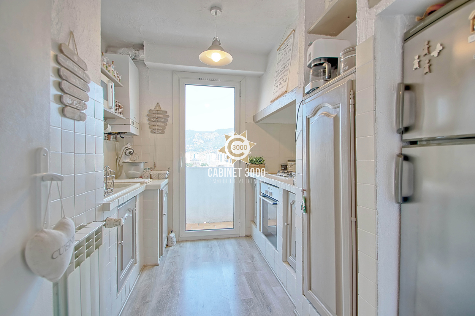 A Toulon, Mourillon-Lamalgue, au 3ème et dernier étage, sans ascenseur, dans copropriété fermée, vue dégagée et dominante pour cet appartement de type T3 de 63 m², comprenant : cuisine avec jolie vue sur le Faron, salon/séjour donnant sur balcons vue mer, 2 chambres avec placard, salle d'eau, wc, cave et place de parking privative. Faibles charges.