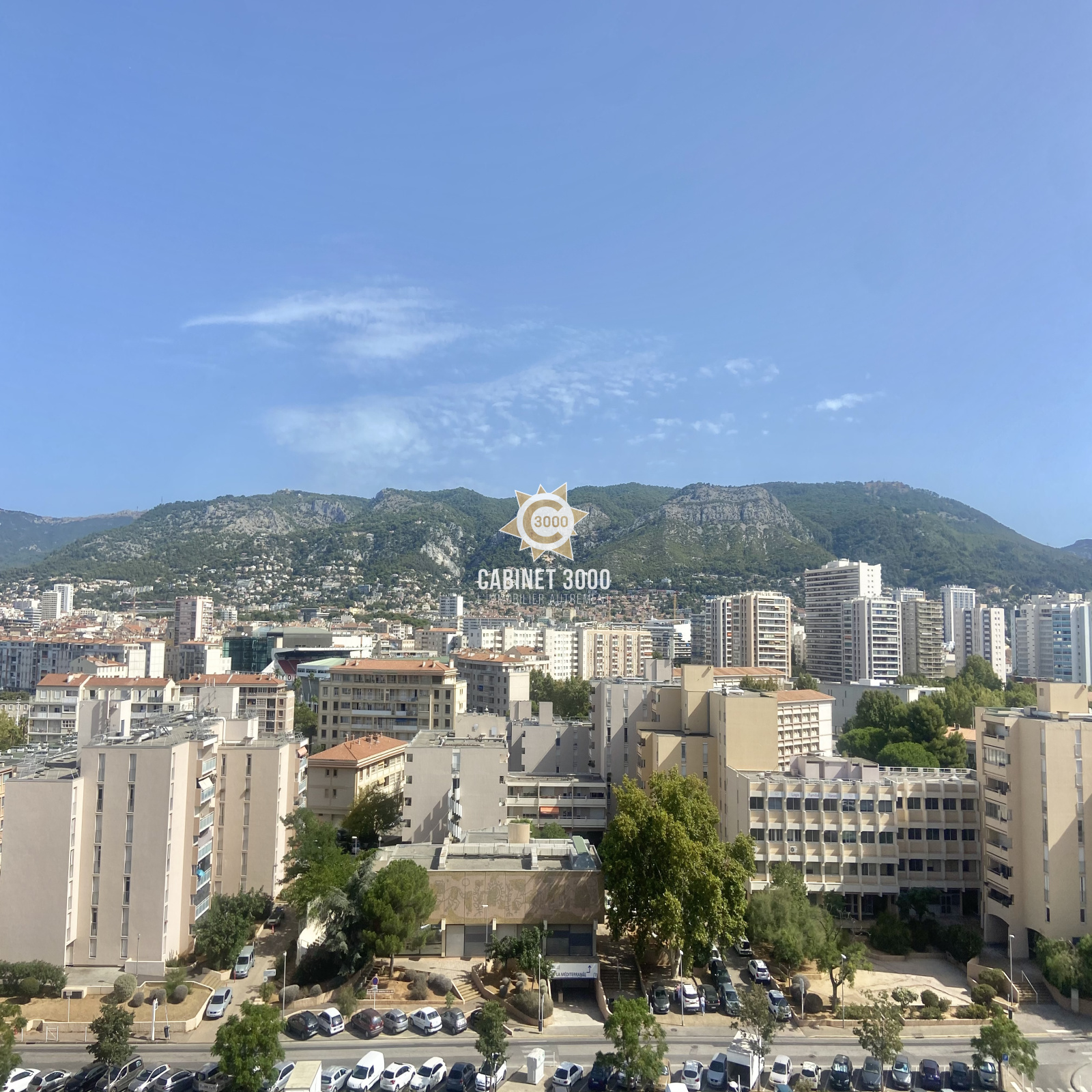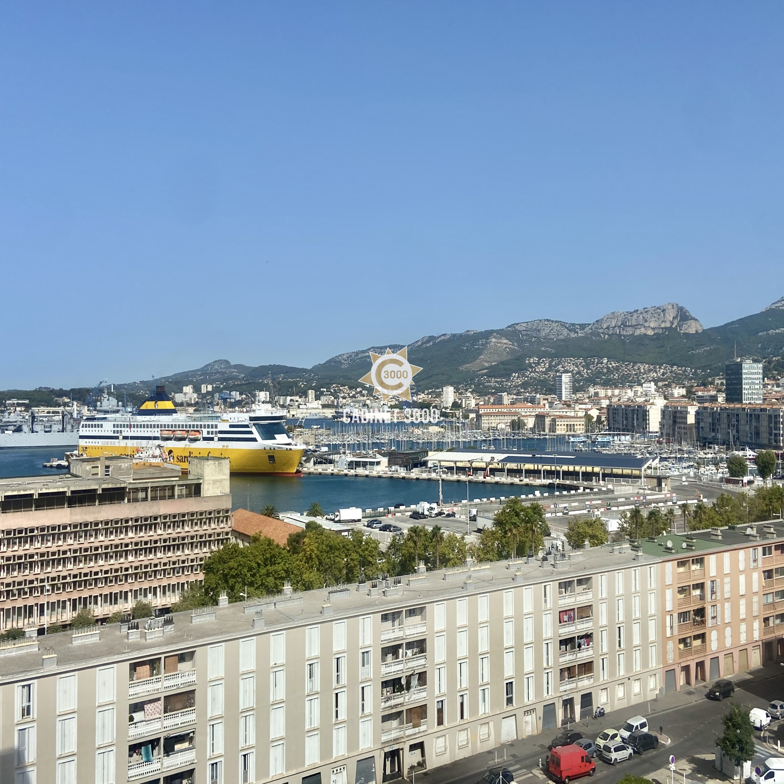 A Toulon, Port Marchand, L'Onyx, au 10ème étage sur 14 avec ascenseur et gardien, lumineux appartement de type T3 de 54 m², traversant Nord-Sud, comprenant : cuisine fermée, salon, 2 chambres dont une donnant sur balcon avec vue mer, salle d'eau, WC, buanderie et cave, à 5 minutes à pied du marché du Mourillon. A rafraichir.