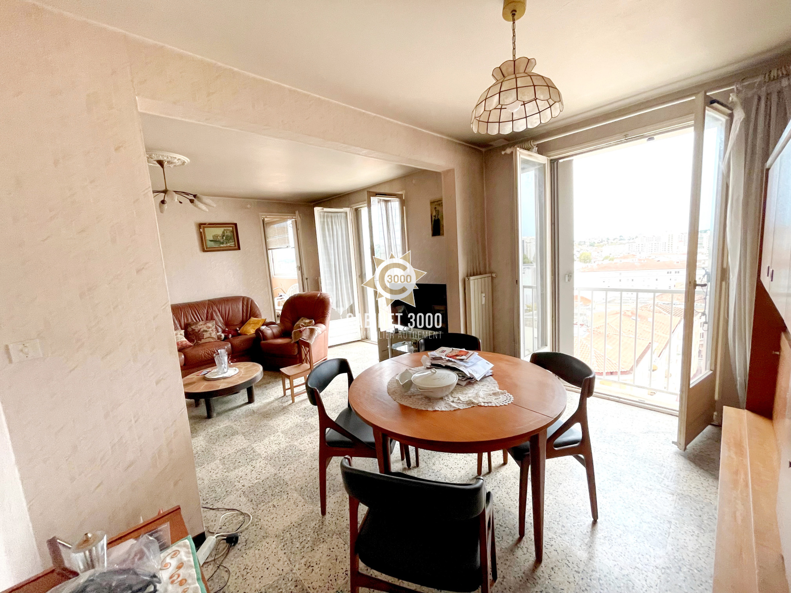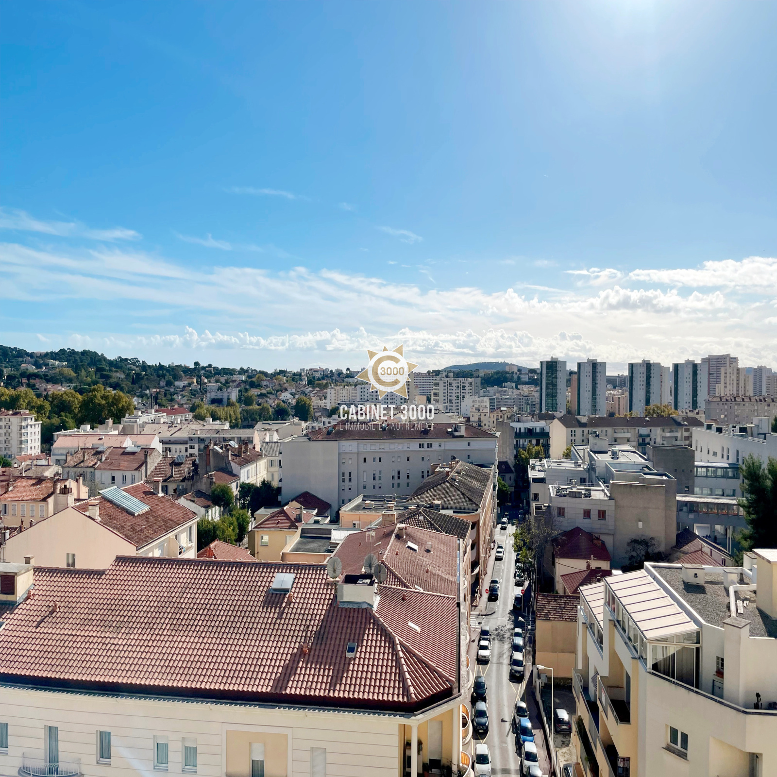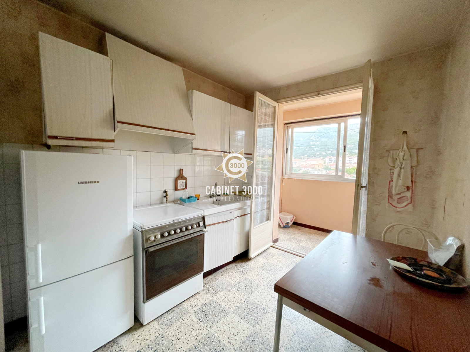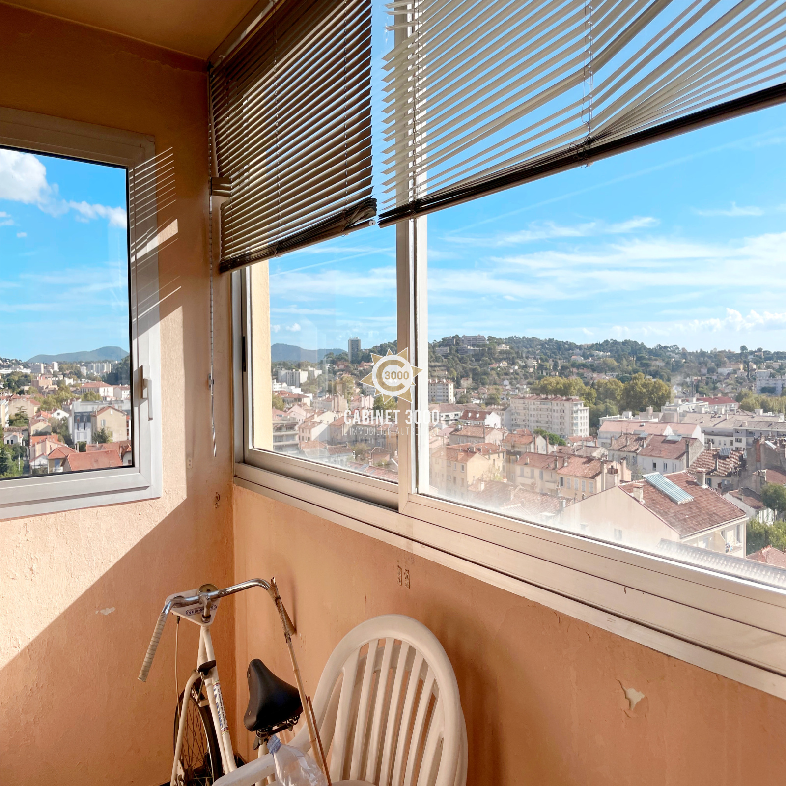 A RAFRAICHIR - A Toulon, Haut de Saint Jean, au calme, dans résidence fermée, sécurisée, au 9ème et dernier étage avec ascenseur, vue dégagée pour ce lumineux appartement de type T4 de 80 m², traversant, comprenant : entrée avec dressing, cuisine avec loggia fermée et cellier, salon/séjour donnant sur balcon fermé, 2 chambres, salle de bain, WC et parking collectif, à deux pas des écoles et des commerces. Possibilité d'achat d'un garage en plus.