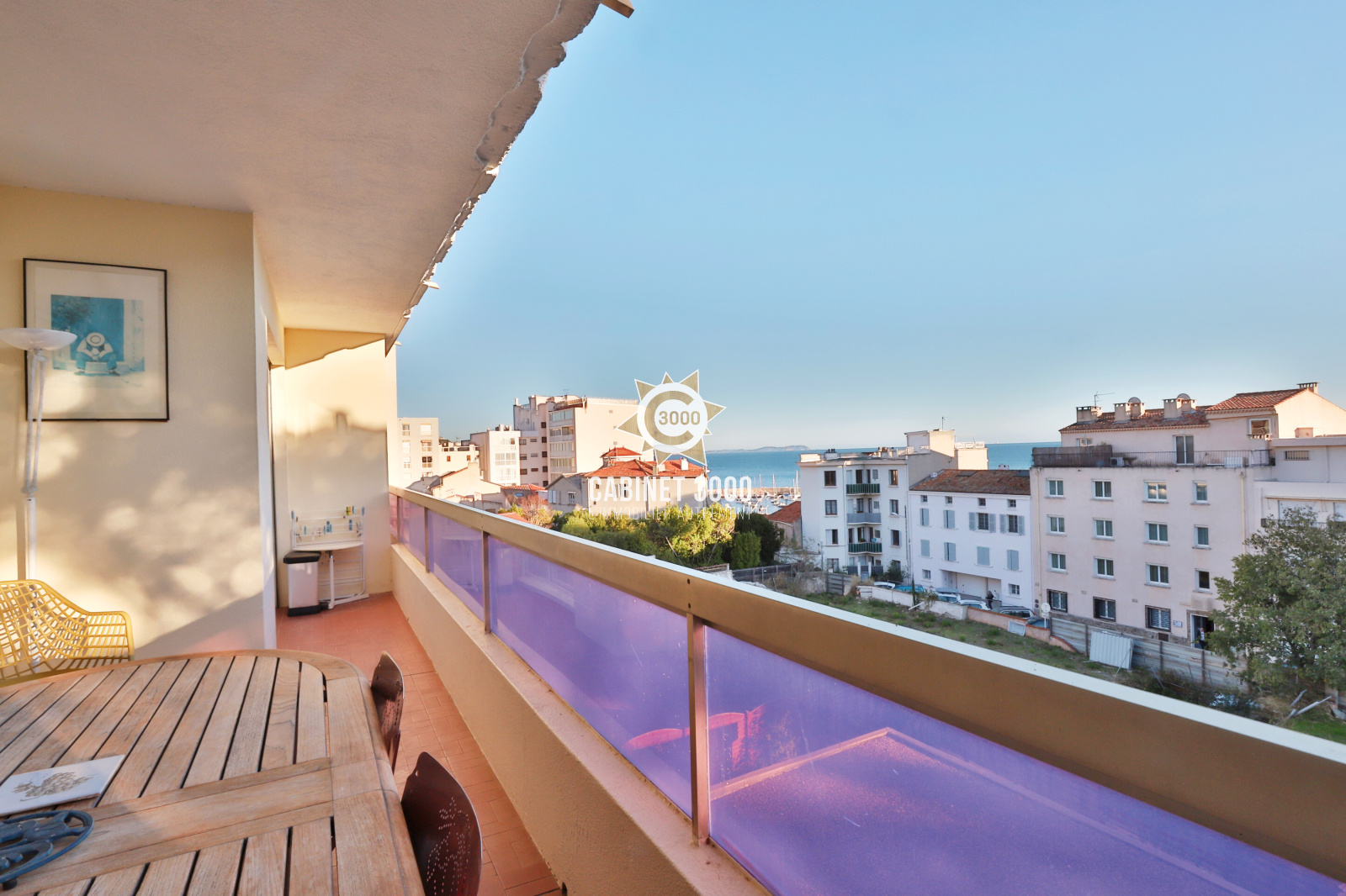 A Toulon, Le Mourillon, au 3ème étage sur 4 avec ascenseur, vue mer pour ce lumineux appartement de type T4 de 81 m² aux beaux volumes, traversant Sud-Nord, comprenant : entrée avec placards, cuisine, salon/séjour, 3 chambres, salle d'eau, WC, terrasse, balconnets, cave et parking en sous-sol, à deux pas des plages, des commerces et des écoles.