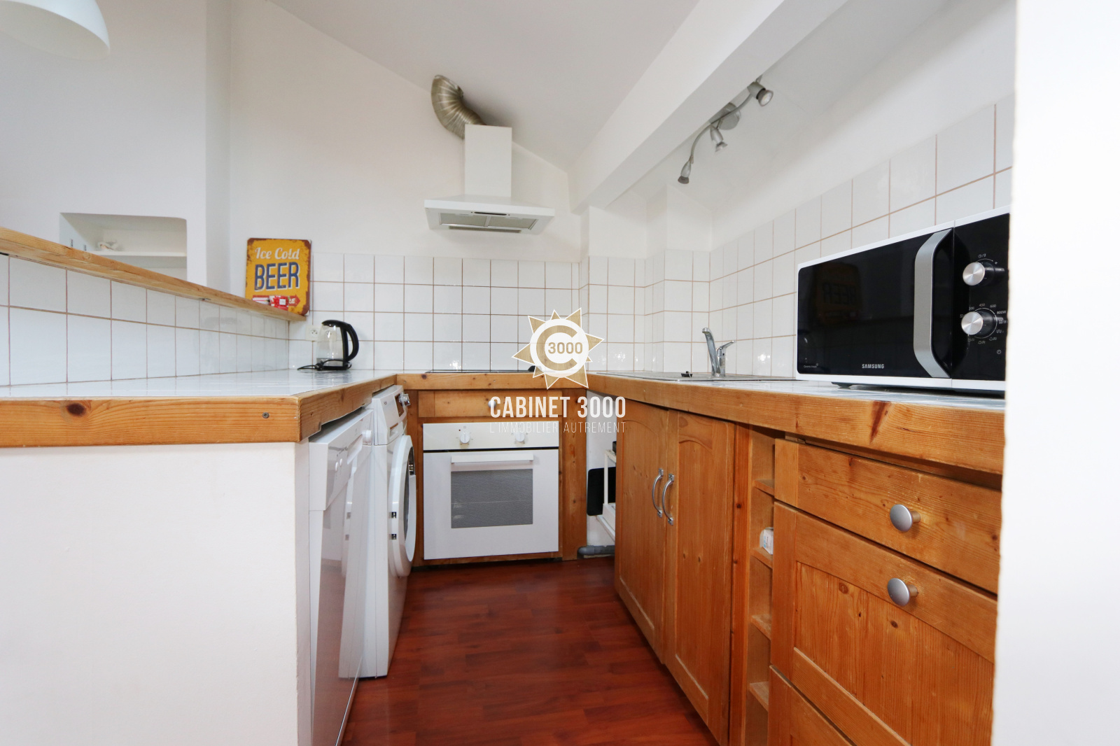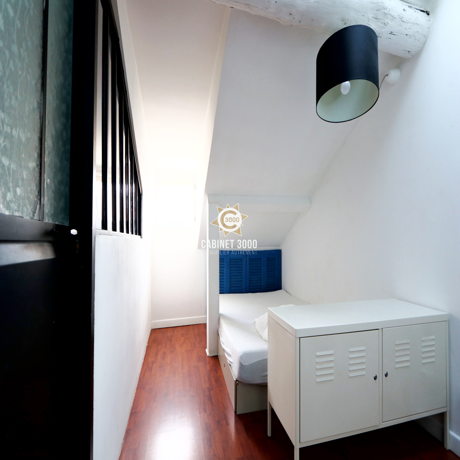 A Toulon, Le Mourillon, au 4ème et dernier étage, lumineux appartement de type T2 mansardé de 38 m² (53 m² de surface habitable), aux prestations raffinées, rénové avec goût, comprenant : cuisine/séjour, 1 chambre, bureau, salle d'eau avec WC, dressing, et jouissance d'une cour commune, à proximité des plages et du marché provençal. Appartement vendu meublé et équipé.