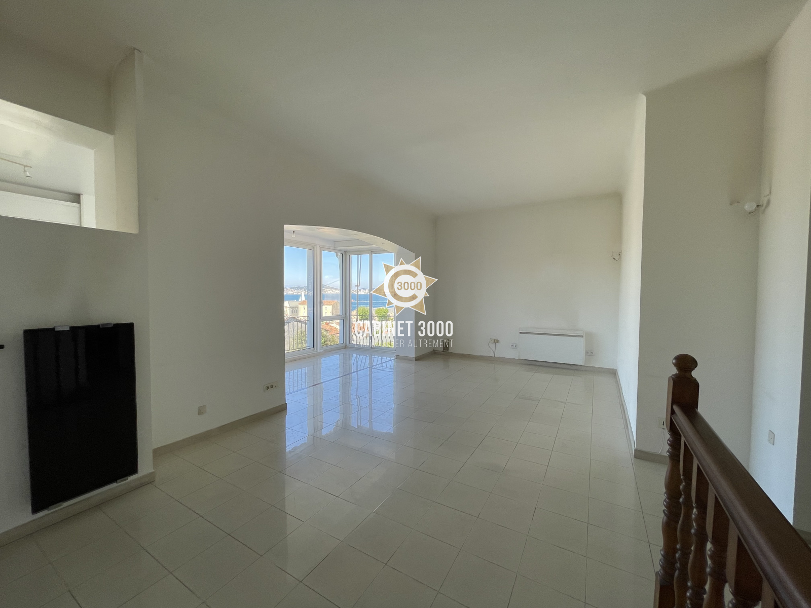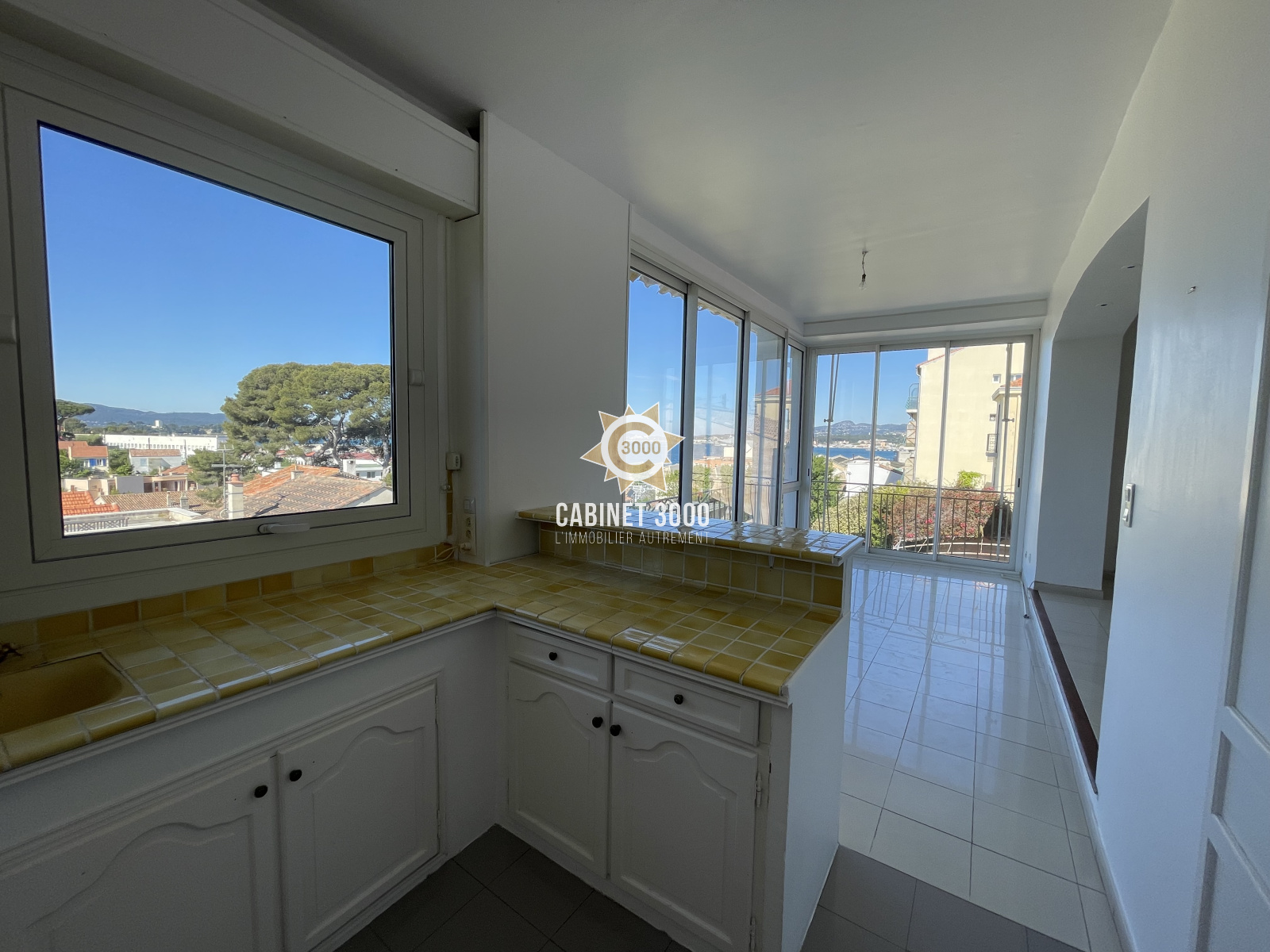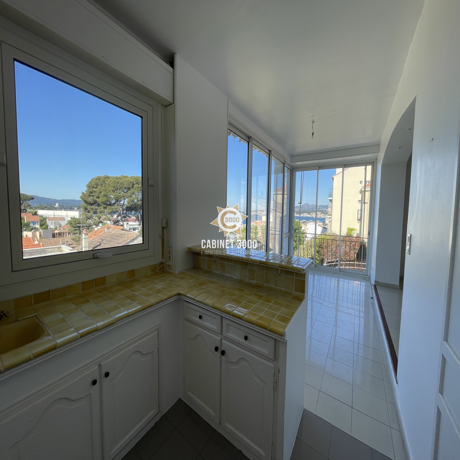 RARE A LA VENTE - A Toulon, La Mitre, au 1er et dernier étage, vue mer pour cette lumineuse maison-appartement de type T3 de 74 m², traversant, au calme et sans vis-à-vis, comprenant : au rez-de-chaussée entrée avec placards ; à l' étage cuisine ouverte sur salle à manger et séjour donnant sur véranda, 1 chambre avec placards, salle d'eau, WC et combles aménageables, à deux pas des écoles, des commerces et des plages. Pas de charges.