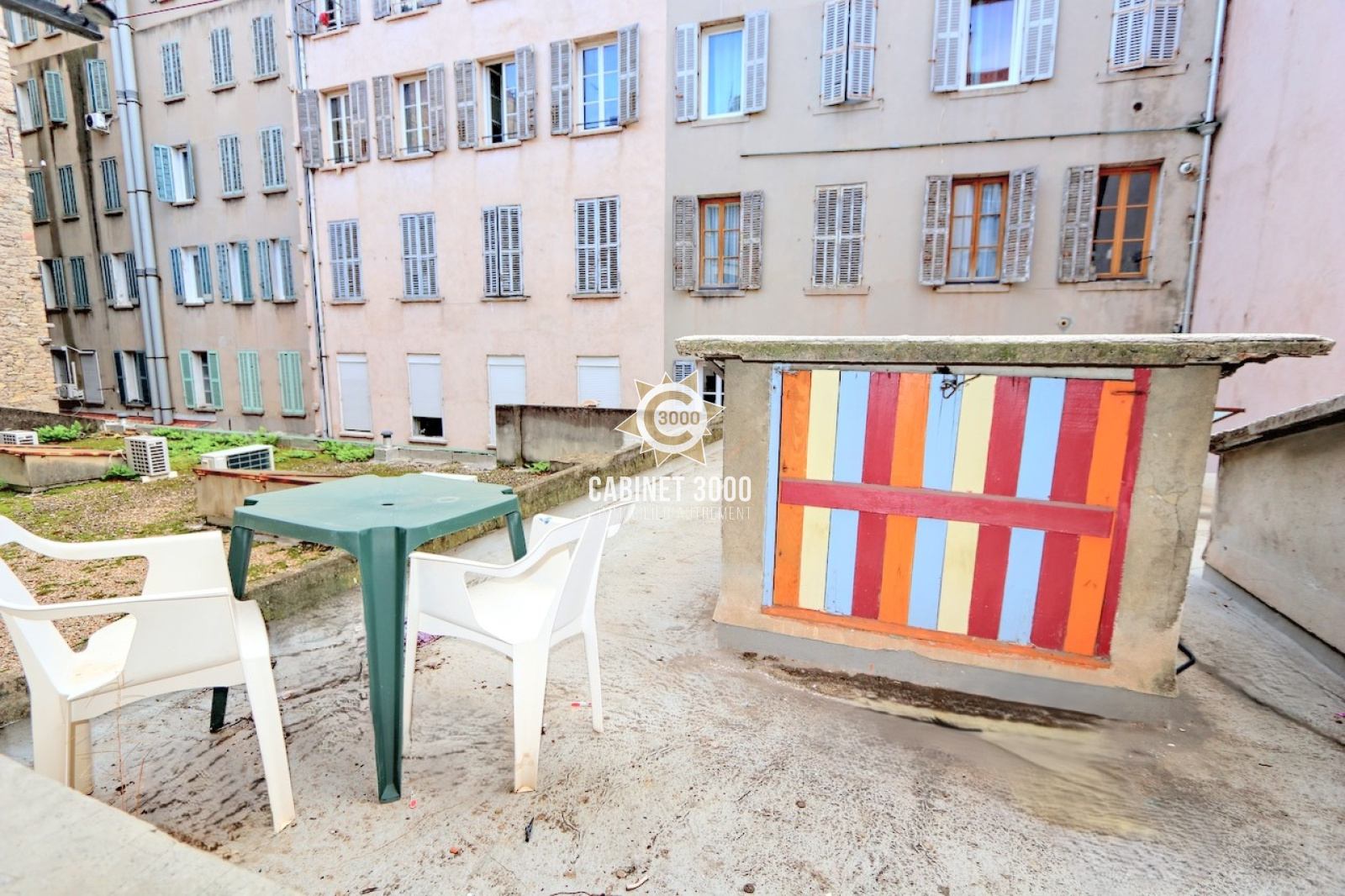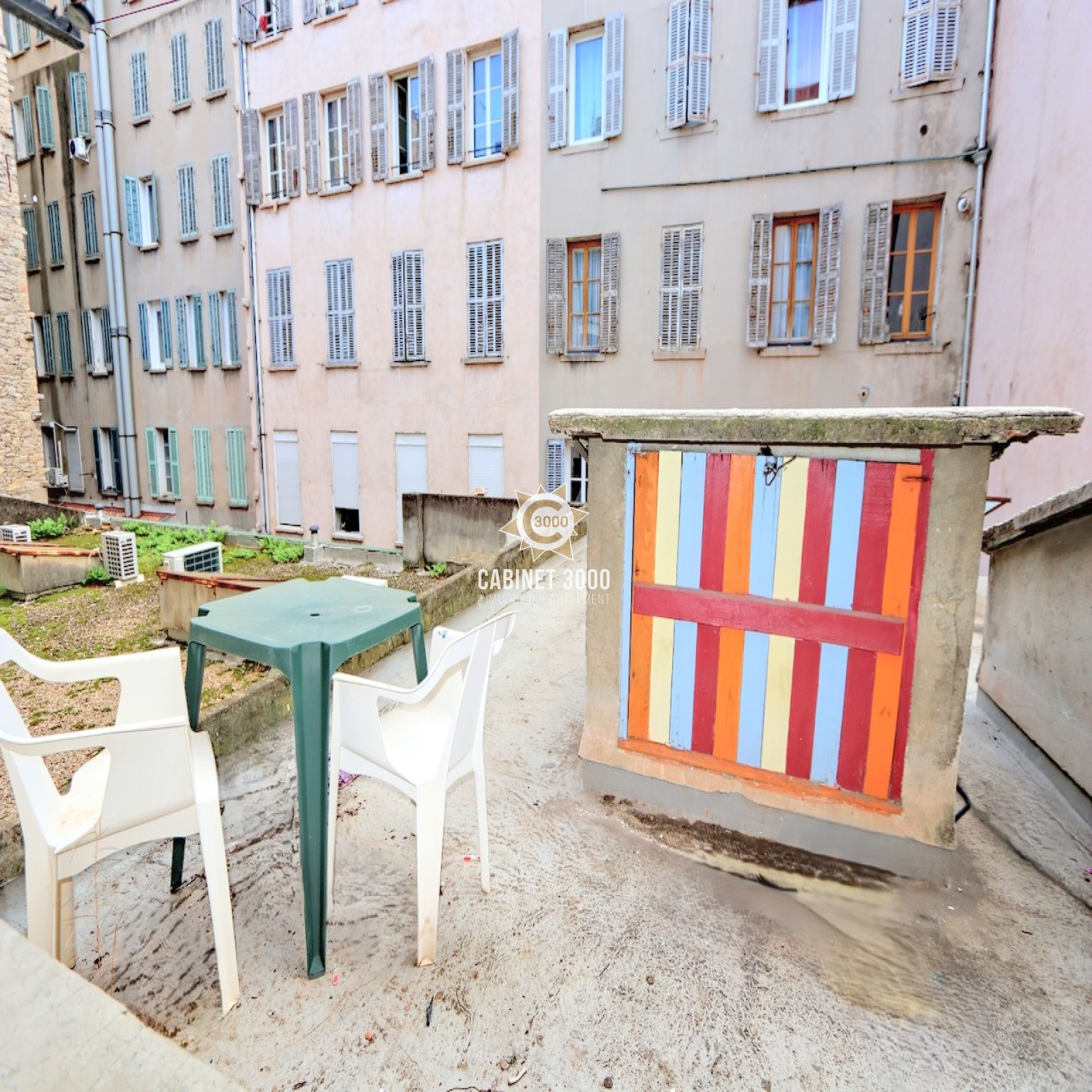 A Toulon, Haute Ville, appartement traversant de type T3 de 51 m² occupant la totalité du 1er étage,avec une jouissance d' une cour, comprenant : cuisine ouverte sur séjour de 24 m², 2 chambres avec placard/ penderie, salle d'eau avec WC et cellier sur le palier à proximité du marché provençal, de la gare, du théâtre et des cinémas.