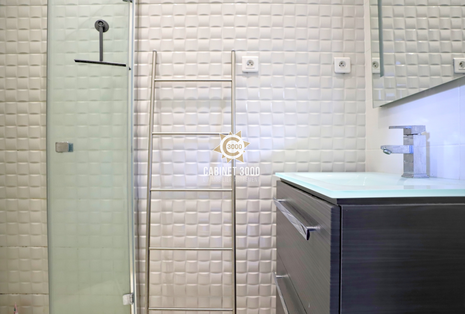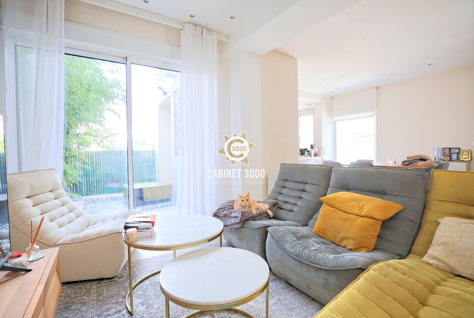 EXCLUSIVITE - A Toulon, au Mourillon-Lamalgue, dans maison de ville entièrement rénovée, lumineux bas de villa de type T4 de 85 m² aux prestations contemporaines de qualité, comprenant : cuisine/séjour de 42 m², 3 chambres, salle de bain, salle d'eau, WC, buanderie, terrasses, jardin à jouissance exclusive et particulière, et garage de 18 m², à proximité des écoles et commerces.