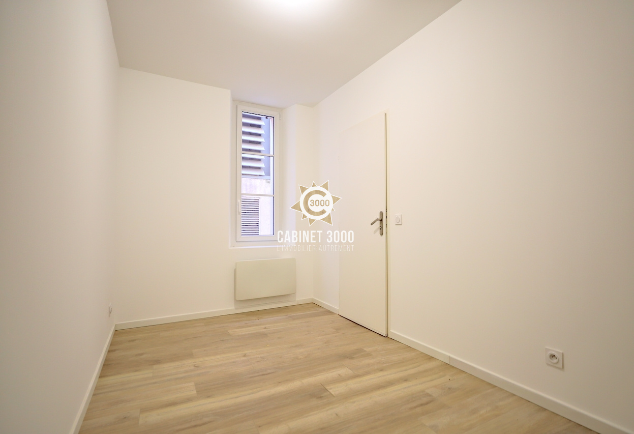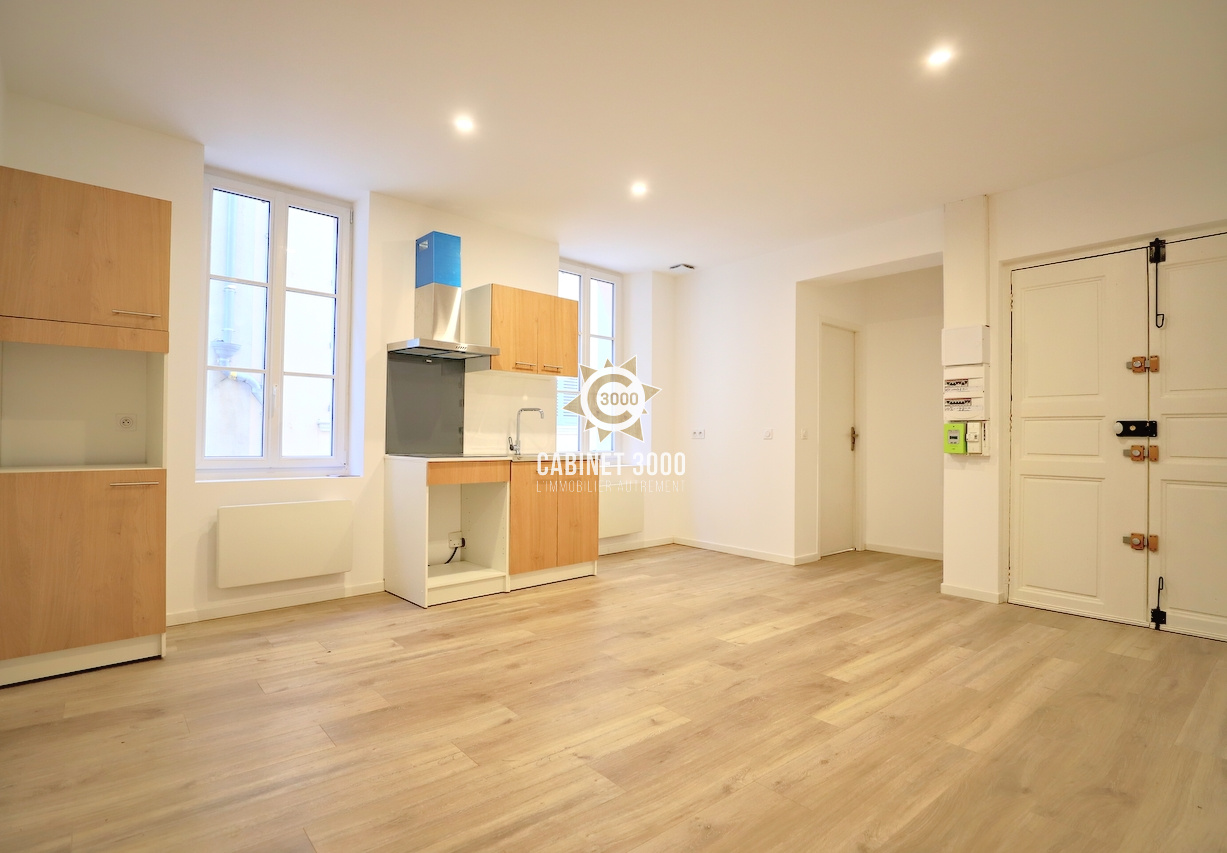 A Toulon, Haute Ville, au 1er étage sur 4, appartement de type T2 de 36 m², entièrement rénové, comprenant : cuisine ouverte sur séjour de 21 m², chambre et salle d'eau avec WC, à proximité de la Base Navale, des cinémas, des théâtres et du marché provençal.