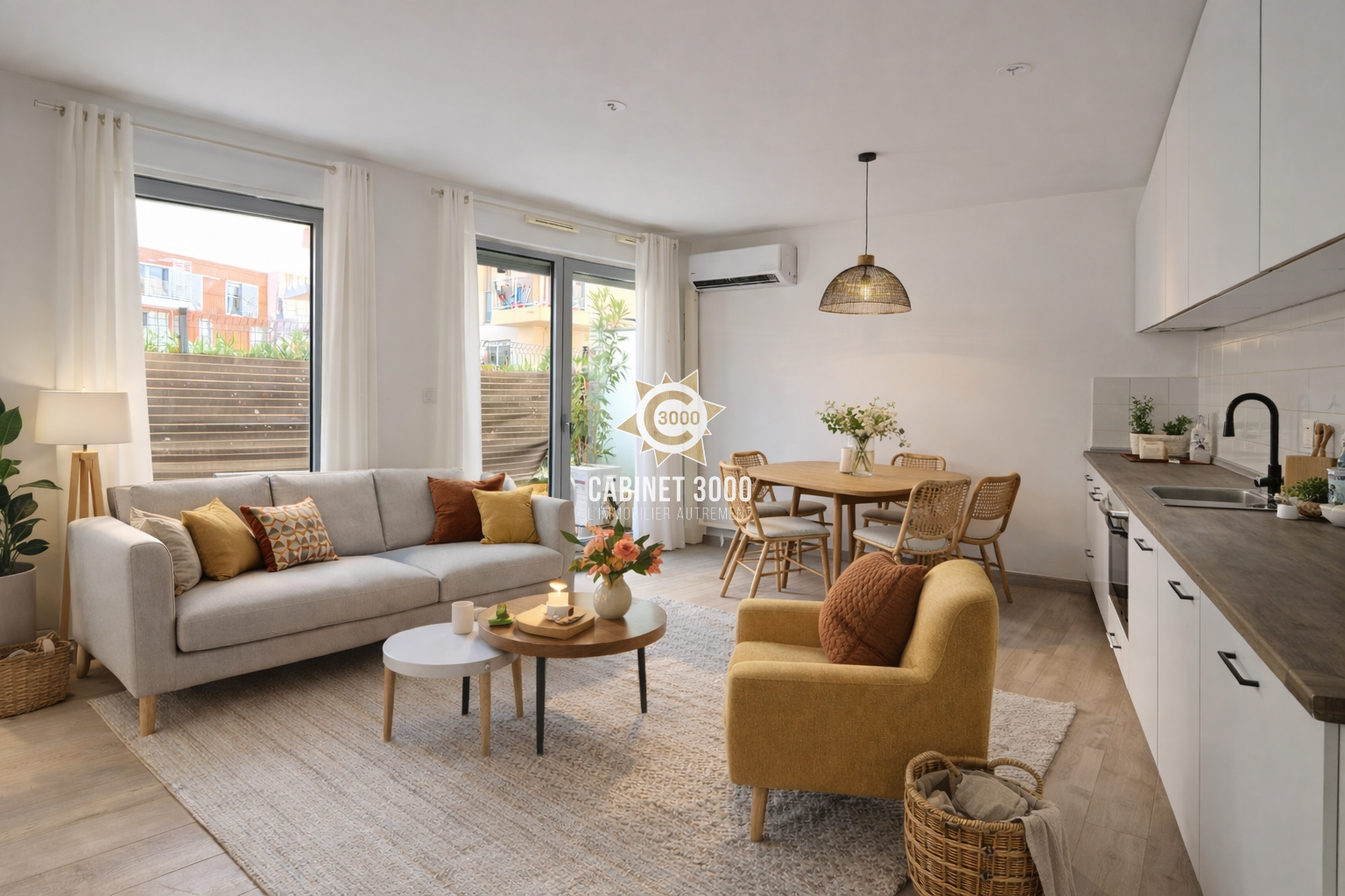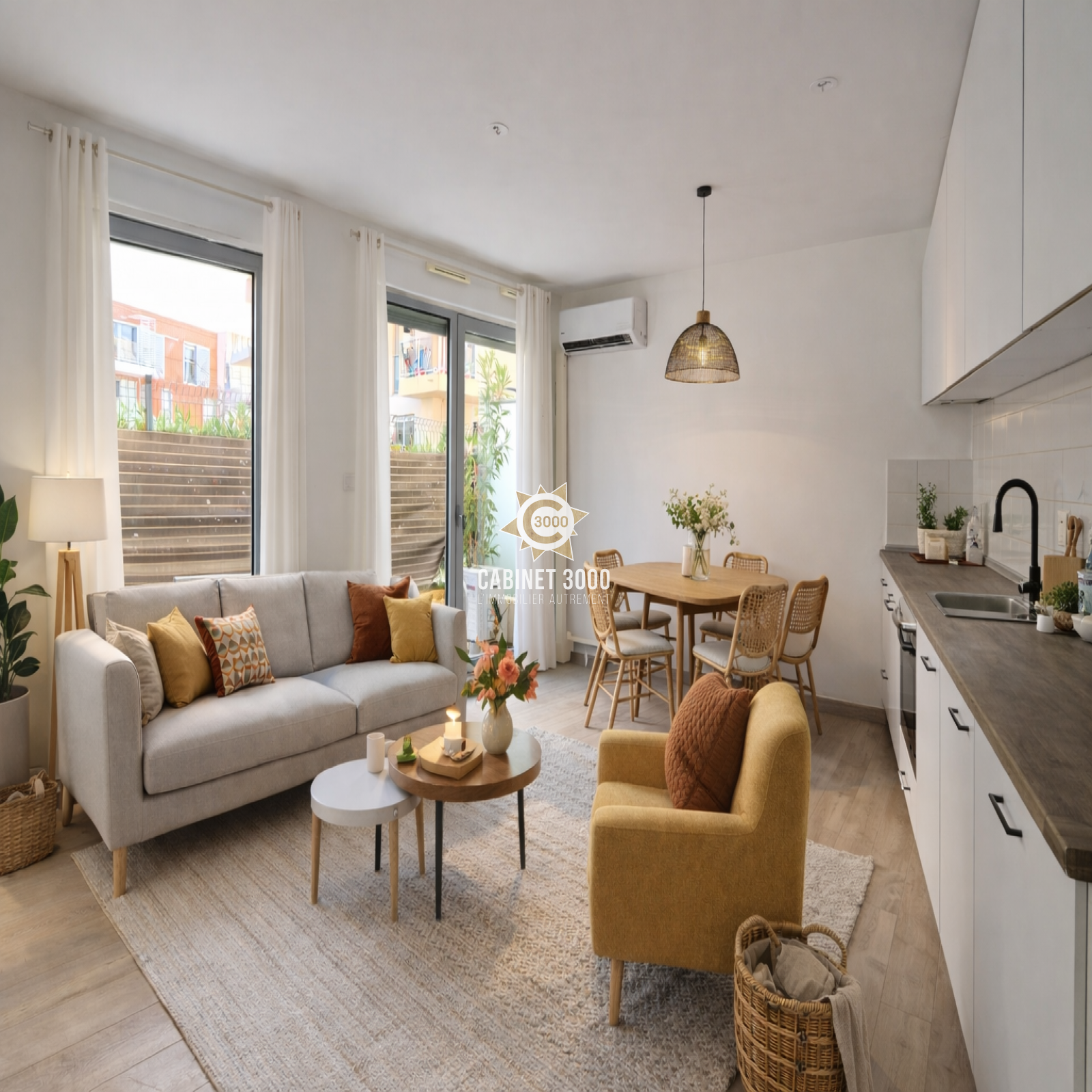 A Toulon, La Loubière, dans résidence sécurisée, au rez-de-chaussée sur 2 avec ascenseur aux normes PMR, lumineux appartement de type 3 de 62 m², comprenant : cuisine ouverte sur séjour donnant sur terrasse Sud-Est, 2 chambres donnant également sur une autre terrasse, salle d'eau, WC et parking en sous-sol, dans copropriété fermée à proximité des écoles et des commerces.
