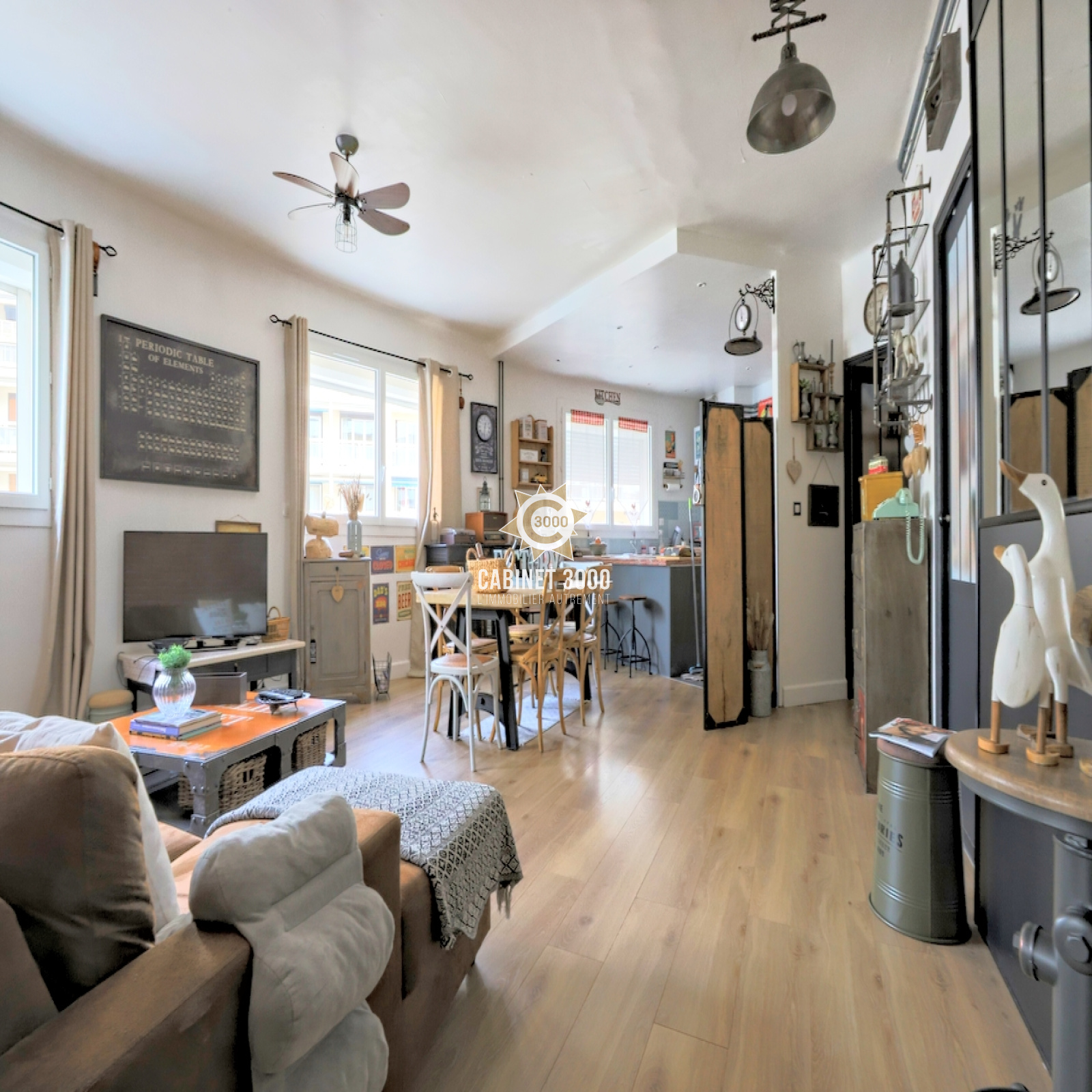 A Toulon, Aguillon, au 4ème étage avec ascenseur, lumineux appartement de type T3 de 82 m², entièrement rénové avec des prestations contemporaines, comprenant : cuisine ouverte, séjour de 29 m², 2 chambres, salle d'eau, WC, buanderie et cave, à proximité du Mourillon, des écoles et des commerces.