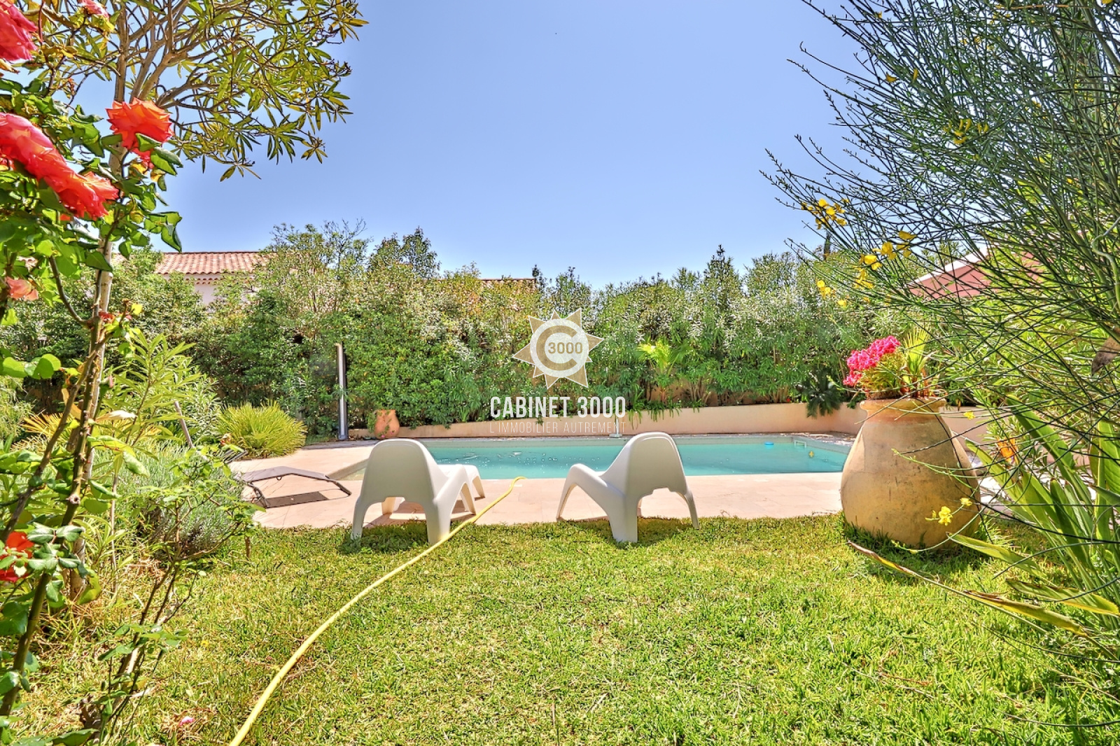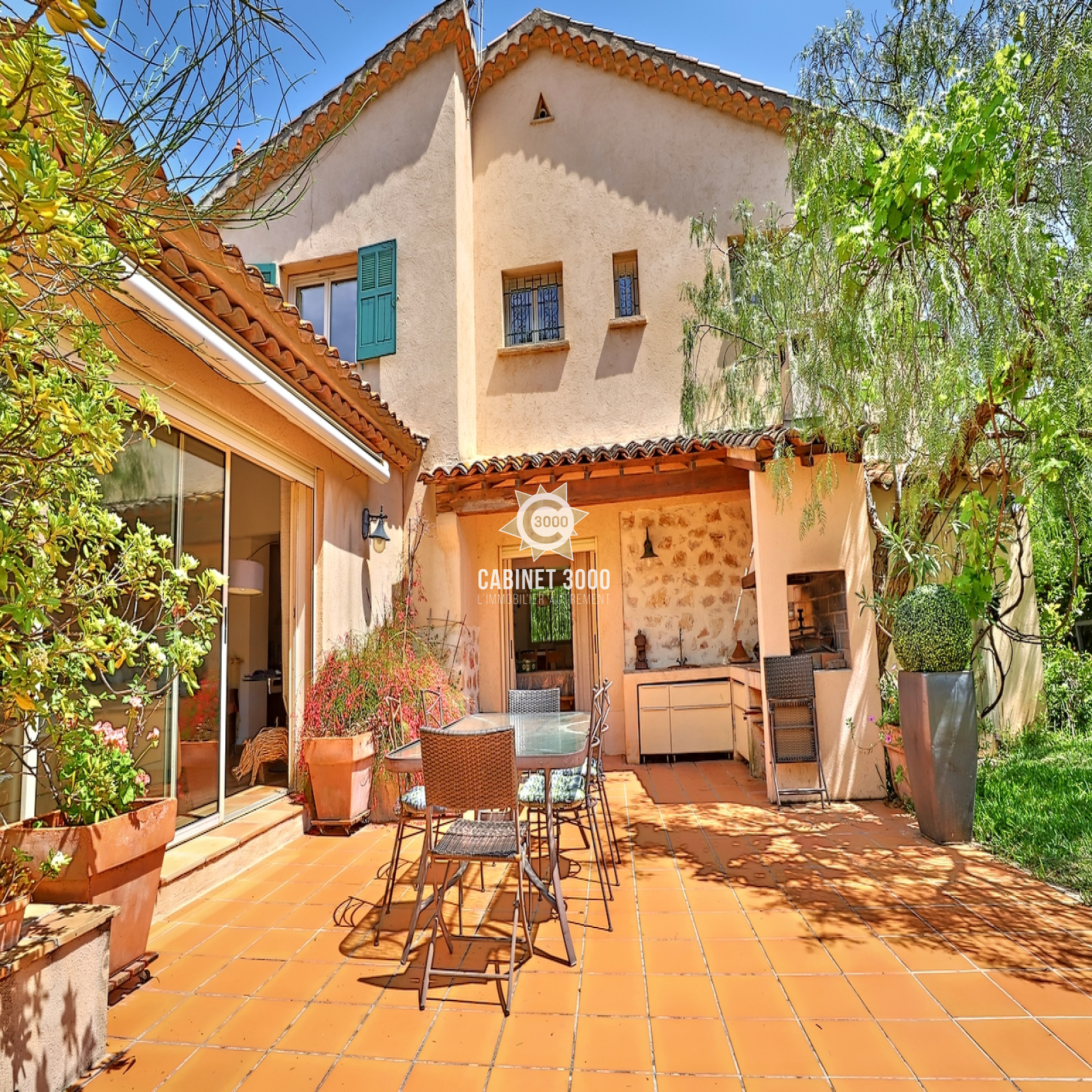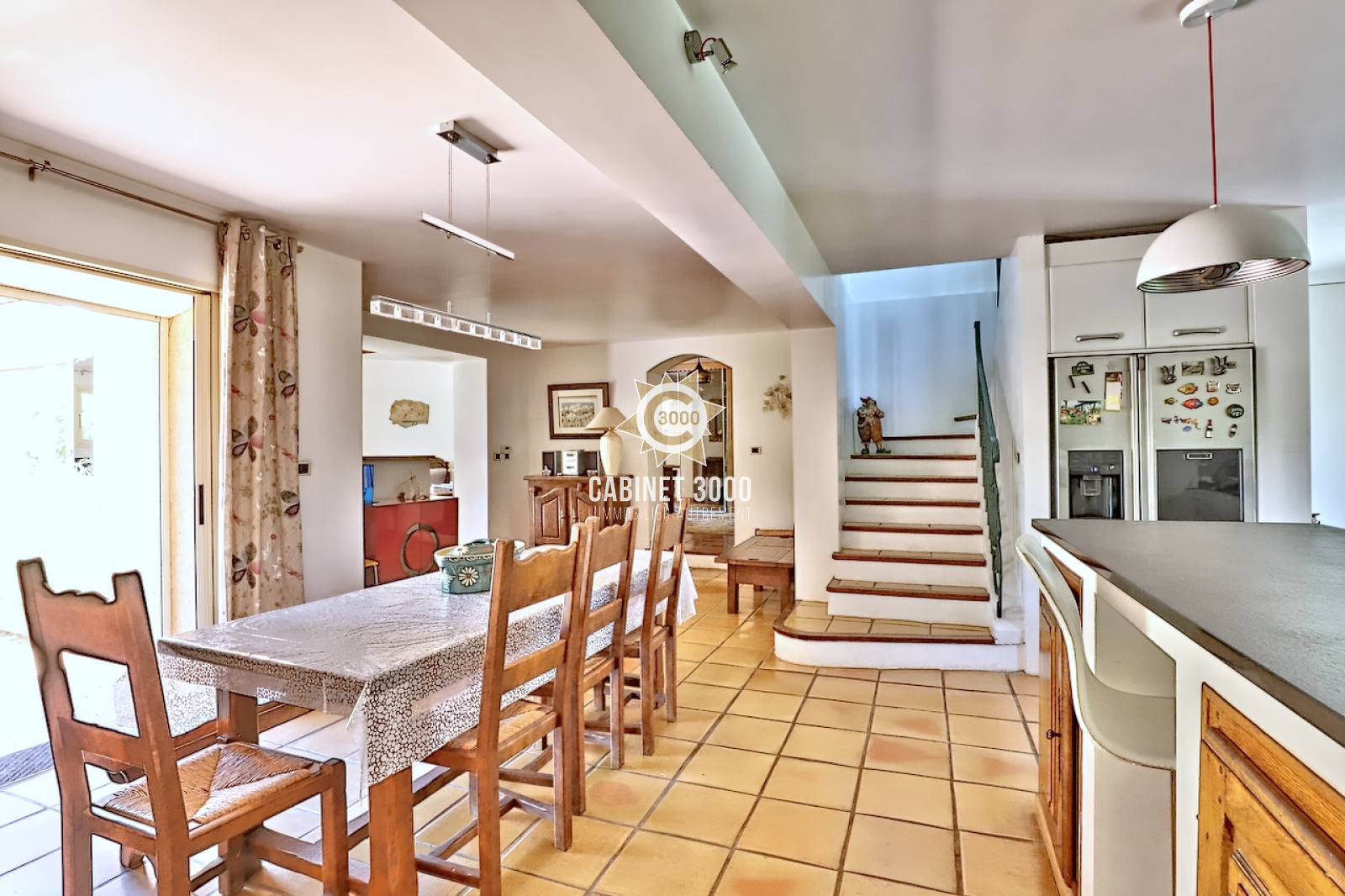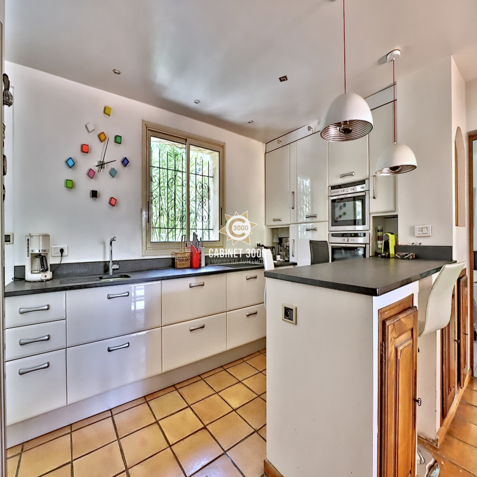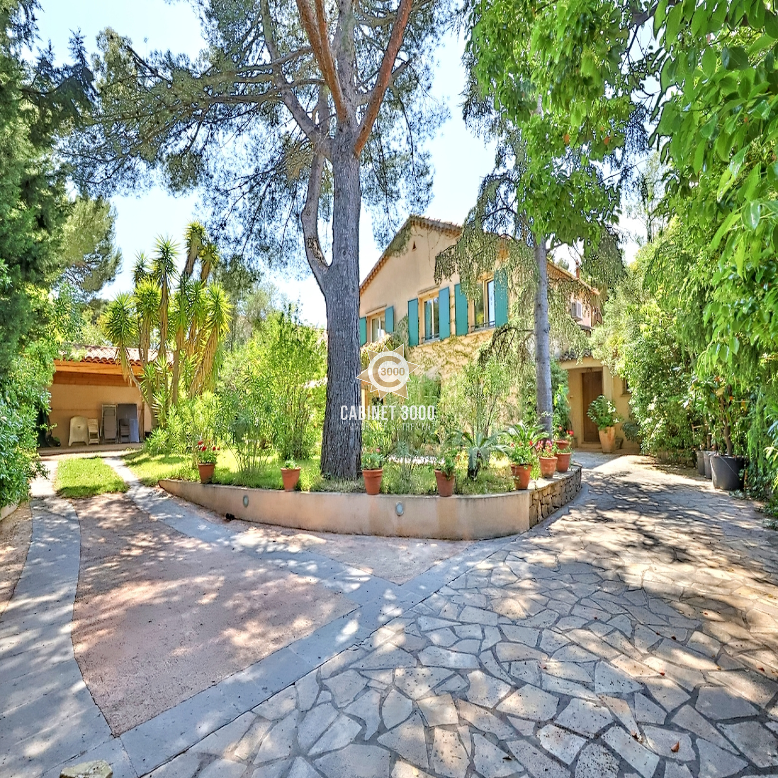 EXLUSIVITE - A Toulon, La Serinette, dans un jardin arboré d'essences méridionales, au calme, beaux volumes pour cette lumineuse maison de type T6 de 200 m², comprenant : hall d'entrée avec rangements, cuisine équipée et salle à manger donnant sur patio, salon/séjour de 45 m², 4 chambres dont une suite parentale de plain-pied, salle de bain, 2 salles d'eau, 3 WC, buanderie et studio indépendant, sur une parcelle de 1035 m² avec forage, abris voitures, parkings et piscine de 8x5 m avec sa plage en travertin, à proximité des écoles et des commerces.