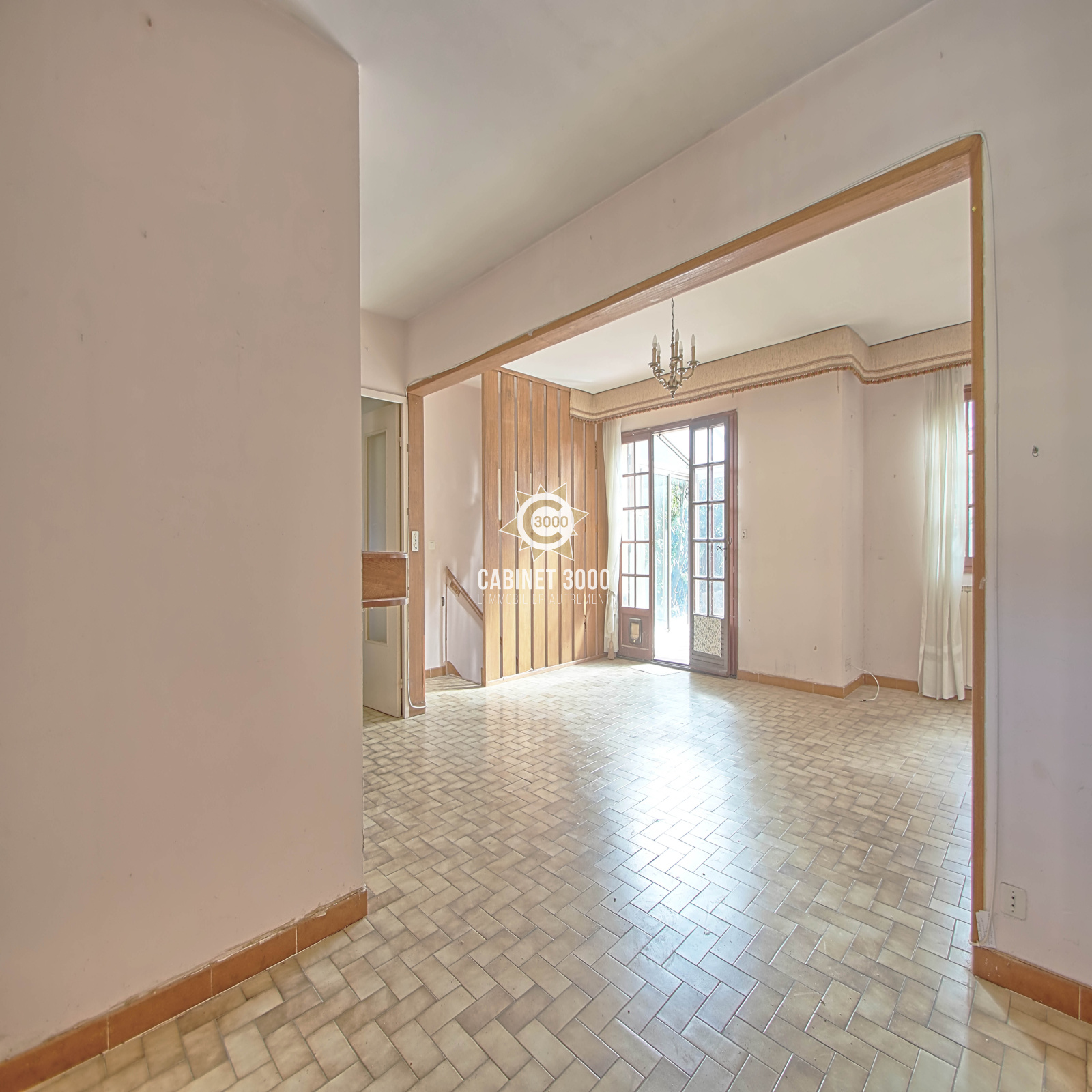 A RENOVER - A Toulon, Les Ameniers, dans lotissement au calme, lumineuse maison, mitoyenne d'un côté, de type T5 de 128 m², traversante Nord-Sud, comprenant : cuisine, salon/séjour de 30 m² avec cheminée et donnant sur véranda, 3 chambres, salle de bain, salle d'eau, 2 WC et cave sur une parcelle de 358 m² avec garage, à proximité des commerces.