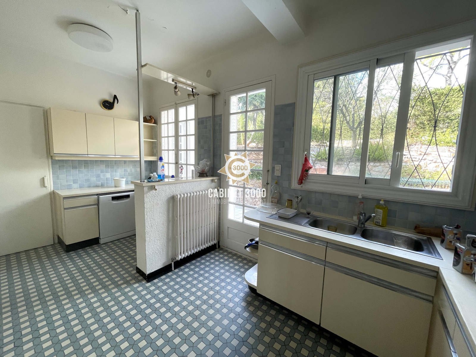 A Toulon, Bas Faron, au calme et sans vis-à-vis, beaux volumes pour cette lumineuse maison familiale de type T7 de 175 m², actuellement divisée en 2 appartements avec escalier intérieur, comprenant : cuisine, salon/séjour de 50 m² donnant sur grande terrasse de 100 m², 5 chambres, 2 salles d'eau, 3 WC, dressing et garage avec atelier, sur une parcelle de 1180 m² avec jardin paysagé et parkings. Terrain piscinable.
