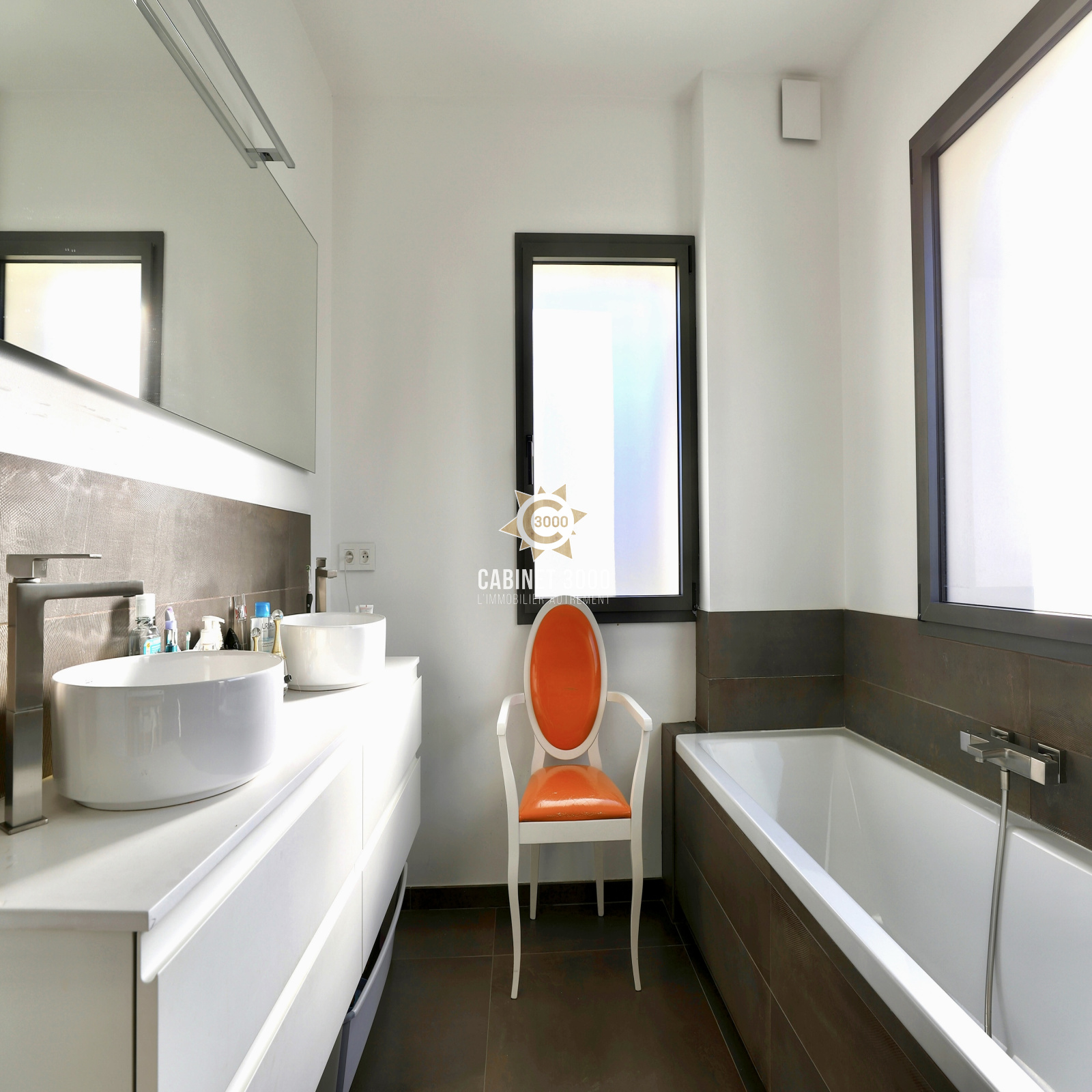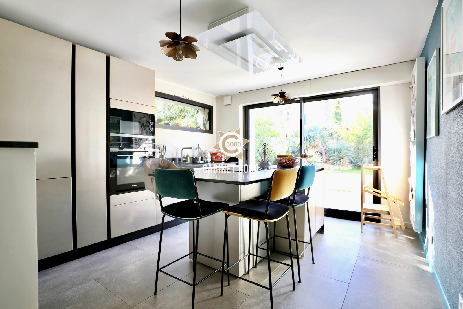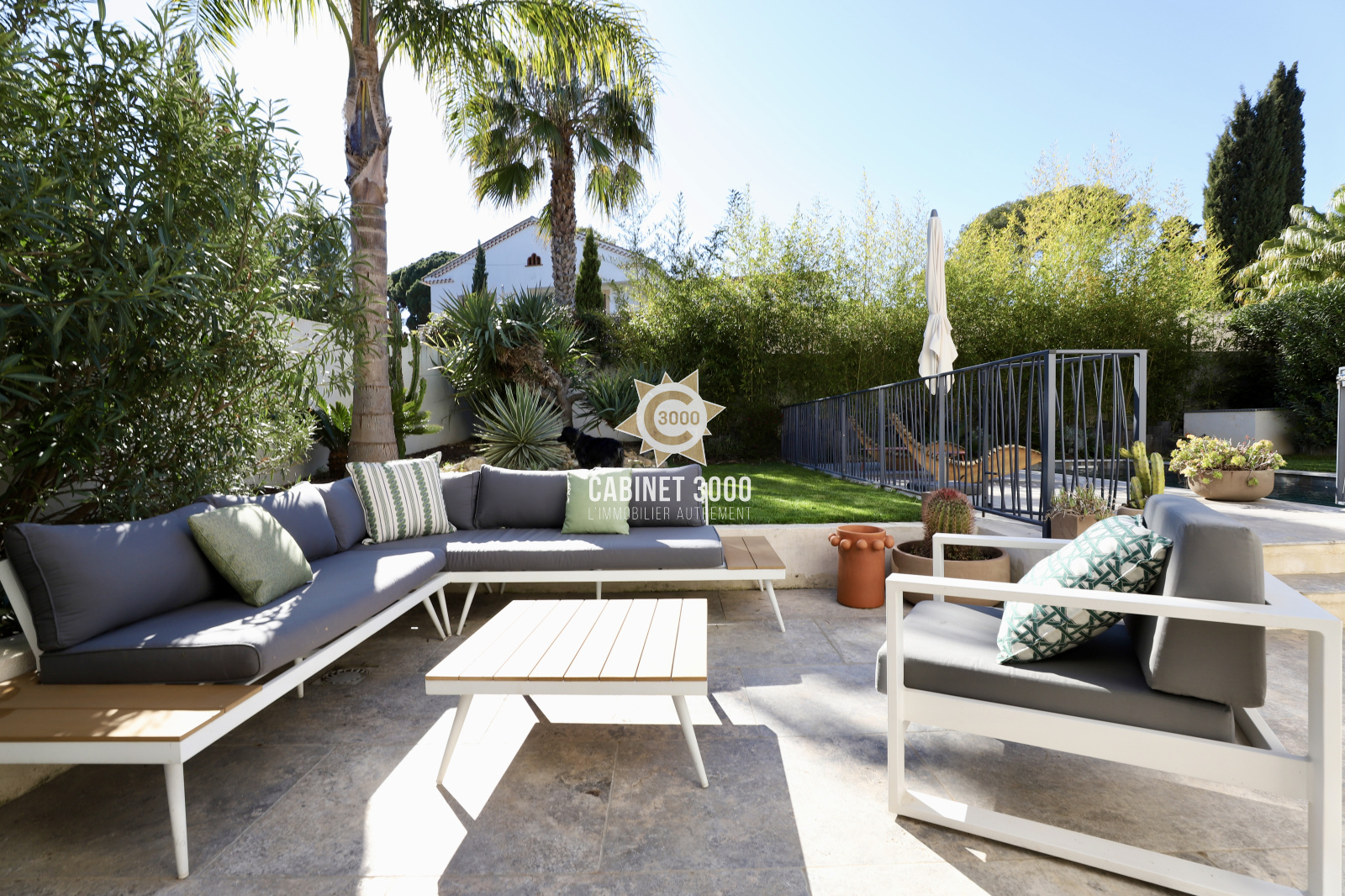 EXCLUSIVITE - A Toulon, Cap Brun, au calme dans quartier résidentiel, lumineuse maison de type T5 de 133 m², rénovée avec des prestations et équipements de qualité, comprenant : cuisine semi-ouverte avec coin repas donnant sur terrasse, séjour, 3 chambres dont une suite parentale avec salle de bain, dressing et balcon, salle d'eau, 2 WC et buanderie sur une parcelle de 478 m² avec piscine de 7 x 3,5 m et sa terrasse de 50 m² et parkings pour 2 voitures sur le terrain, à proximité des écoles et des commerces.