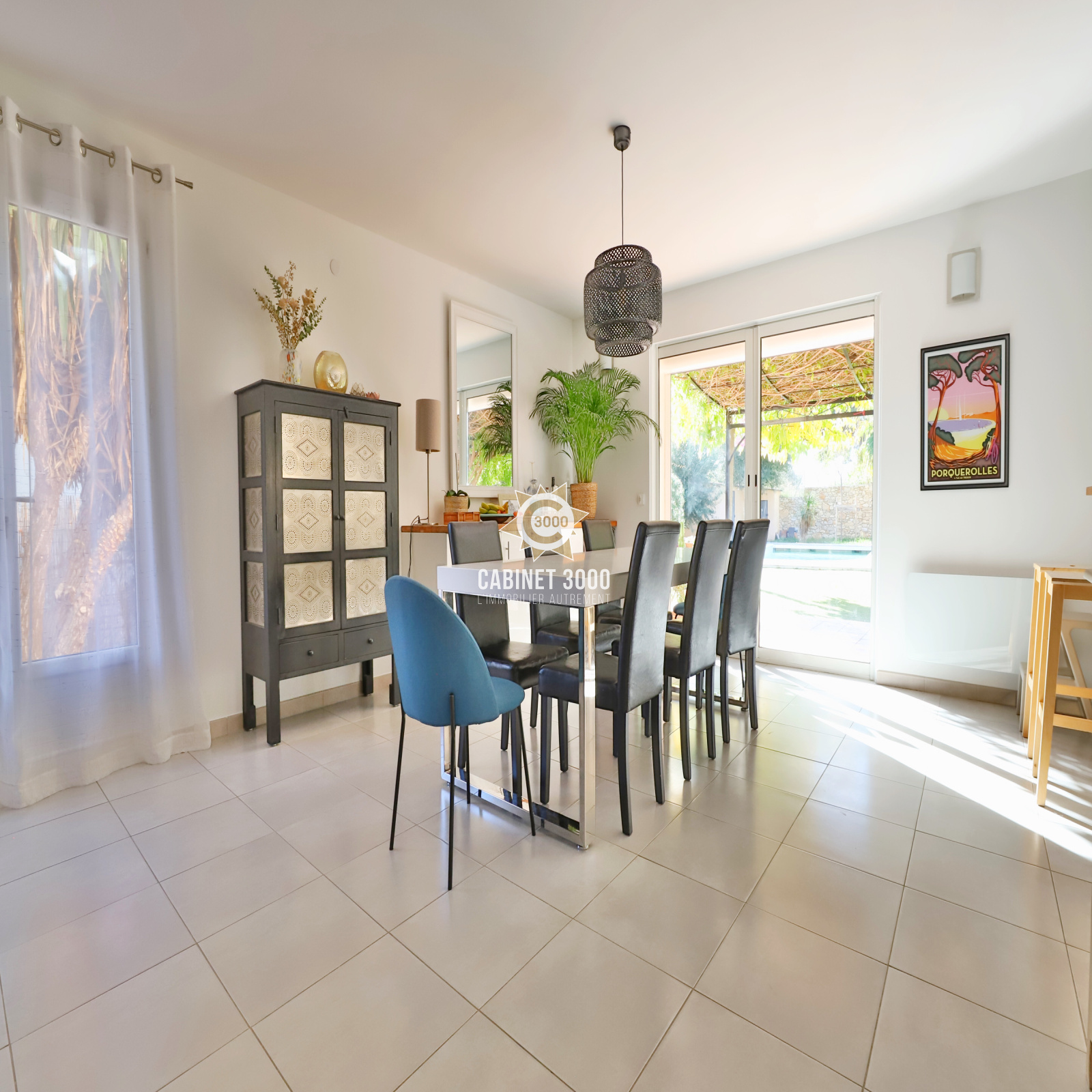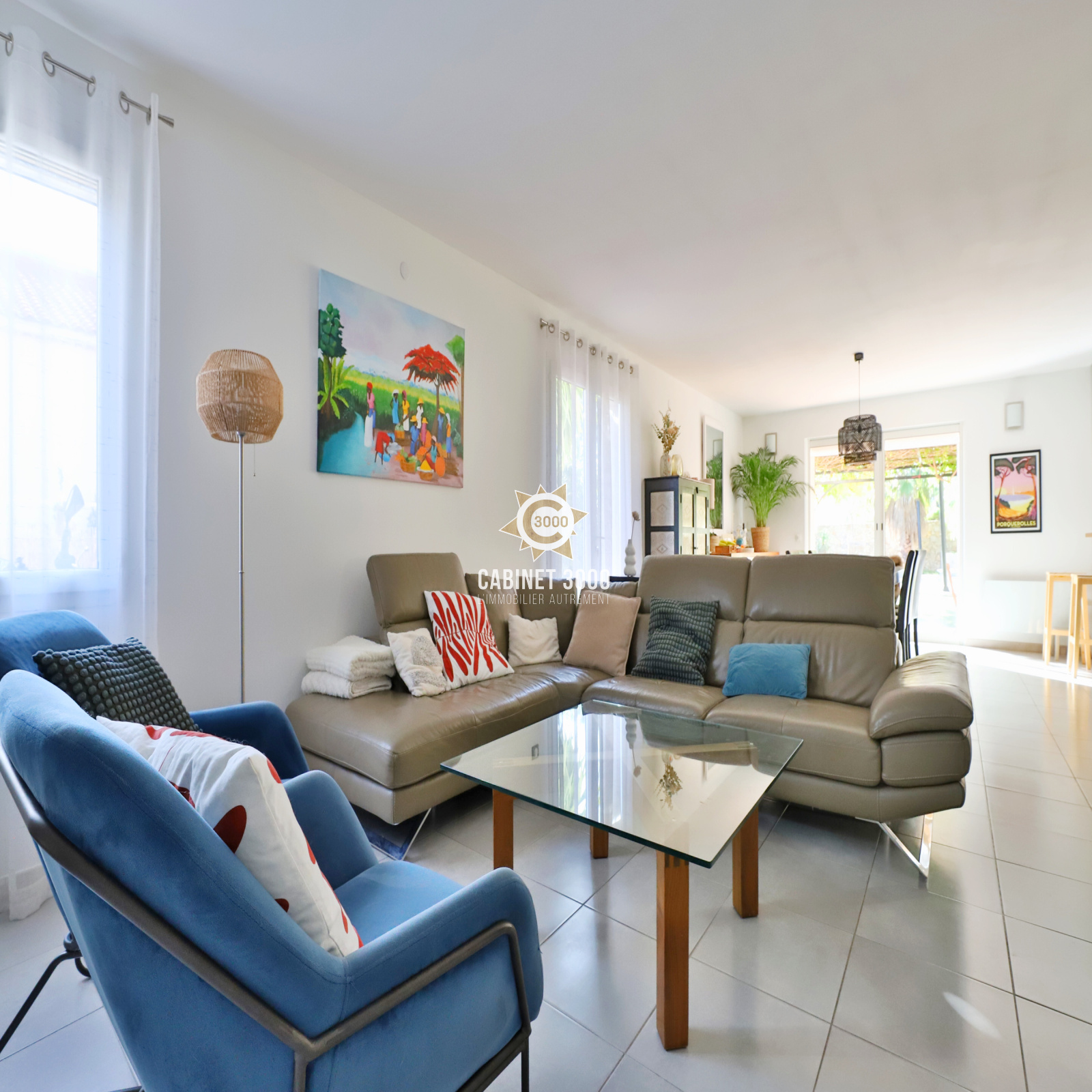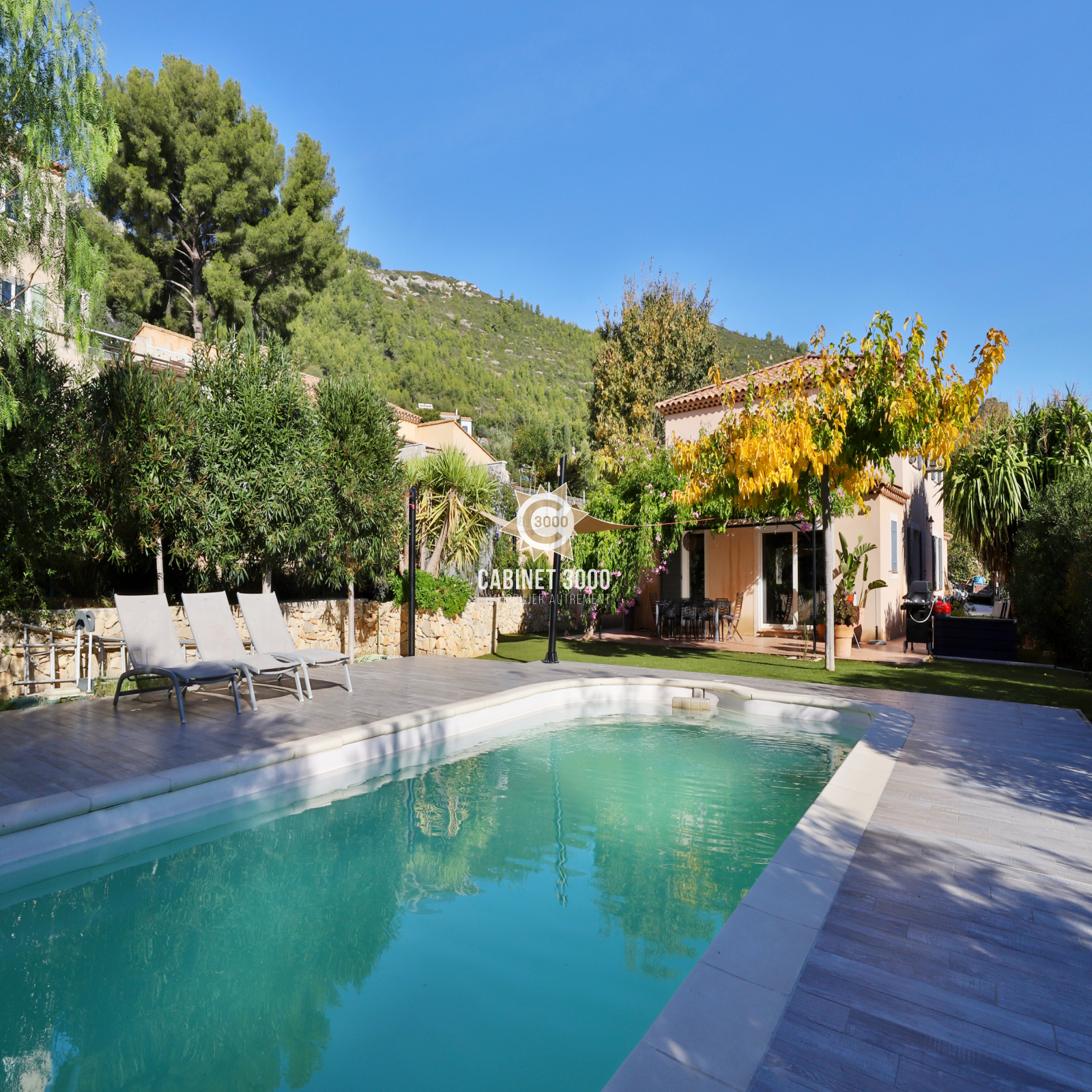 A Toulon, 4 chemins des Routes, au calme, aperçu mer pour cette lumineuse maison de type T7 de 160 m², comprenant : cuisine semi-ouverte, séjour de 60 m² donnant sur terrasse Sud, 5 chambres dont 2 de plain-pied dont 1 suite parentale, 2 dressings, salle de bain, 2 salles d'eau et 2 WC, sur une parcelle de 817 m² avec piscine et parkings, à proximité des écoles et des commerces.