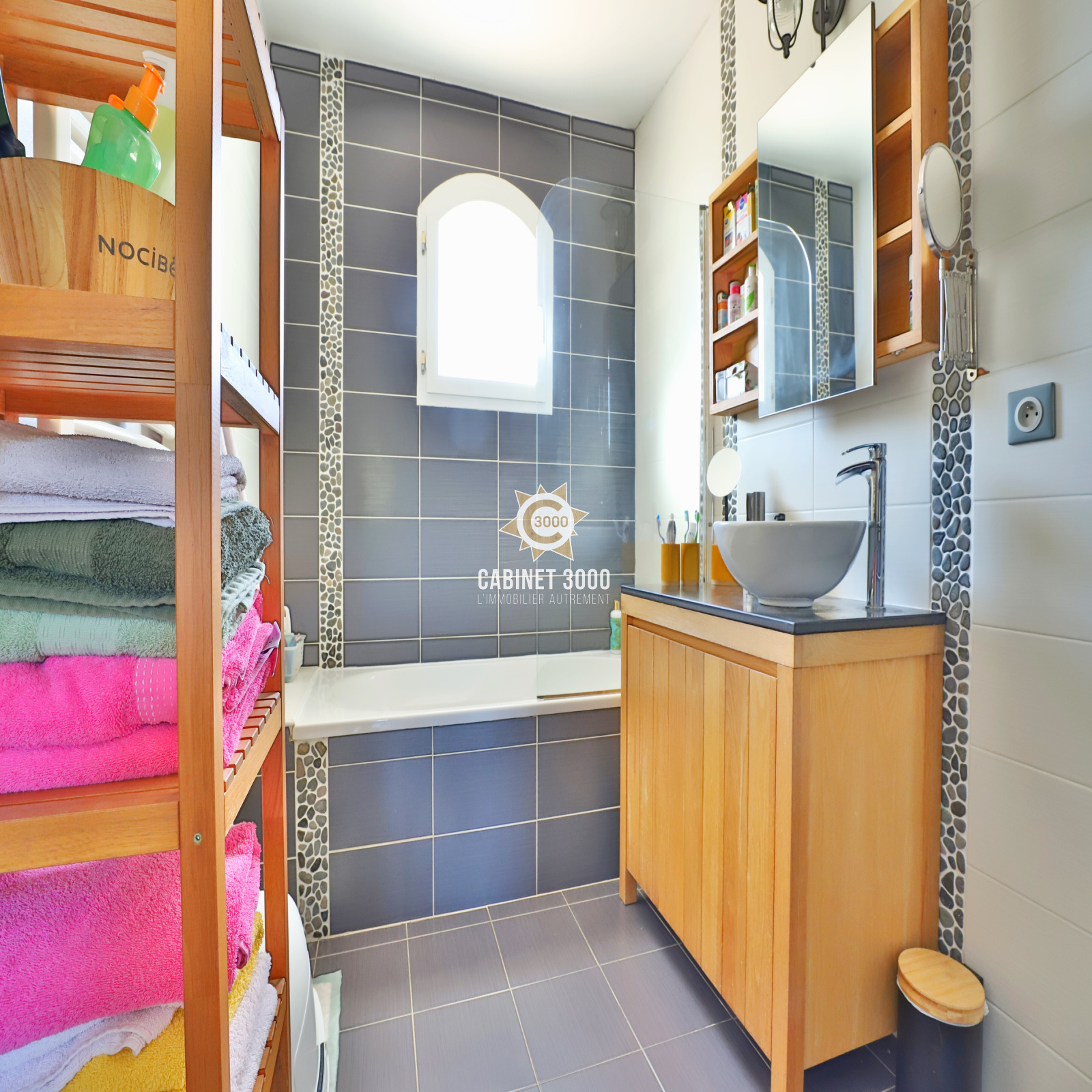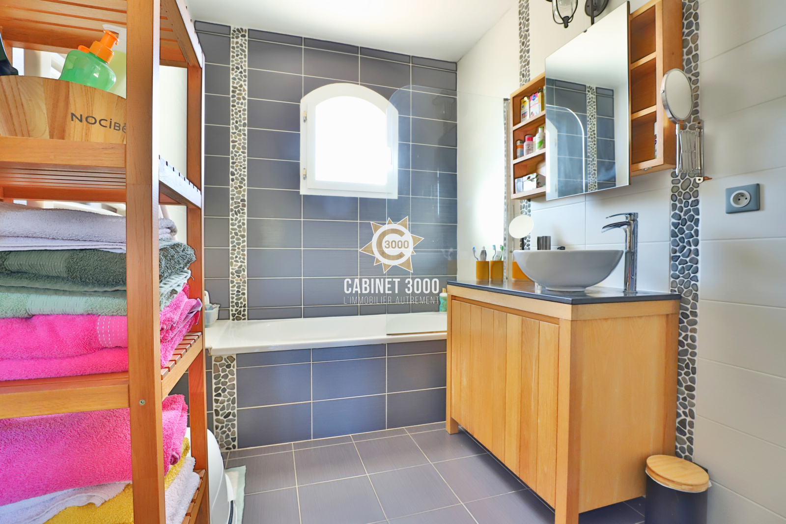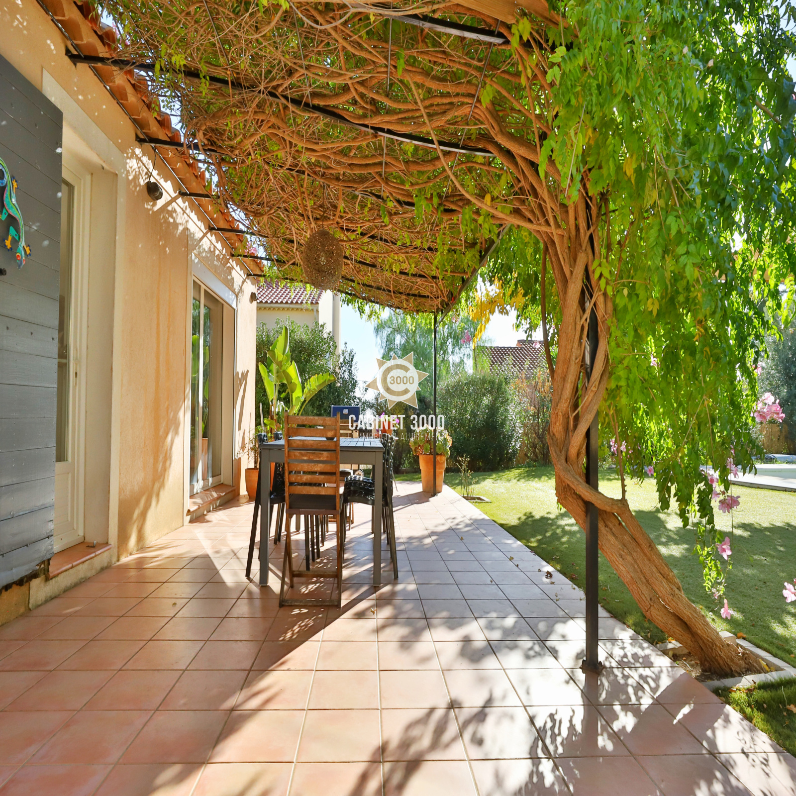A Toulon, 4 chemins des Routes, au calme, aperçu mer pour cette lumineuse maison de type T7 de 160 m², comprenant : cuisine semi-ouverte, séjour de 60 m² donnant sur terrasse Sud, 5 chambres dont 2 de plain-pied dont 1 suite parentale, 2 dressings, salle de bain, 2 salles d'eau et 2 WC, sur une parcelle de 817 m² avec piscine et parkings, à proximité des écoles et des commerces.