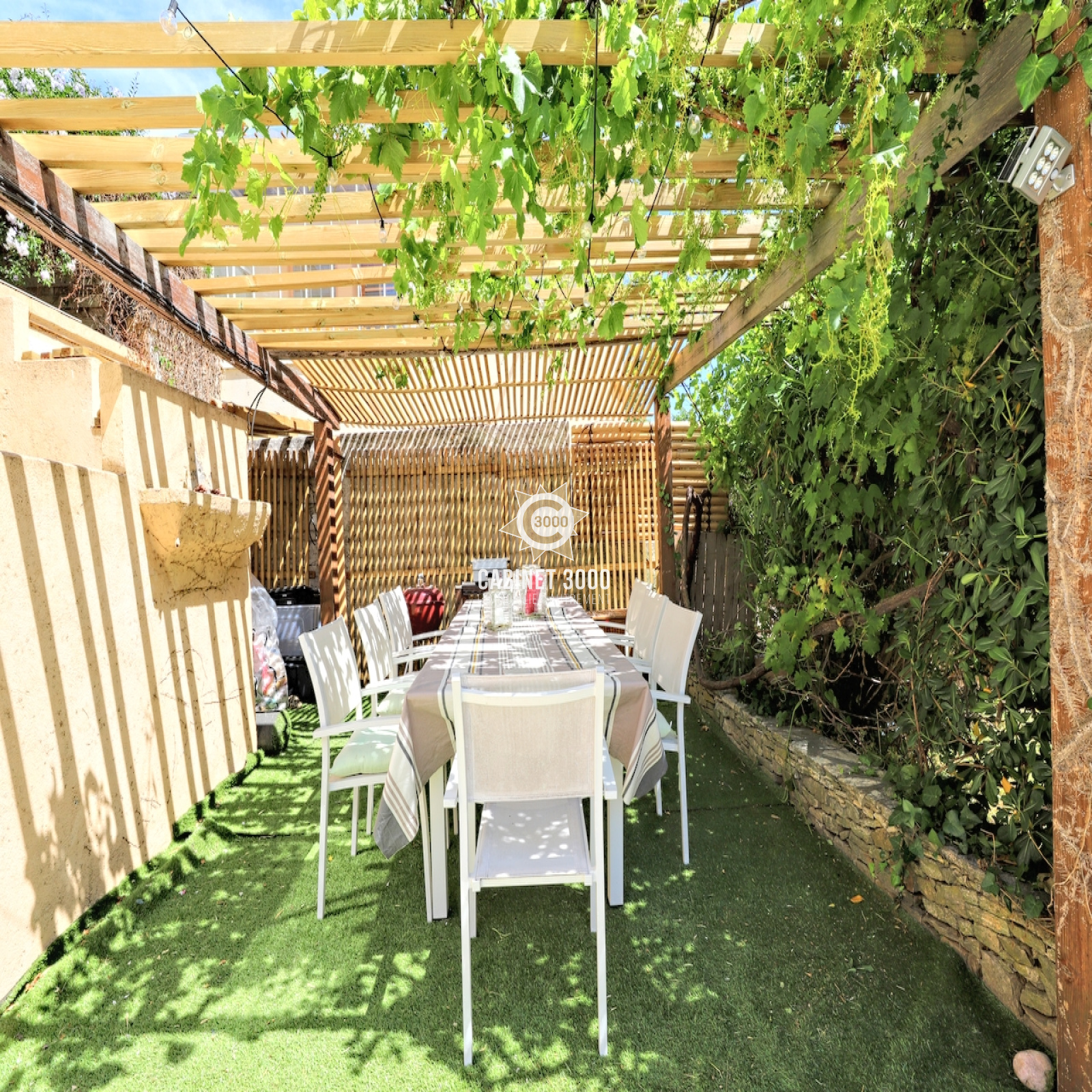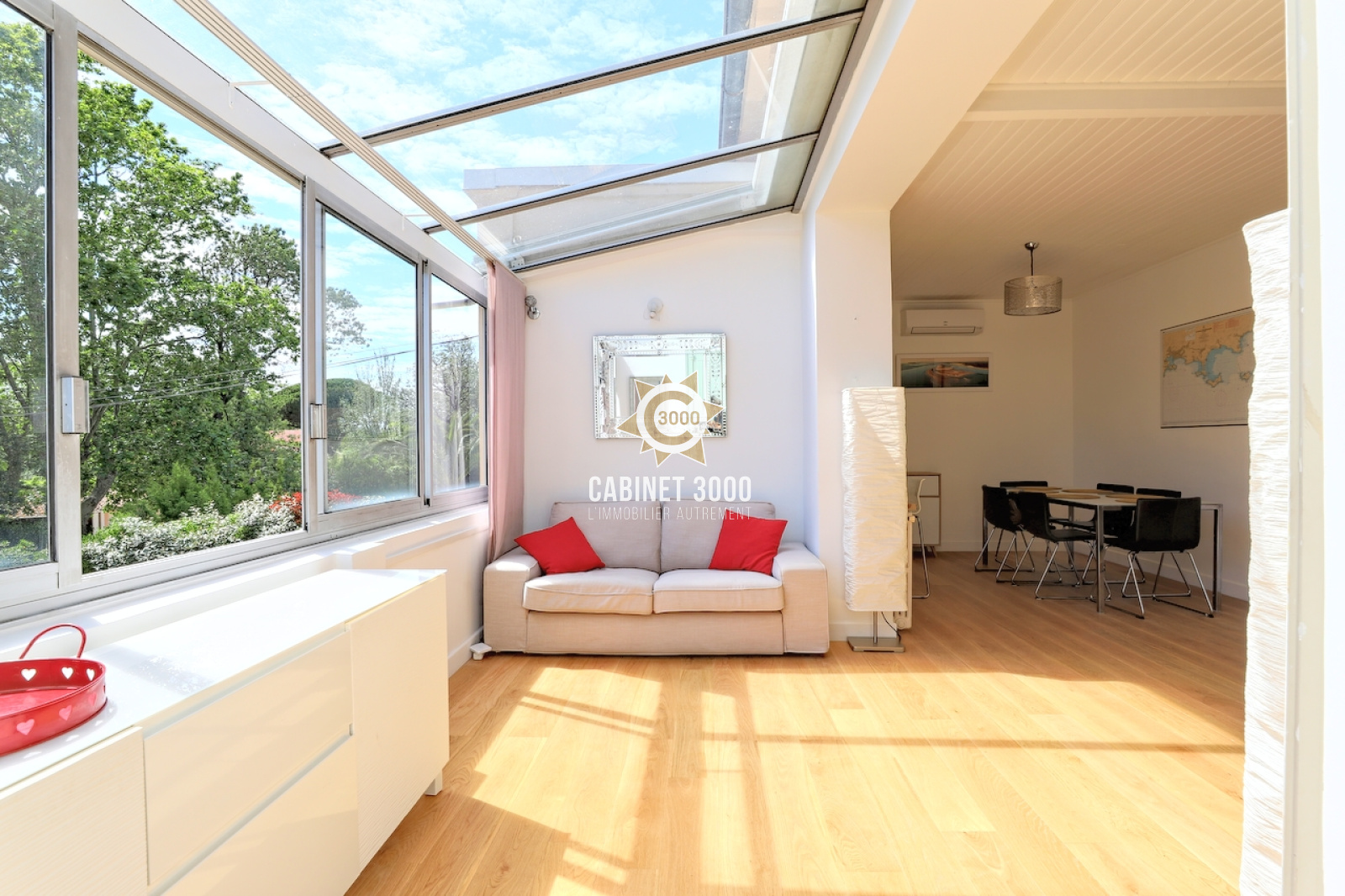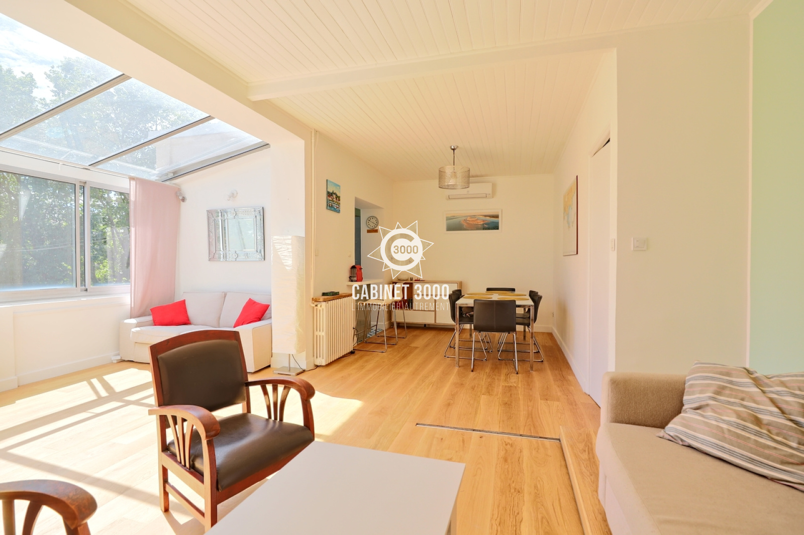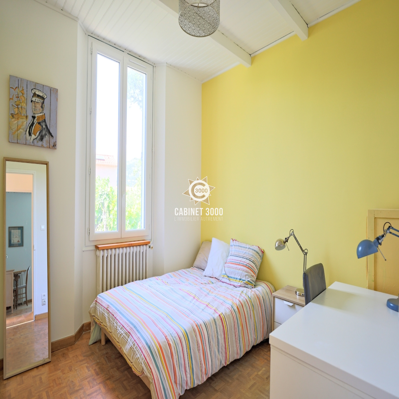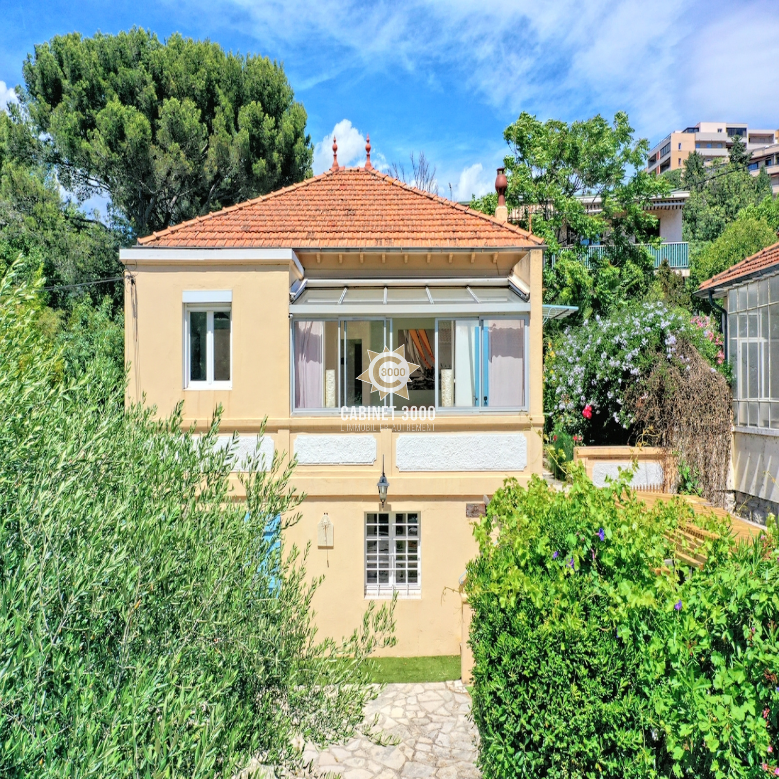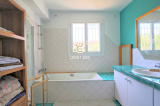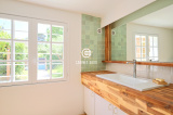 A Toulon, La Serinette, au calme, lumineuse maison 1930 de type T5 de 134 m², comprenant : cuisine semi-ouverte, séjour de 35 m², 4 chambres, 2 salles de bains, 2 WC, buanderie, grande terrasse et pergola, sur une parcelle piscinable et arborée de 427 m² plein Sud, à proximité des écoles et des commerces.