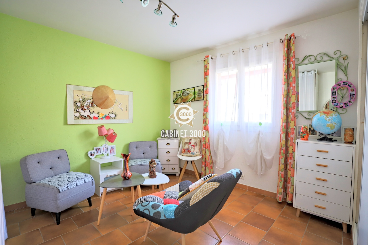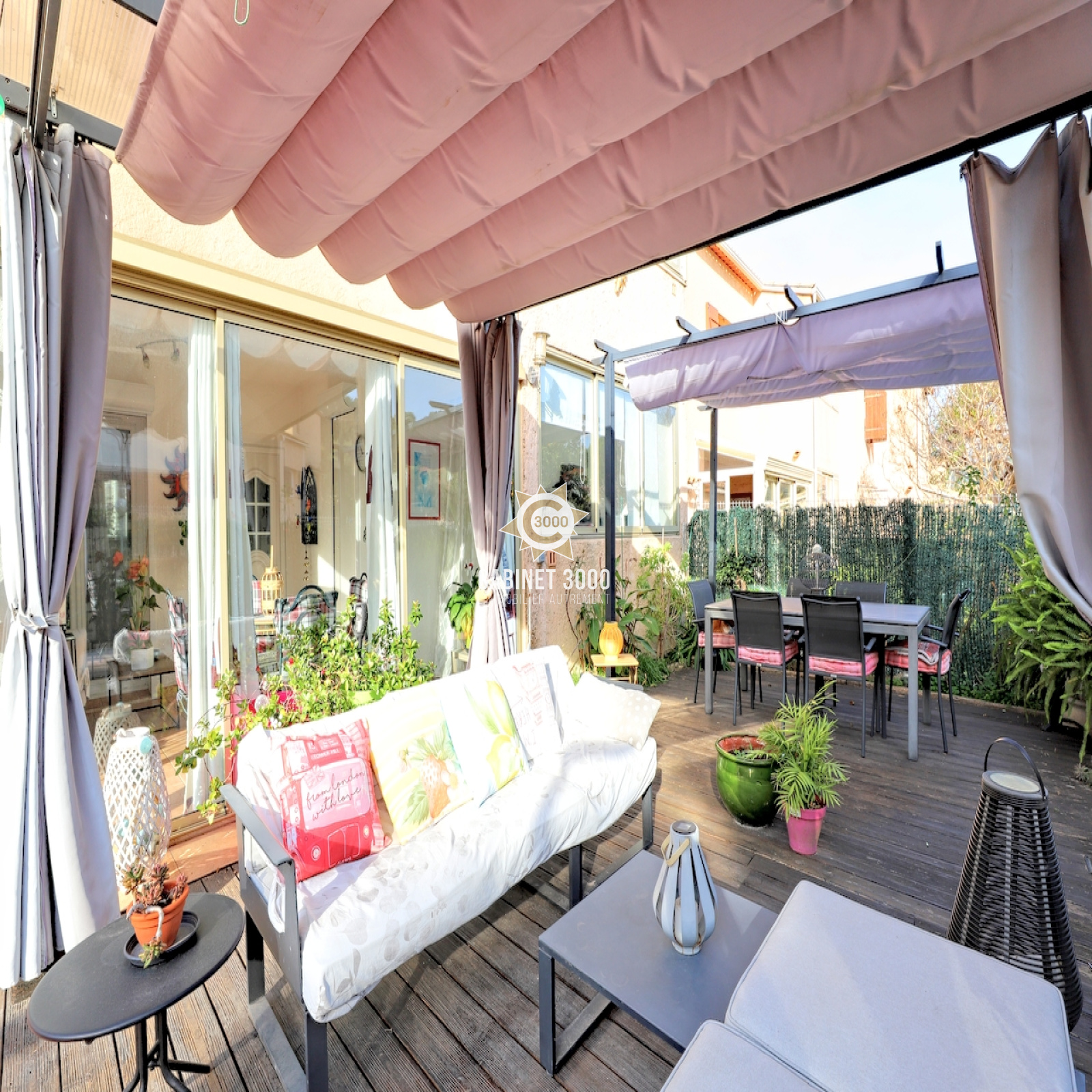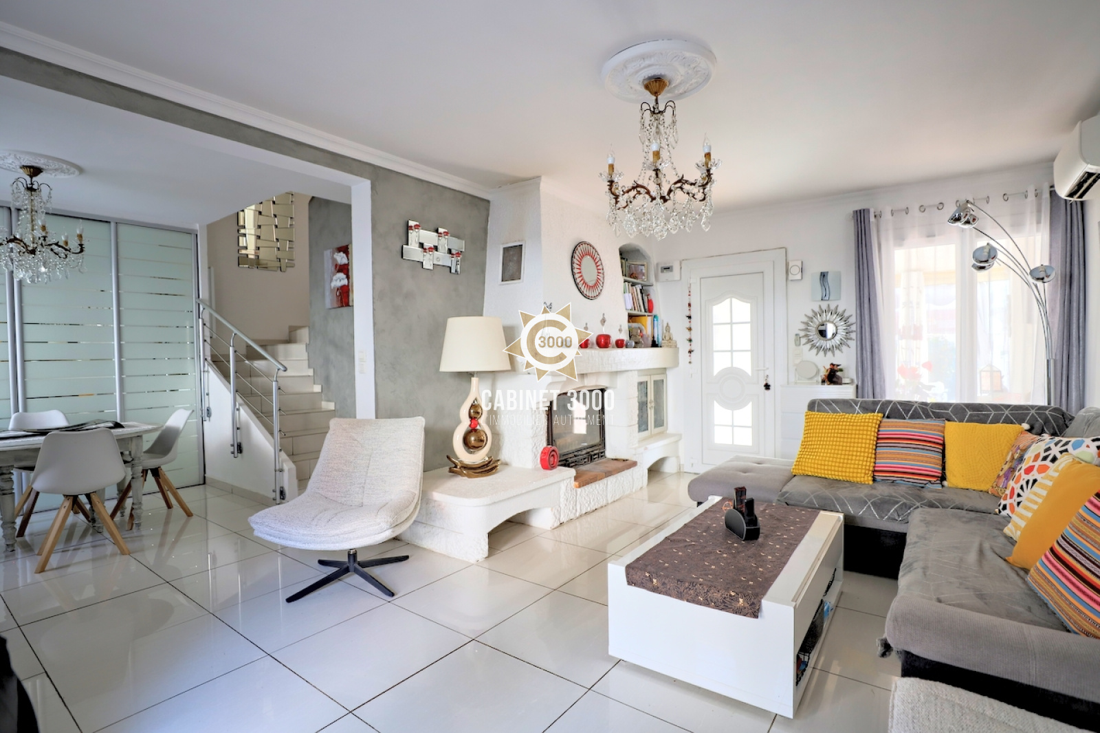 A Toulon, Pont de Suve, au calme, dans lotissement fermé et sécurisé, lumineuse maison de type T5 de 115 m², traversante, comprenant : cuisine, salon/séjour avec cheminée donnant sur véranda, terrasses et jardin, 3 chambres, salle d'eau, 2 WC, grenier avec plancher béton, buanderie et garage sur une parcelle de 246 m² avec forage à proximité des commodités.