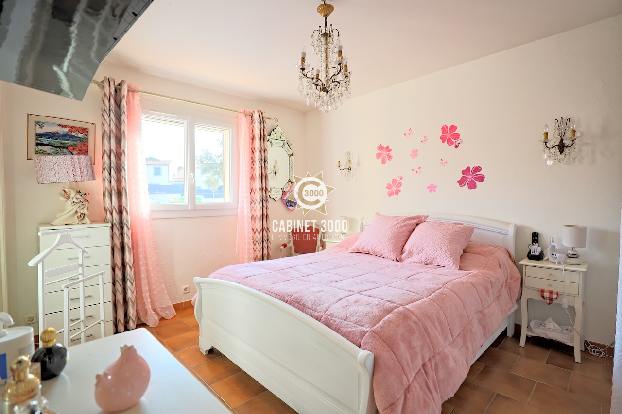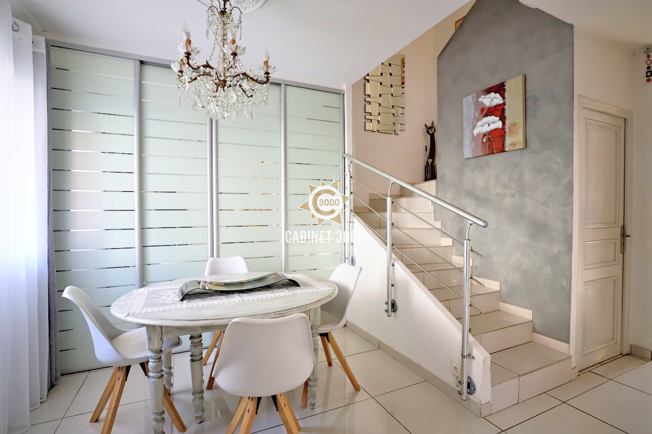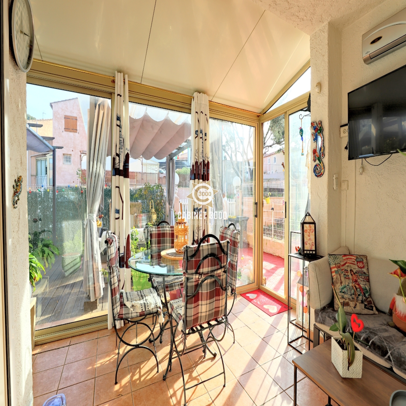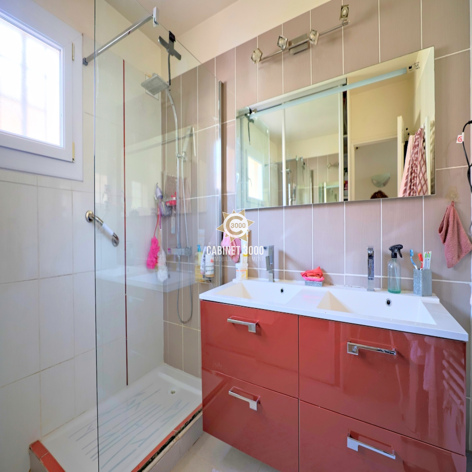 A Toulon, Pont de Suve, au calme, dans lotissement fermé et sécurisé, lumineuse maison de type T5 de 115 m², traversante, comprenant : cuisine, salon/séjour avec cheminée donnant sur véranda, terrasses et jardin, 3 chambres, salle d'eau, 2 WC, grenier avec plancher béton, buanderie et garage sur une parcelle de 246 m² avec forage à proximité des commodités.