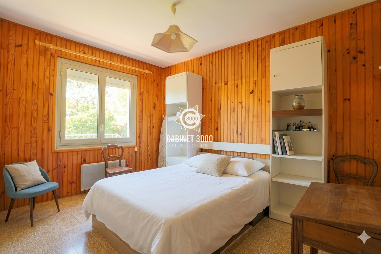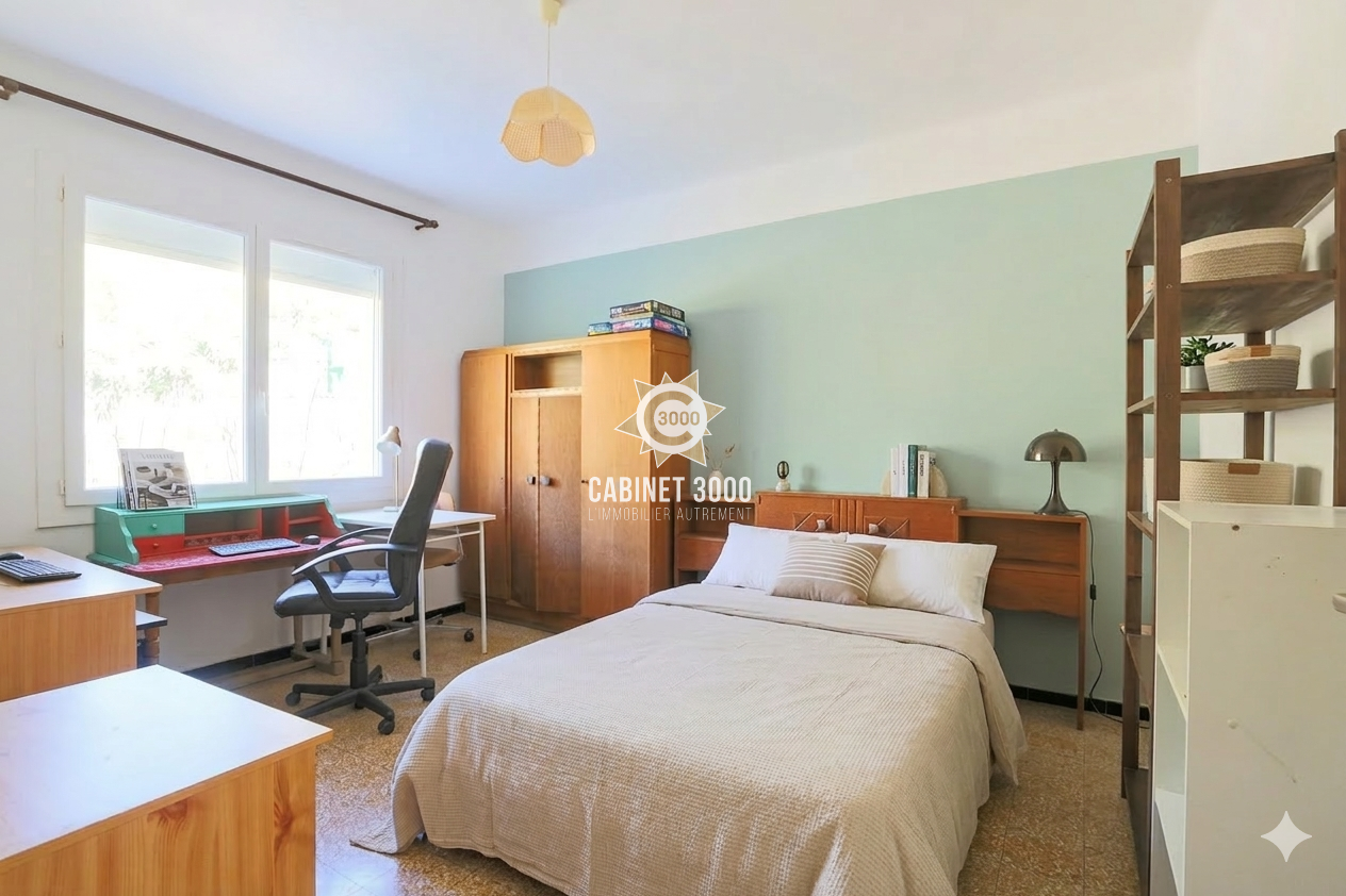 A Toulon, au calme, maison familiale de type T6 de 134 m² avec vue mer, comprenant : cuisine, salon/ séjour donnant sur une véranda, 4 chambres dont une suite parentale de plain-pied, salle de bain, 2 WC, buanderie, garage de 38 m² et parking pour 3 véhicules, sur une parcelle de 880 m² avec dépendance, à proximité immédiate du centre de La Valette.