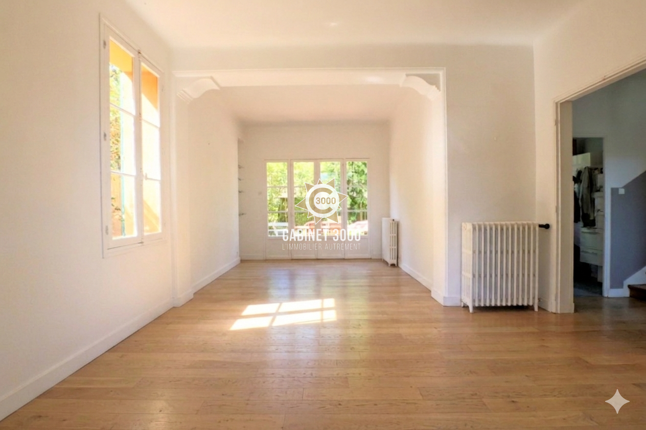EXCLUSIVITE - A Toulon, Cap Brun/Magaud, lumineuse maison des années 30 de type T6 de 160 m² traversante avec studio indépendant de 16 m², comprenant : cuisine et cellier donnant sur véranda, salon avec cheminée à insert, salle à manger, 4 chambres dont une donnant sur véranda, bureau, salle d'eau, 2 WC et grenier sur une parcelle de 406 m² avec piscine DIFFAZUR de 8x4 m, garage de 19 m² avec buanderie, à proximité des écoles, des plages et des commerces.