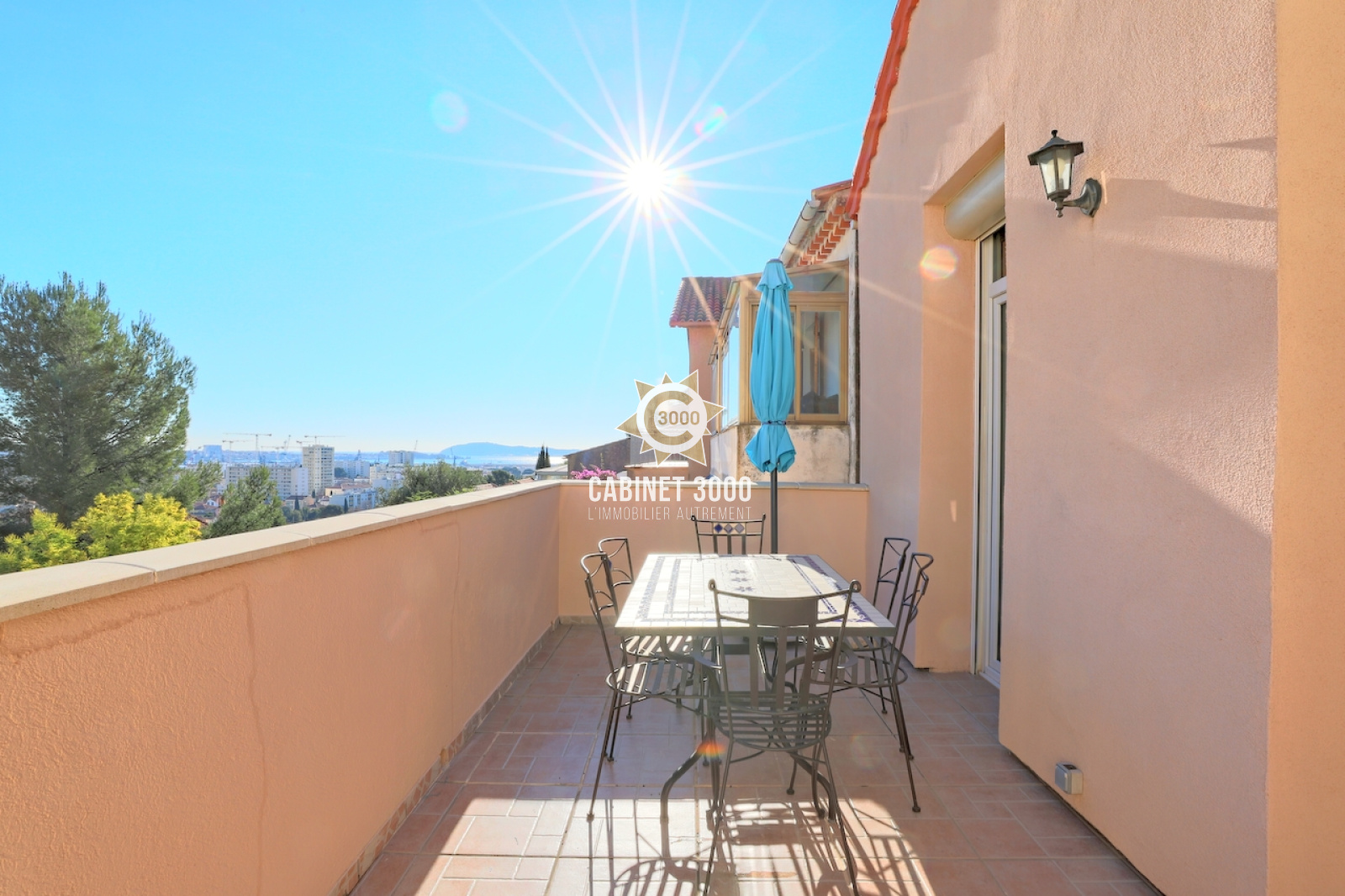 Toulon, Les Routes, au calme, vue dégagée sur la rade pour cette maison de type T4 de 70 m² divisée en 2 appartements, comprenant : au rez-de-chaussée : cuisine ouverte équipée, séjour donnant sur terrasse, 1 chambre donnant également sur terrasse et salle de bain avec WC ; en rez-de-jardin : kitchenette, 2 chambres et salle d'eau avec WC ; cave avec buanderie et chaufferie, sur une parcelle de 173 m² avec dépendance de 9 m².