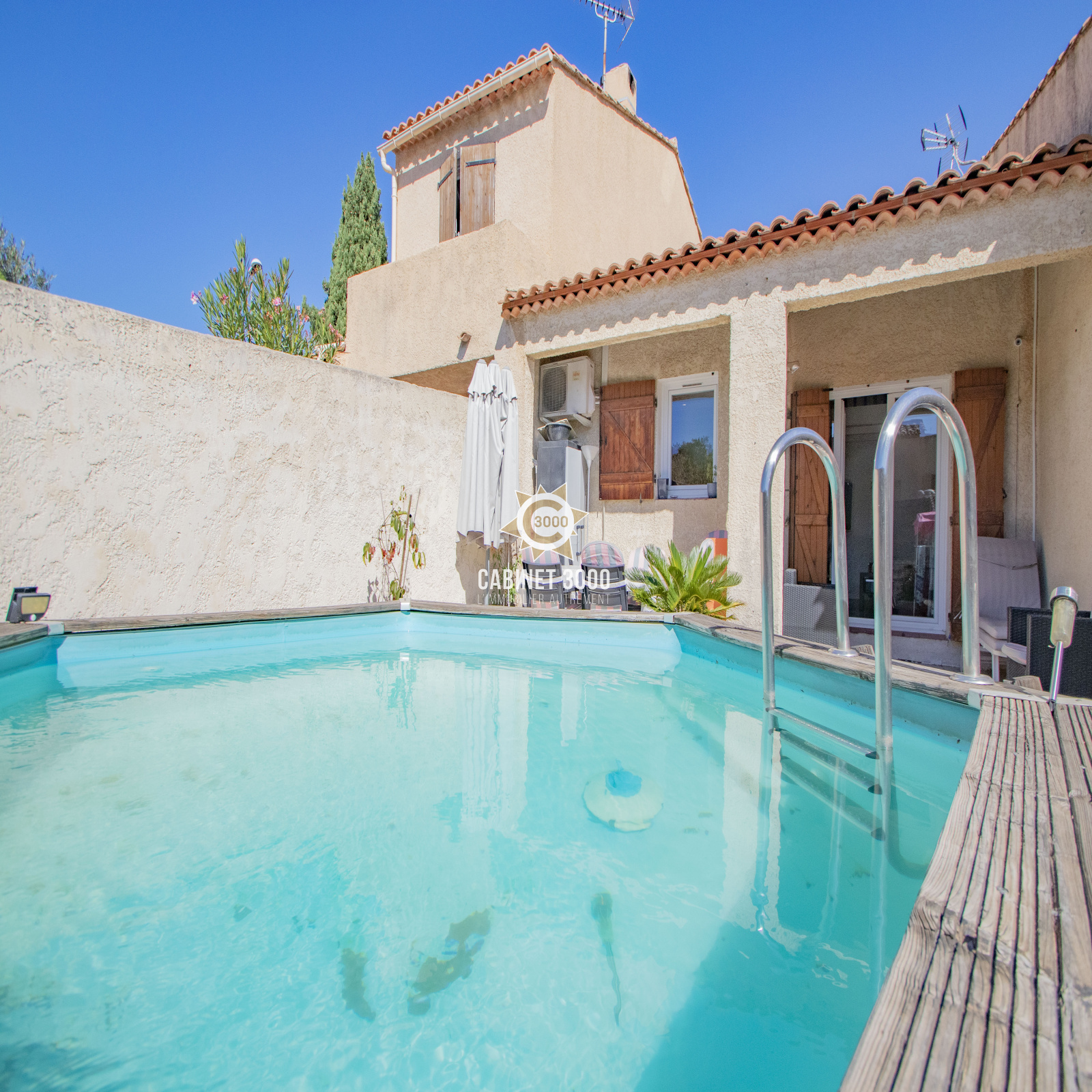 EXCLUSIVITE - A La Valette du Var, dans quartier recherché de Baudouvin, au calme, lumineuse maison de type T2 de 60 m², comprenant : cuisine et séjour donnant sur terrasse avec piscine hors-sol, 1 chambre et 1 bureau mansardés, salle de bain, WC, buanderie avec dressing, cave et parkings pour 2 voitures, à proximité du Centre. Maison pouvant être surélevée d'un étage.