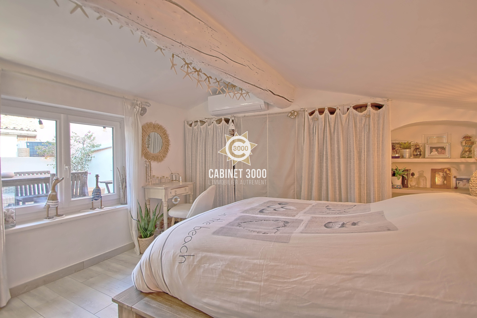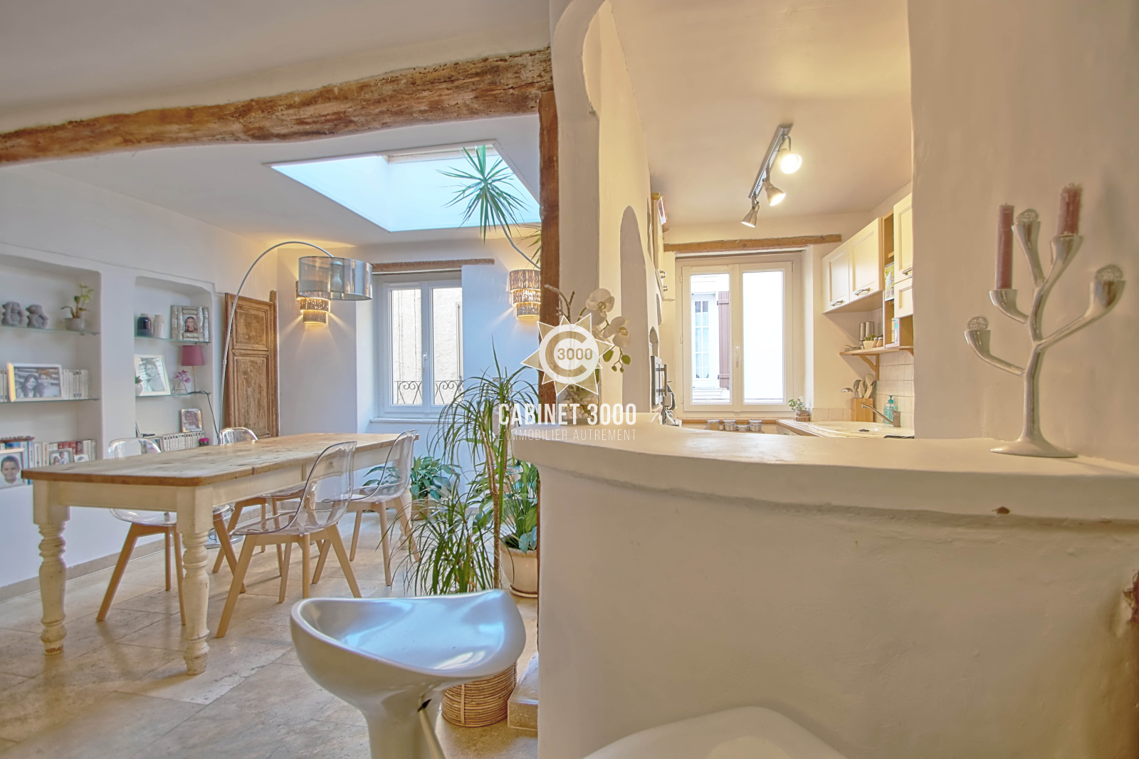 EXCLUSIVITE - A La Valette du Var, coeur de ville, dans un ancien relais de poste, maison de village de type T5 de 114 m² en parfait état, comprenant : cuisine équipée semi-ouverte sur salon/salle à manger, 3 chambres dont 2 avec mezzanine et une donnant sur terrasse tropézienne de 20 m², bureau avec dressing, salle de bain, WC, buanderie et garage de 15 m², à proximité de toutes les commodités.