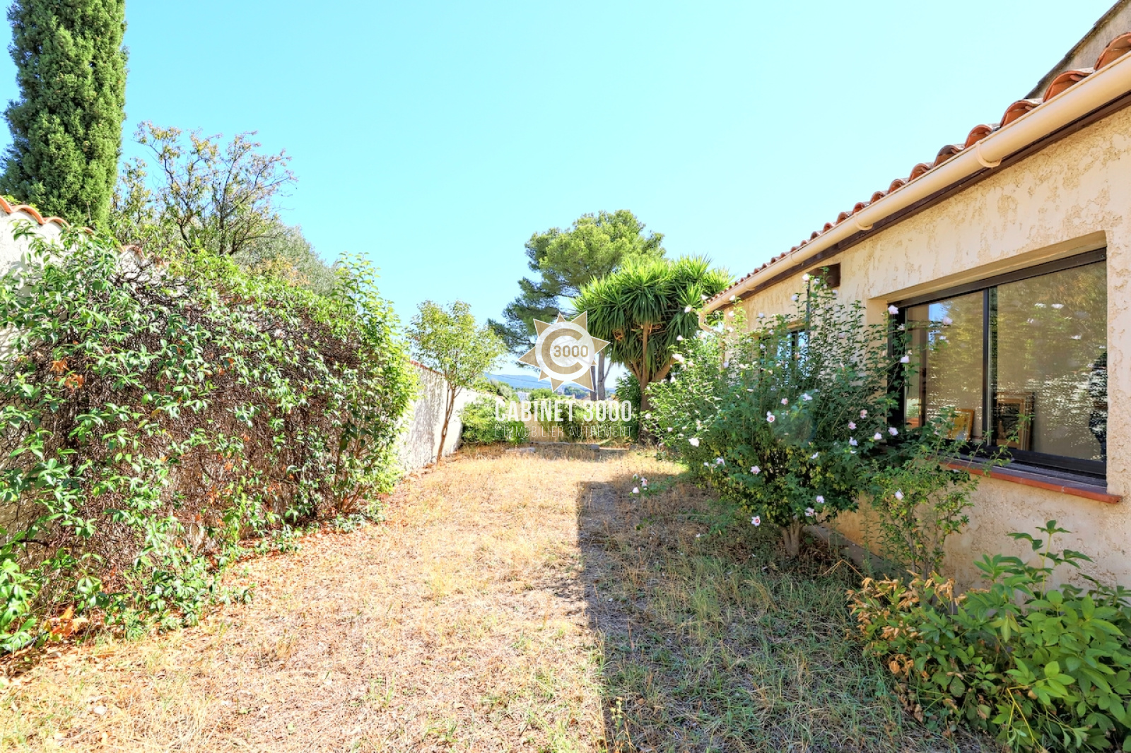 A La Valette du Var, La Calabro, lumineuse maison traditionnelle de type T5 de 110 m² mitoyenne par le garage, comprenant : cuisine aménagée donnant sur terrasse couverte, salon avec cheminée et salle à manger donnant sur terrasse de 35 m², 3 chambres dont une de plain pied, salle de bain, salle d'eau, 2 WC et bureau en mezzanine sur une parcelle de 563 m² piscinable avec dépendance, garage, cellier et grenier.