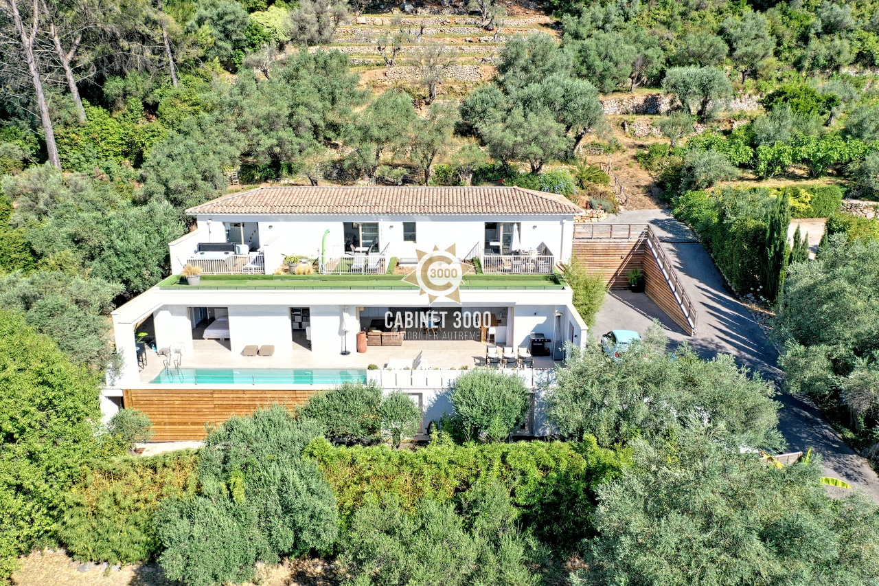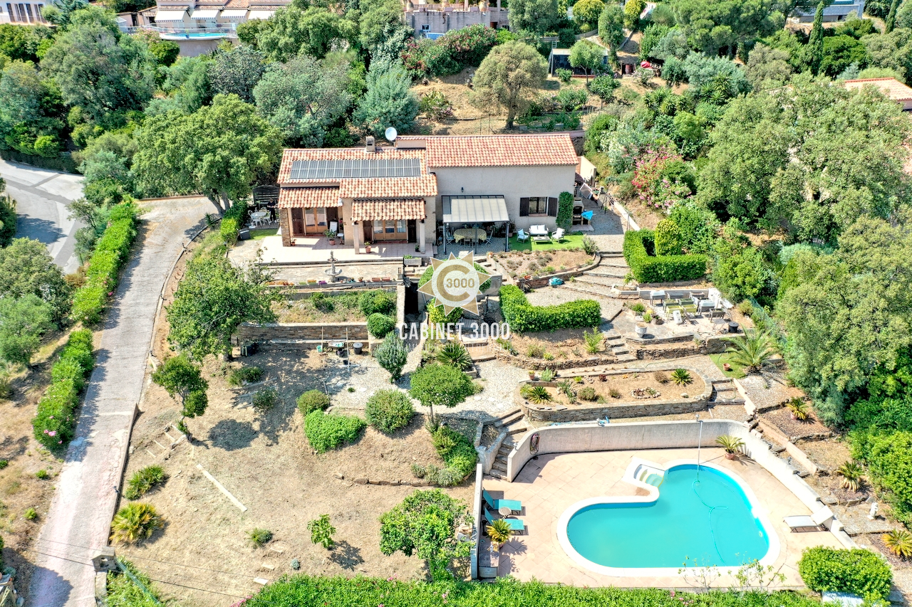 RARE A LA VENTE - A LA VALETTE DU VAR, Le Fuméou, vue mer pour cette propriété au calme, nichée dans un écrin de pins et d'oliviers, de type T8 de 183 m², comprenant au rez-de-chaussée : hall d'entrée desservant séjour avec cheminée et salon donnant sur terrasse et jardin, cuisine fermée, salle à manger ouvrant sur patio, 2 chambres, salle de bain, salle d'eau et WC ; à l'étage, lumineuse bibliothèque de 25 m² avec cheminée et terrasse tropézienne, 2 chambres, salles d'eau et WC, sur un terrain en restanques de 7825 m² avec piscine, dépendances et parkings.