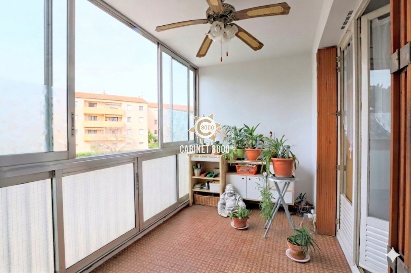 A La Garde - Au centre ville et à pied du parc du Plan, lumineux appartement de type T5 au 1er étage avec ascenseur comprenant : hall d'entrée, séjour donnant sur loggia sud, cuisine, cellier, 4 chambres, salle d'eau, WC séparé, buanderie. Cave et parking collectif.