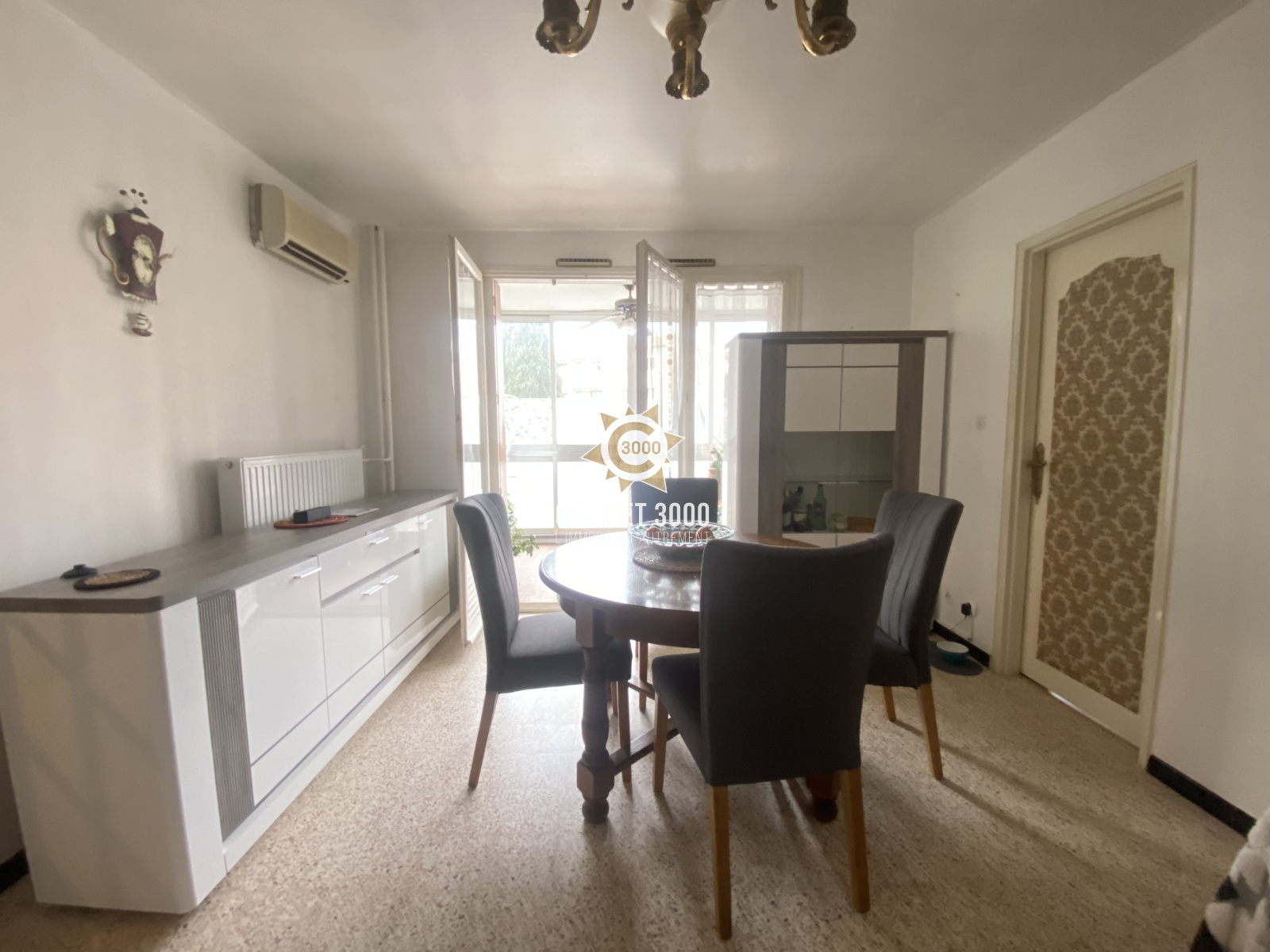 A La Garde - Au centre ville et à pied du parc du Plan lunimeux appartement de type T5 au 1er étage avec ascenseur comprenant: hall d'entrée, séjour donnant sur loggia sud, cuisine, cellier, 4 chambres, salle d'eau, WC séparé, buanderie. Cave et parking collectif.
