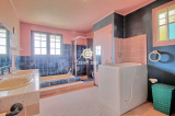 A La Seyne sur Mer, dans le quartier résidentiel de Barban, aperçu mer pour cette lumineuse maison de type T5 de 186 m² au calme dans zone boisée, comprenant : cuisine semi-ouverte, salle à manger, salon avec cheminée donnant sur terrasse couverte de 25 m² Sud, 3 chambres dont 2 de plain-pied, salle de bain, 2 WC, studio comprenant, cuisine équipée, salle d'eau et WC, cave de 35 m² et garage de 33 m² sur une parcelle de 1415 m² avec piscine et parkings. Rafraichissement à prévoir.