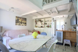 A La Seyne sur Mer, Les Sablettes, dans résidence fermée et sécurisée, lumineuse maison club de type T2 de 43 m² (Carrez : 23 m²), comprenant : cuisine ouverte sur séjour traversant Est-Ouest donnant sur terrasse et jardin privatif, chambre en mezzanine, salle d'eau avec WC, grenier et parking privatif, à proximité de la plage des Sablettes et des commerces. Idéal pour location airbnb ou pour maison de vacances.