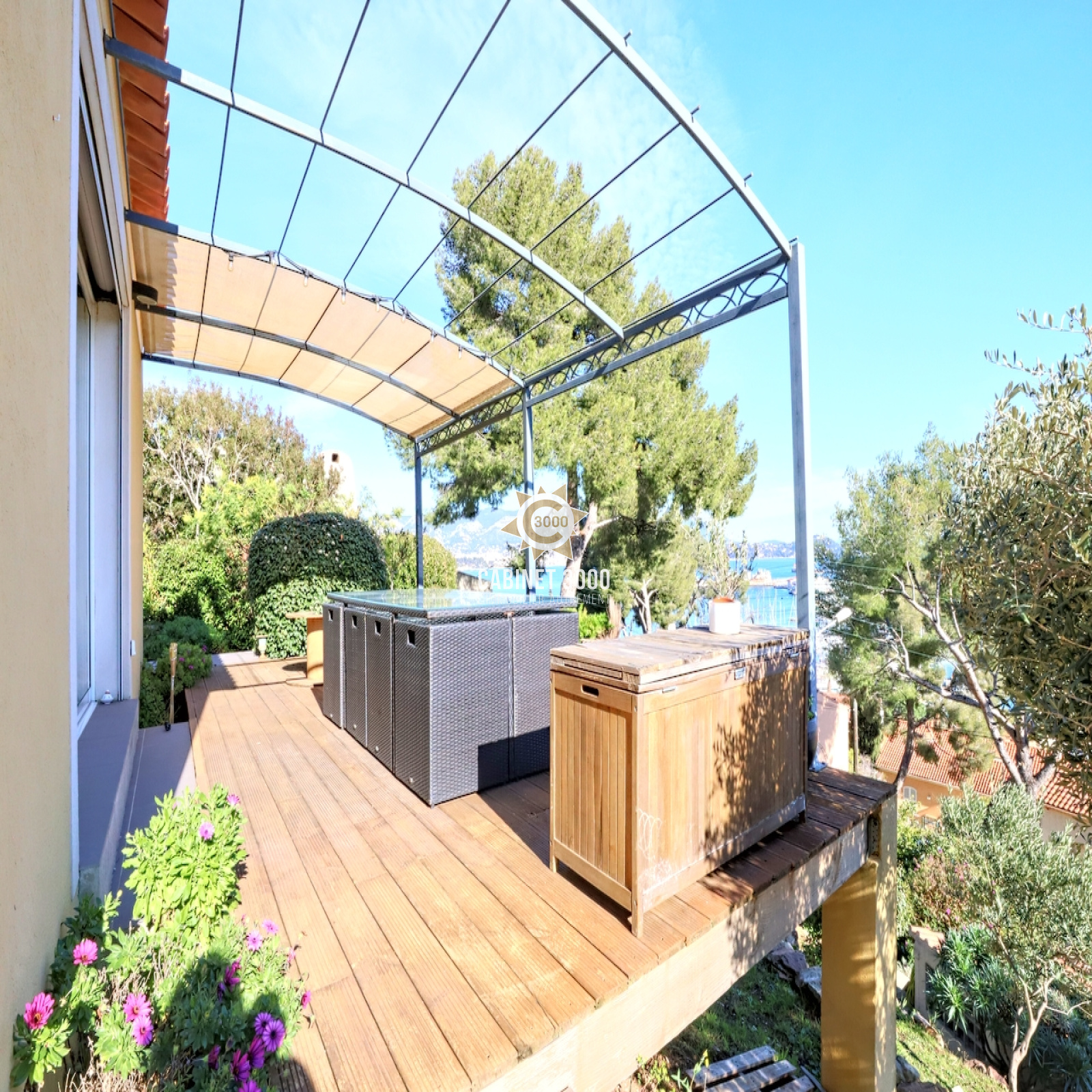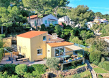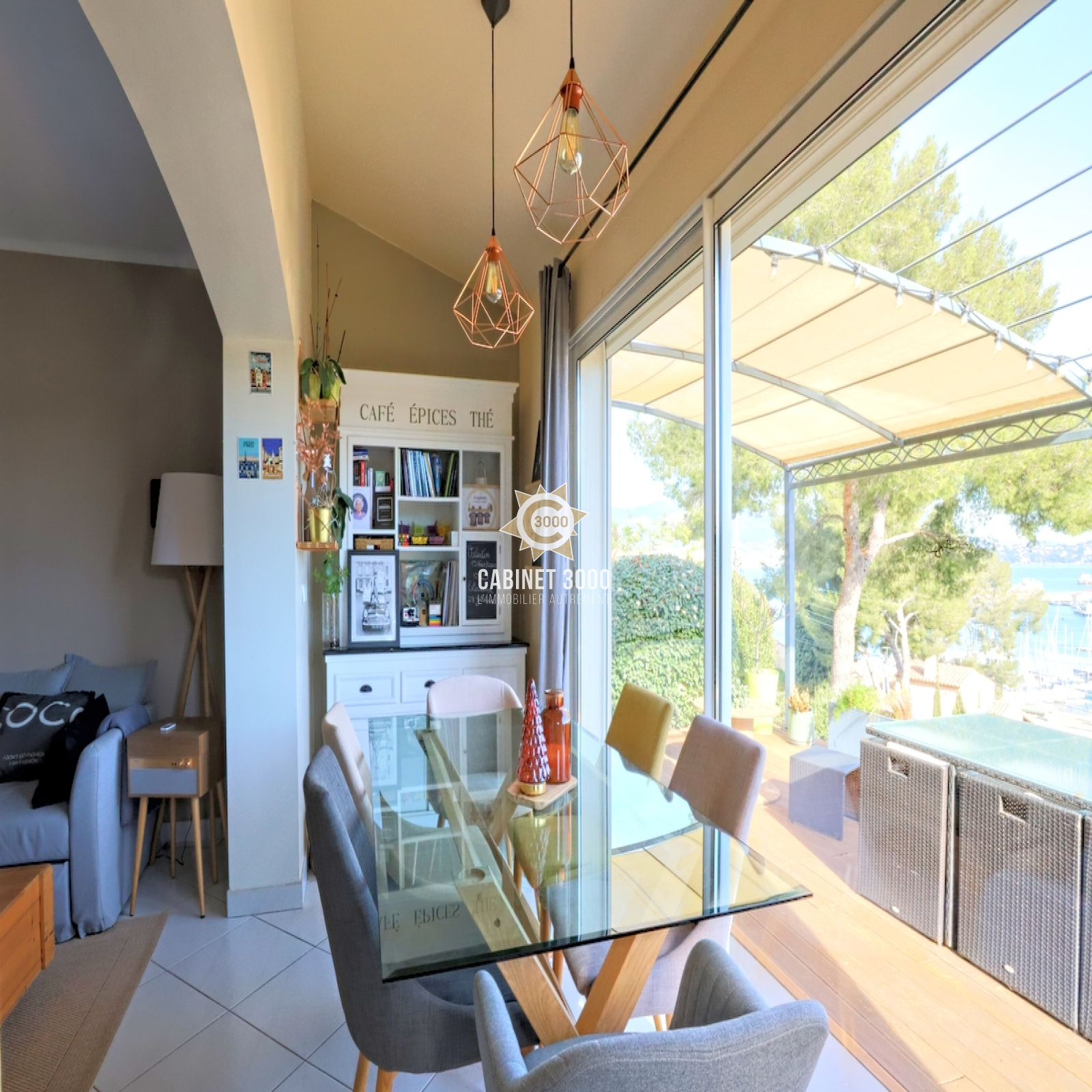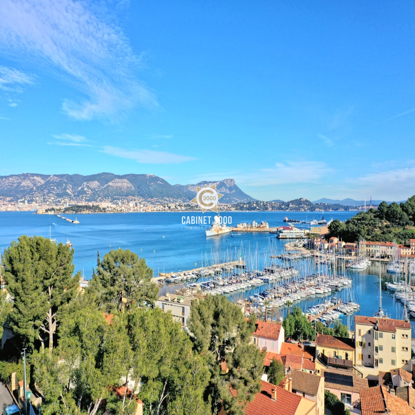 A Saint Mandrier, Village, vue mer pour cette lumineuse maison de type T5 de 146 m², en parfait état, comprenant : cuisine ouverte, séjour donnant sur terrasse et jardin, 4 chambres, bureau, 2 salles d'eau, 2 WC, buanderie, cave et garage sur une parcelle de 620 m² en restanques, à proximité des plages, du port et des commerces. Navette maritime à pied pour se rendre en 15 minutes sur Toulon.