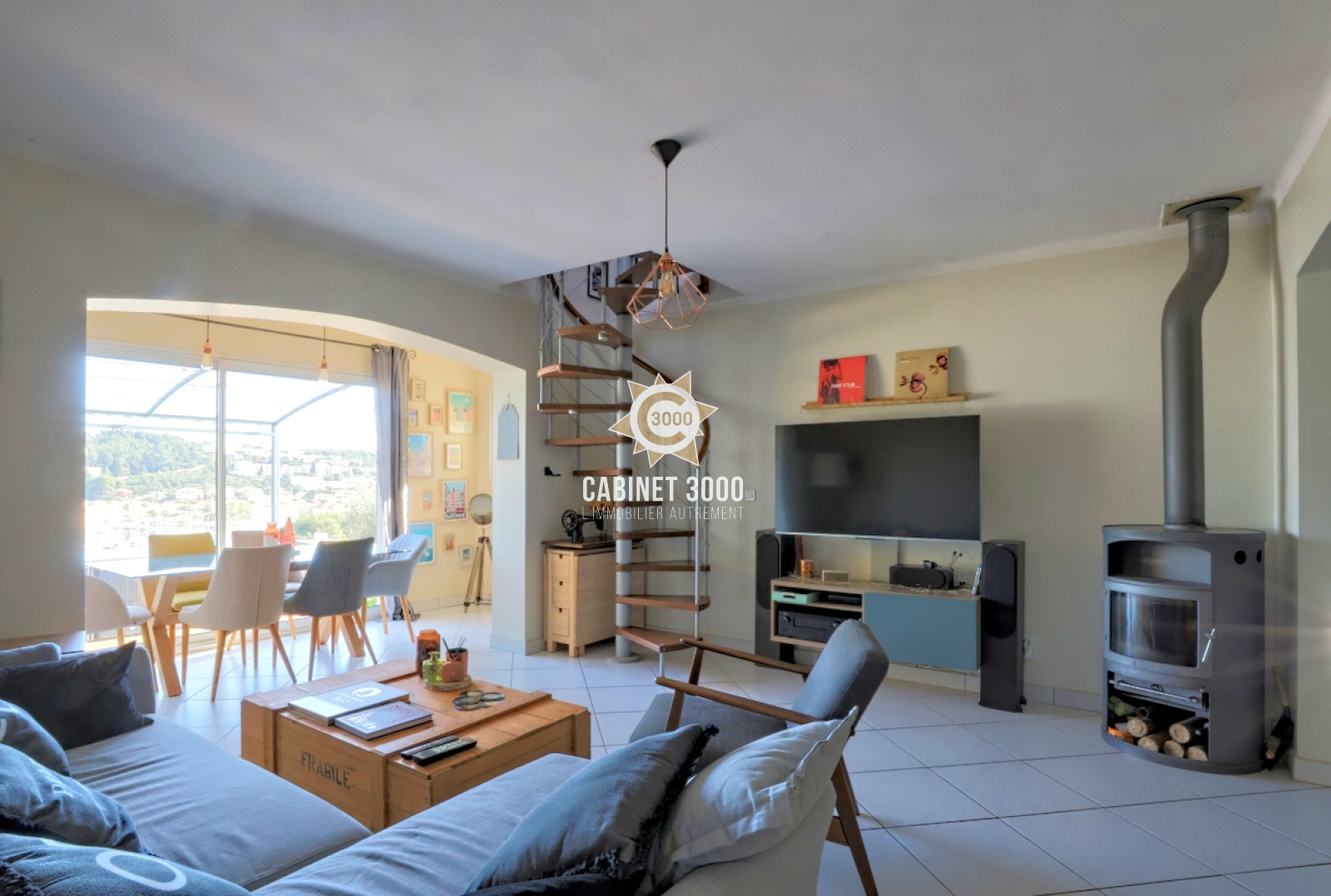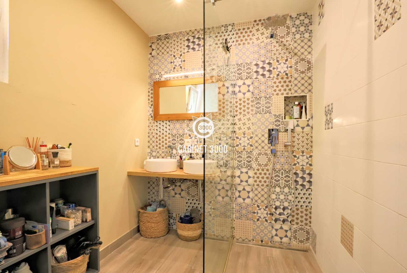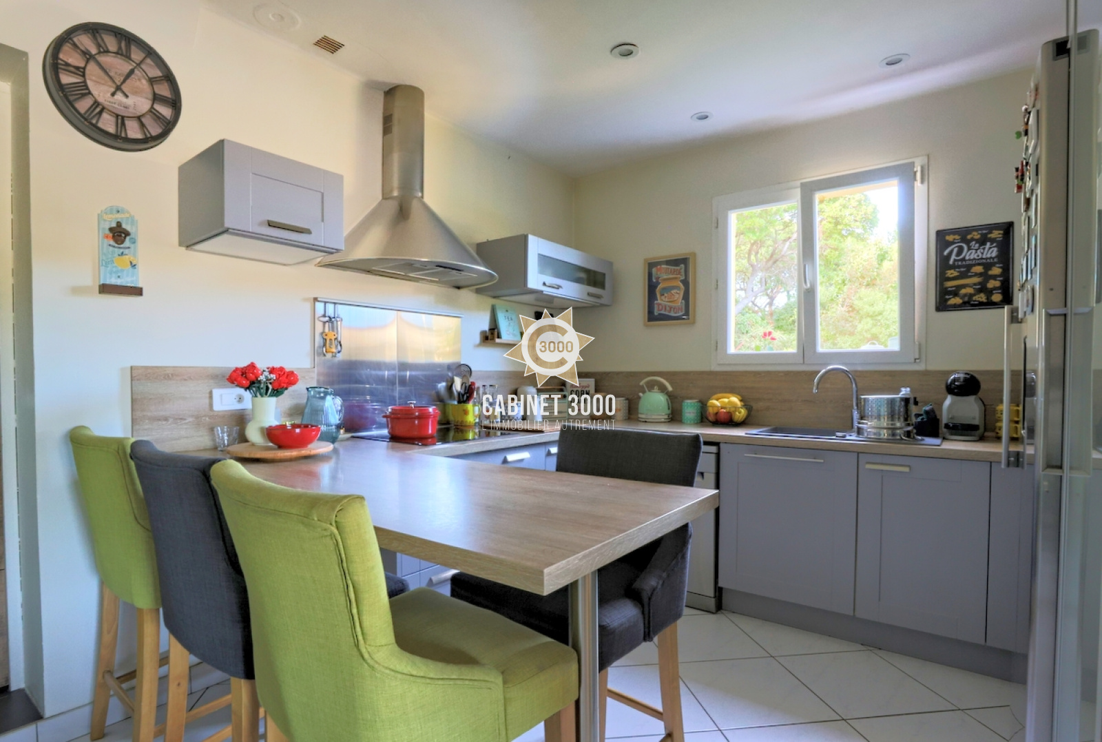 A Saint Mandrier, Village, vue mer pour cette lumineuse maison de type T5 de 146 m², en parfait état, comprenant : cuisine ouverte, séjour donnant sur terrasse et jardin, 4 chambres, bureau, 2 salles d'eau, 2 WC, buanderie, cave et garage sur une parcelle de 620 m² en restanques, à proximité des plages, du port et des commerces. Navette maritime à pied pour se rendre en 15 minutes sur Toulon.