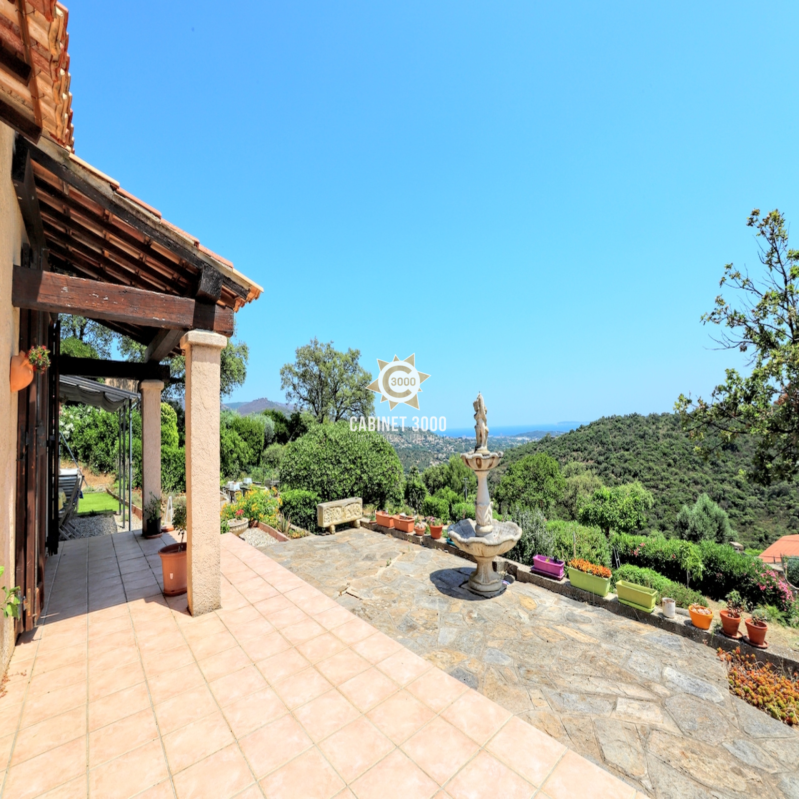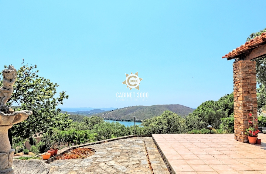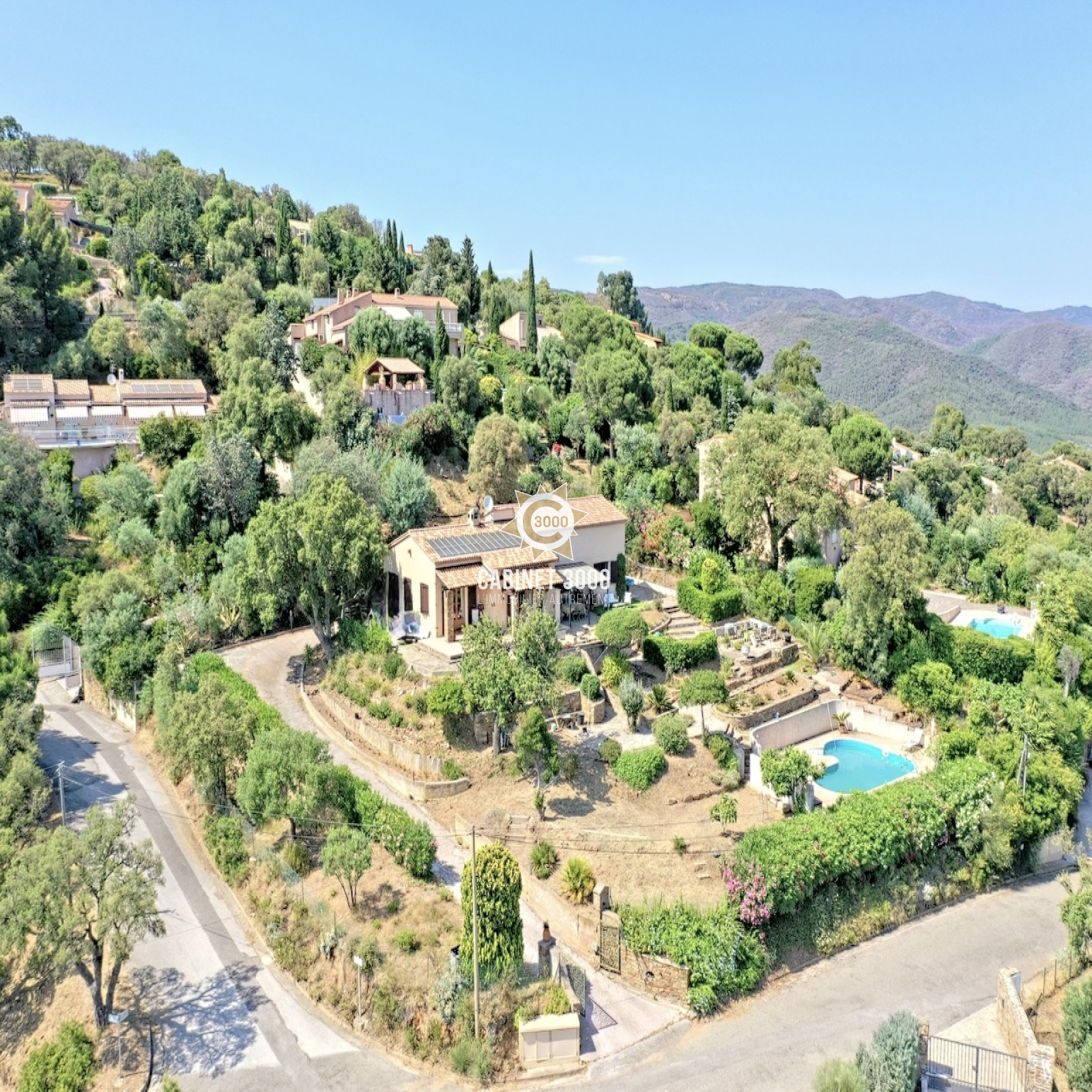 EXCLUSIVITE - A Bormes-Les-Mimosas, située sur les hauteurs d’un lotissement au cadre de vie paisible avec vue exceptionnelle sur la mer et le lac de Trapan, lumineuse maison de plain-pied, de type T5 de 137 m², comprenant : cuisine, salon/séjour de 41 m² avec cheminée et terrasse, 3 chambres, 2 salles d'eau don tune avec WC, WC séparé, buanderie, combles aménagés de 69 m², et piscine sur une parcelle de 1745 m² permettant de profiter pleinement de la nature et du calme environnant.