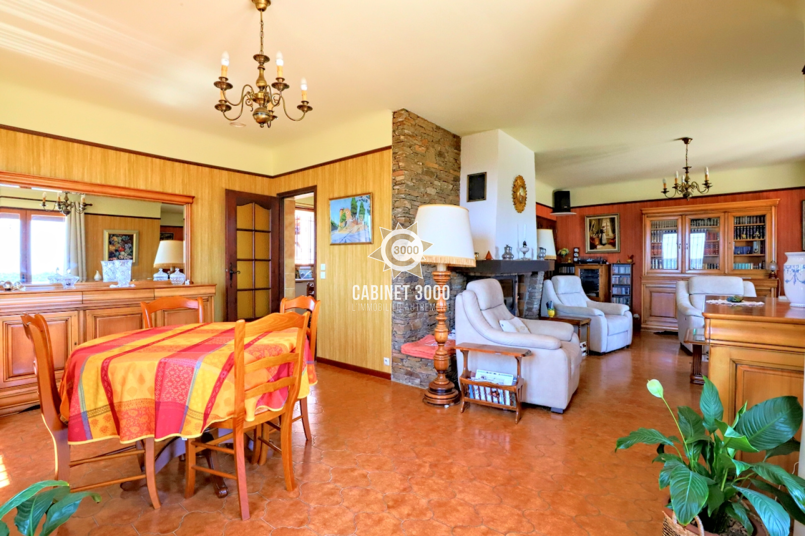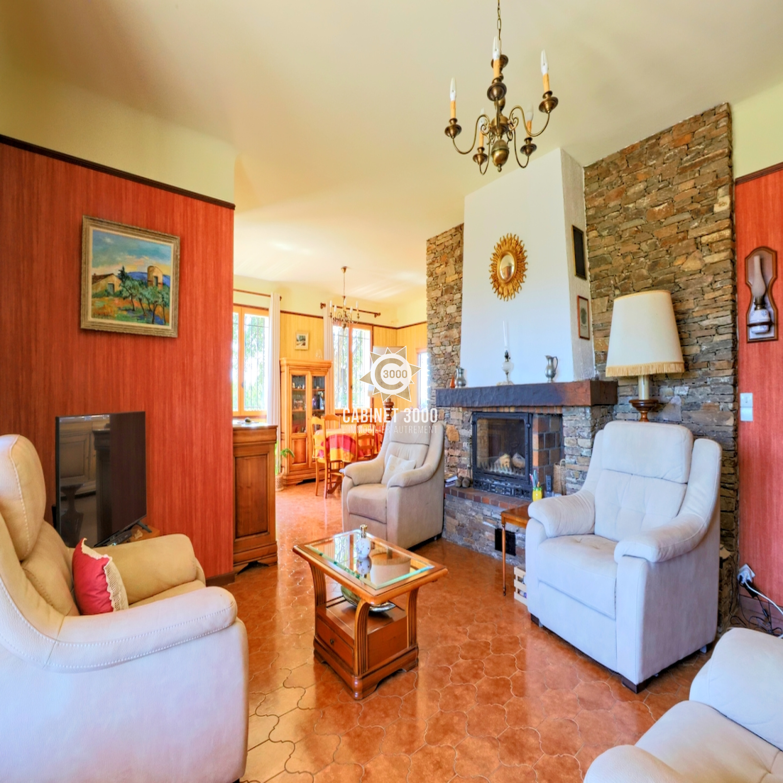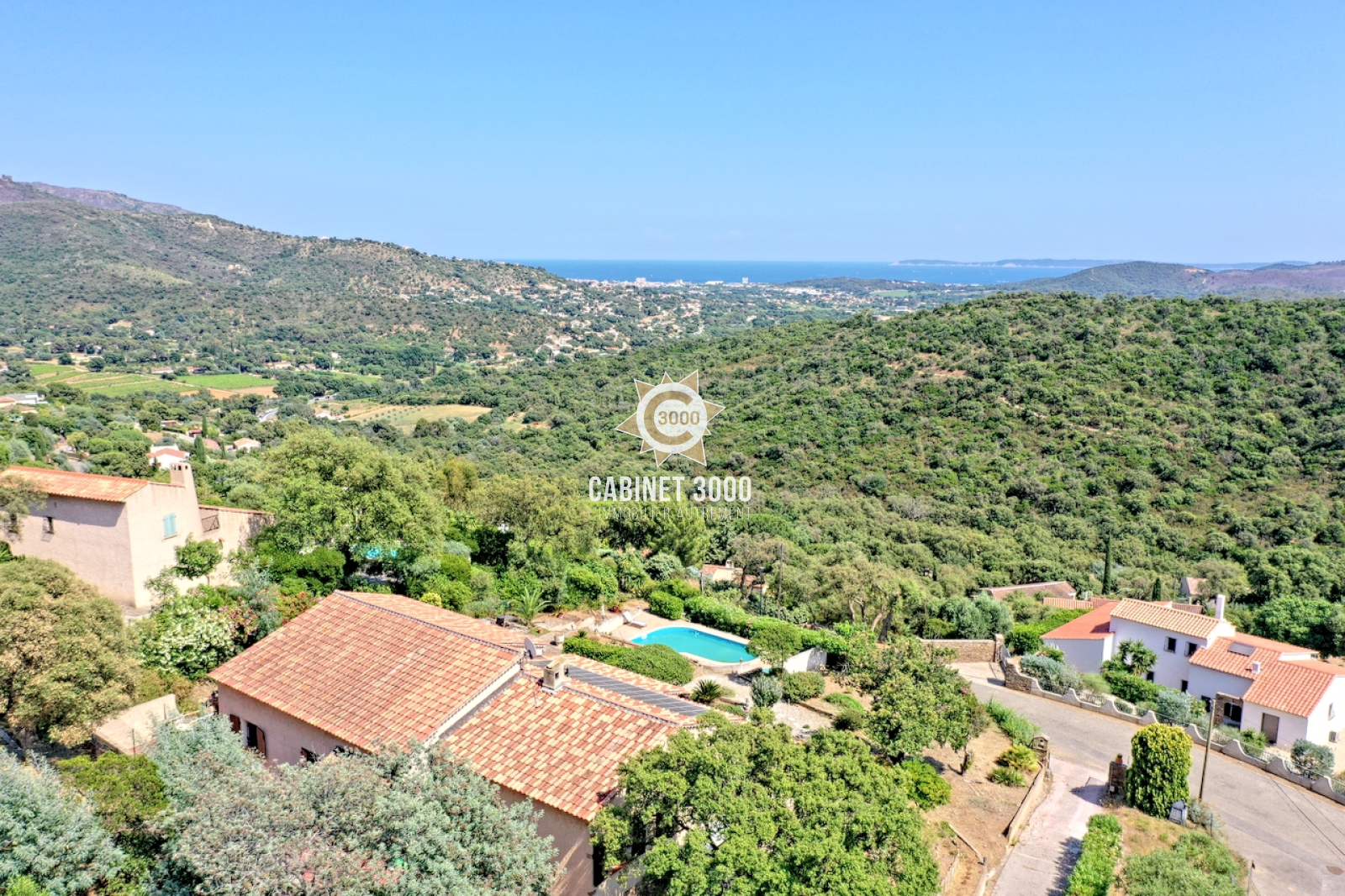 EXCLUSIVITE - A Bormes-Les-Mimosas, située sur les hauteurs d’un lotissement au cadre de vie paisible avec vue exceptionnelle sur la mer et le lac de Trapan, lumineuse maison de plain-pied, de type T5 de 137 m², comprenant : cuisine, salon/séjour de 41 m² avec cheminée et terrasse, 3 chambres, 2 salles d'eau don tune avec WC, WC séparé, buanderie, combles aménagés de 69 m², et piscine sur une parcelle de 1745 m² permettant de profiter pleinement de la nature et du calme environnant.