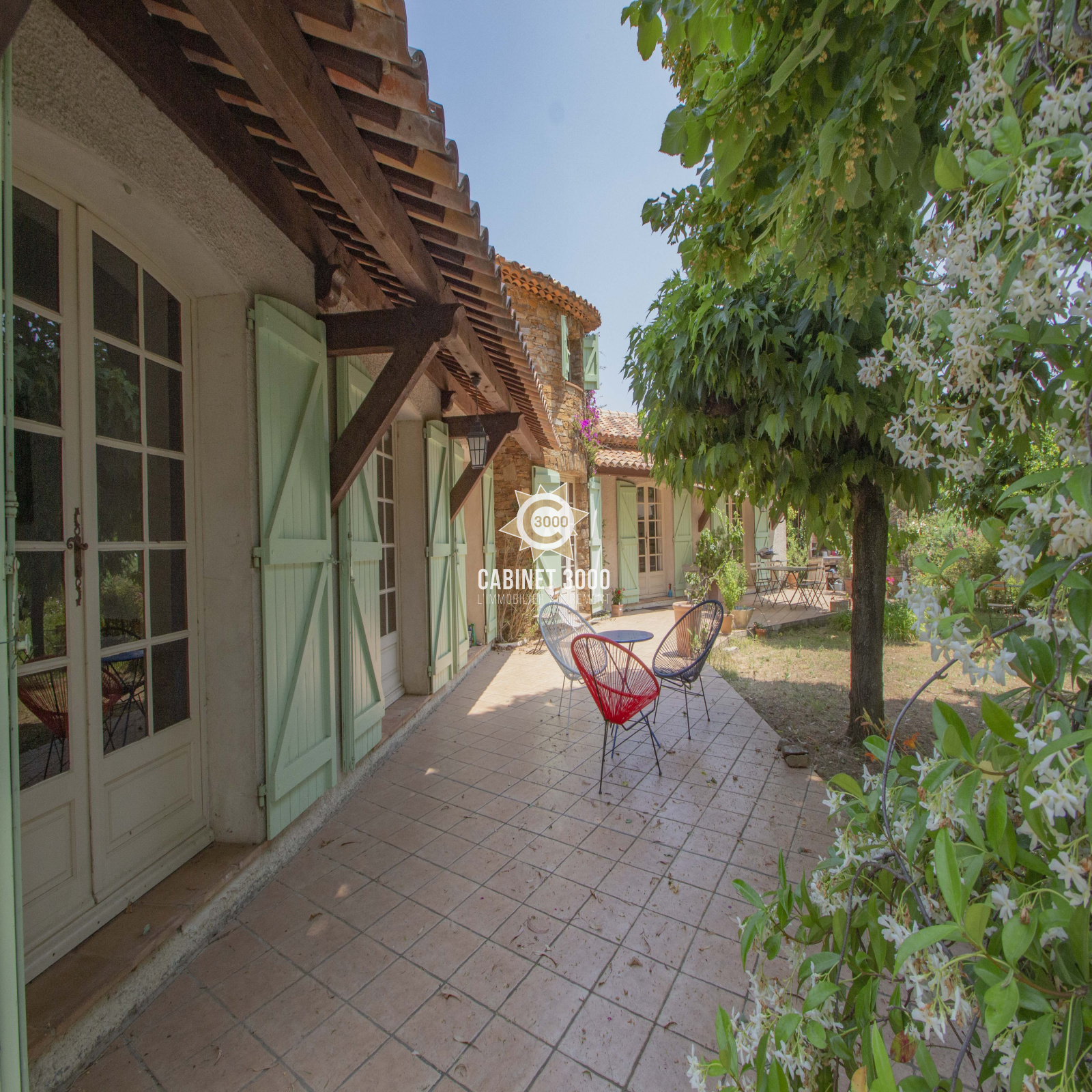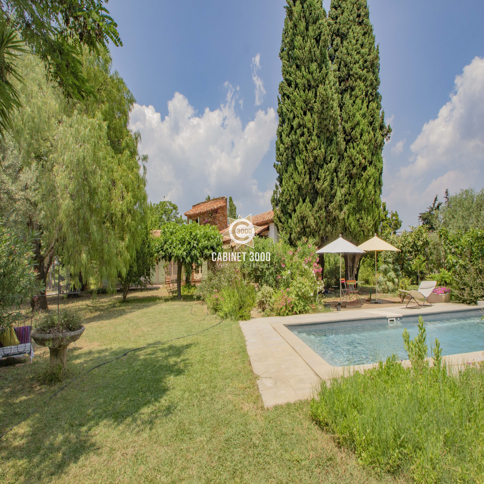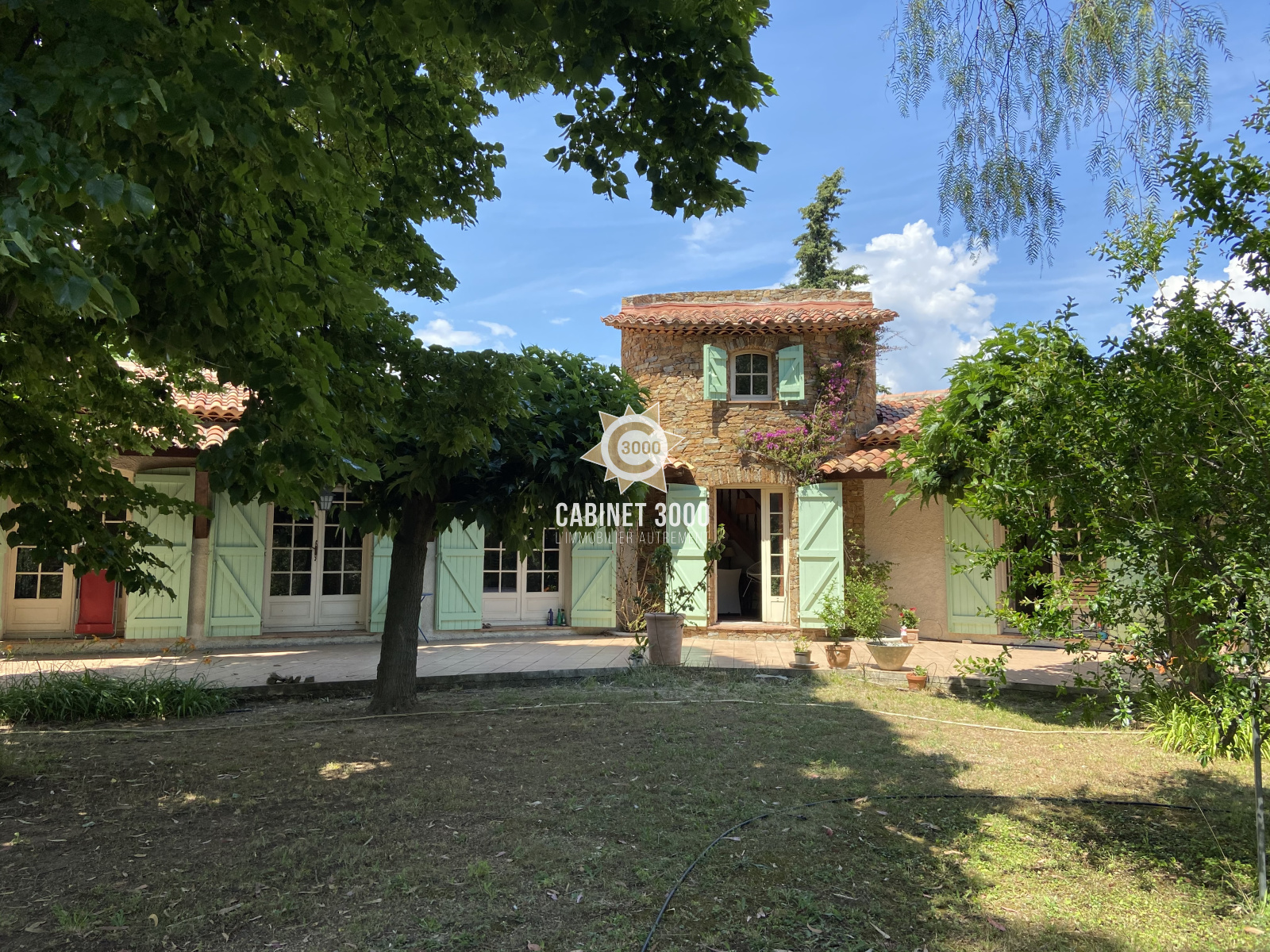 EXCLUSIVITE - A Sollies Pont, quartier recherché de La Tour, dans un écrin de verdure, charmante maison de plain-pied de type T5 de 150 m², au calme, comprenant : cuisine, salon/séjour avec cheminée donnant sur terrasse Sud de 80 m², 4 chambres, bureau et salle de bain avec douche, sur une parcelle de de 2534 m² avec piscine, garage double et dépendances.