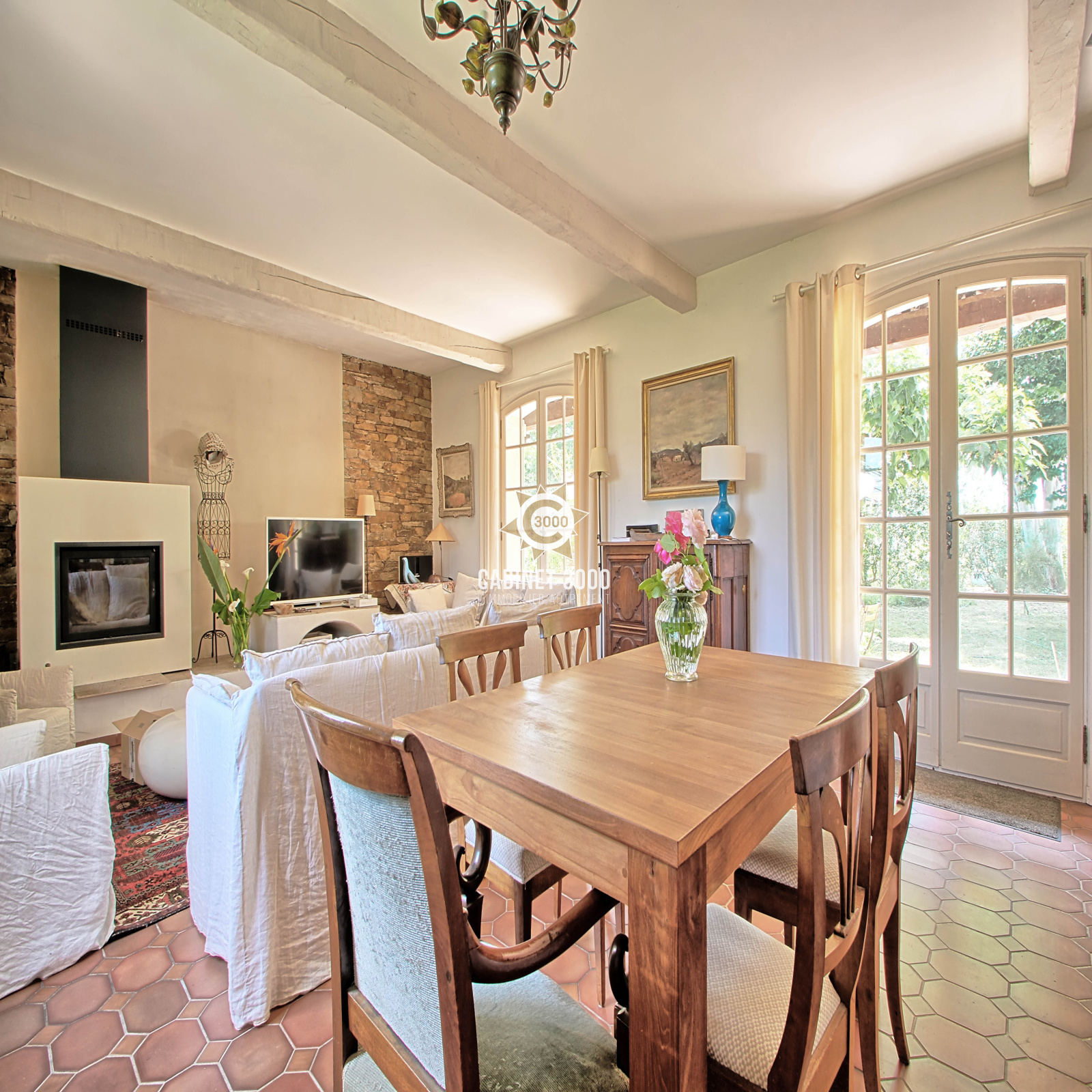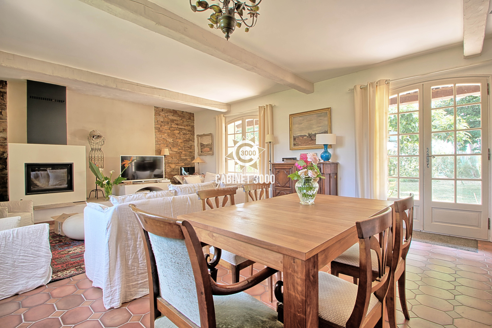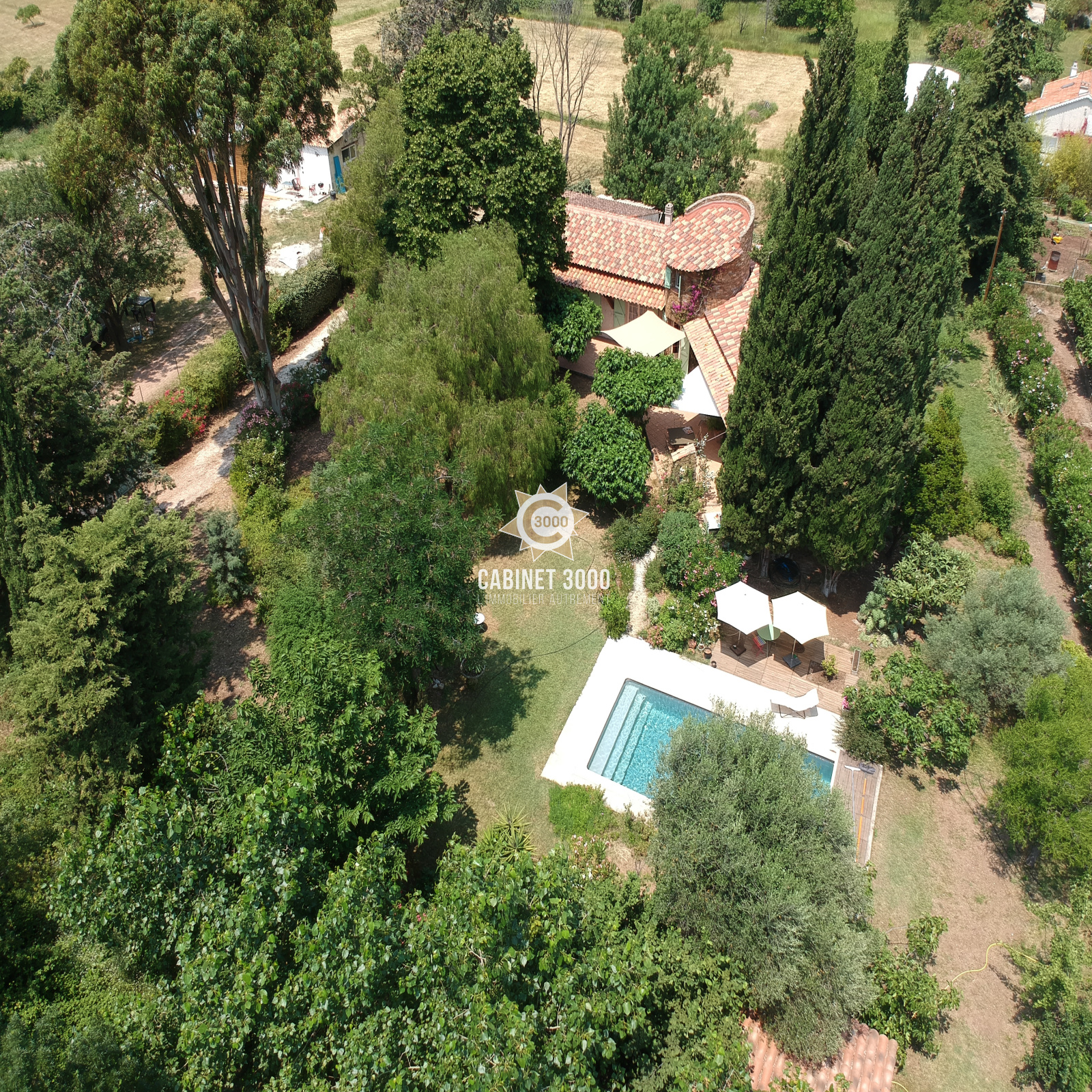 EXCLUSIVITE - A Sollies Pont, quartier recherché de La Tour, dans un écrin de verdure, charmante maison de plain-pied de type T5 de 150 m², au calme, comprenant : cuisine, salon/séjour avec cheminée donnant sur terrasse Sud de 80 m², 4 chambres, bureau et salle de bain avec douche, sur une parcelle de de 2534 m² avec piscine, garage double et dépendances.