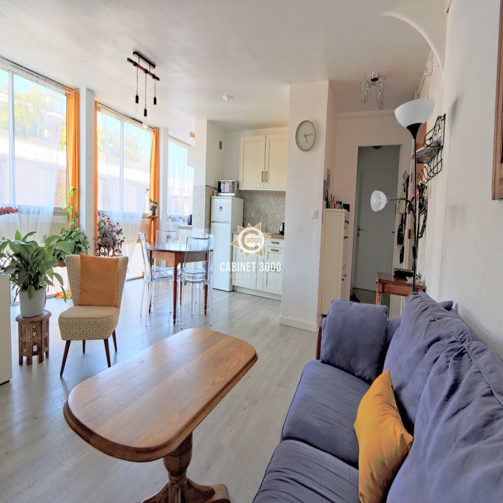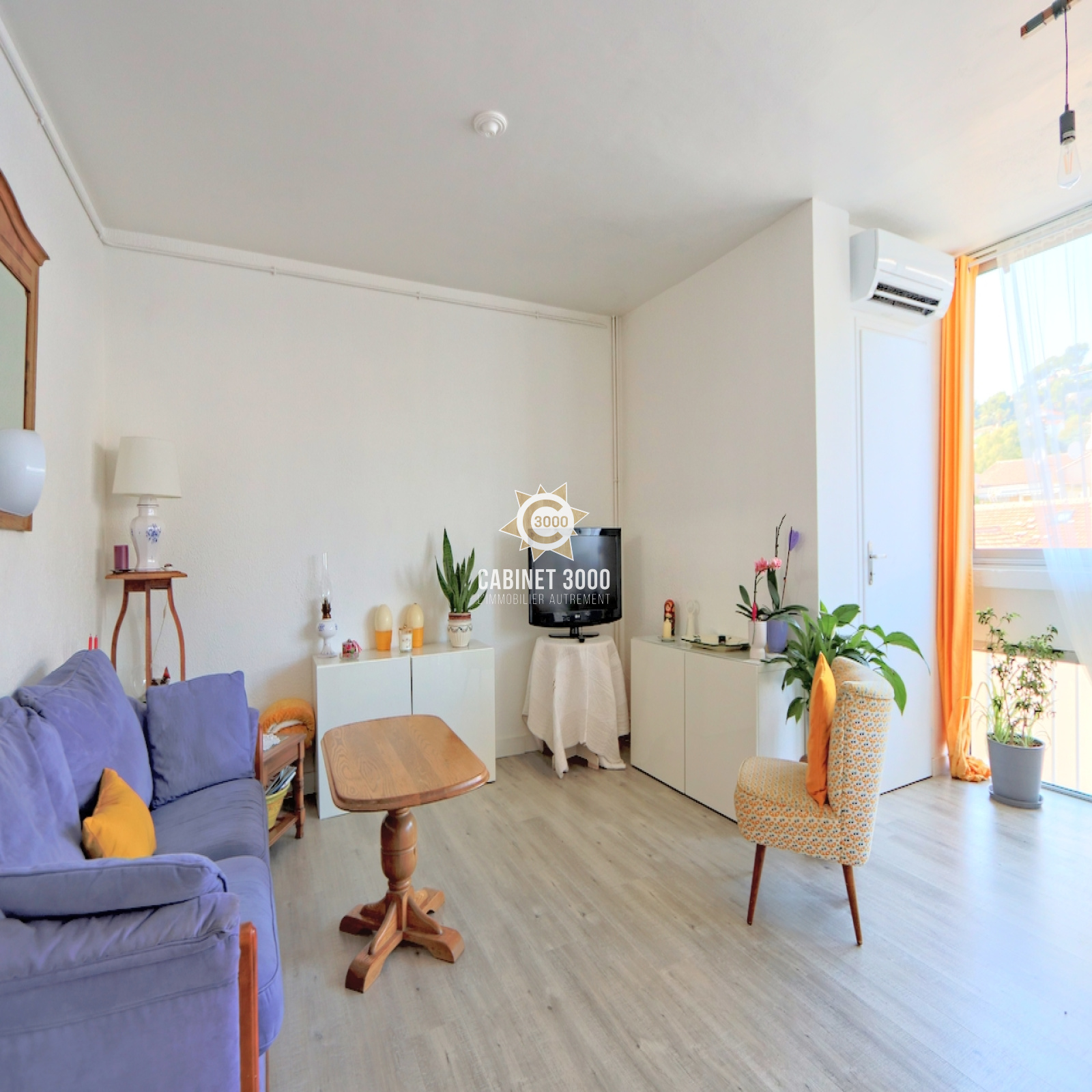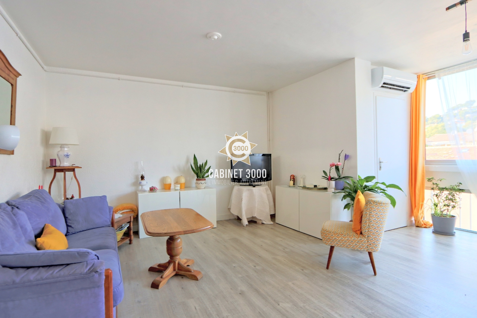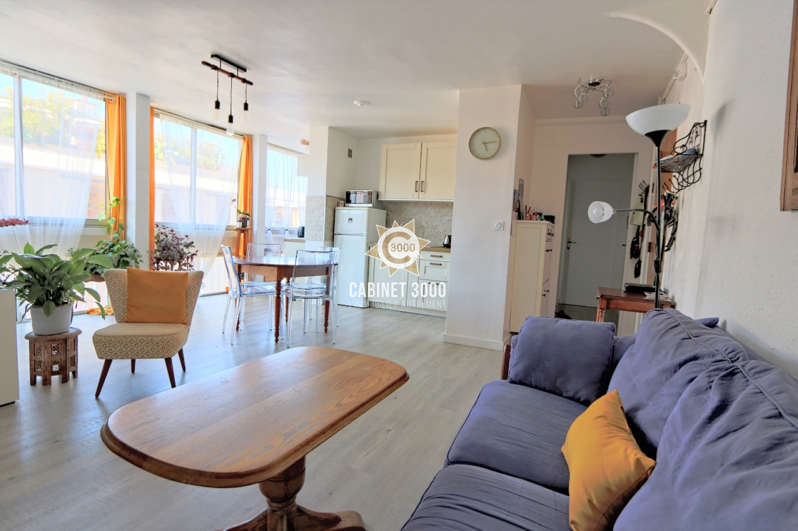 A Hyères, centre-ville au 3ème étage sur 4 avec ascenseur, lumineux appartement de type 2 de 56 m² comprenant : entrée, cuisine ouverte sur séjour, cellier, chambre avec dressing, salle de bains, WC et cave dans copropriété fermée et sécurisée avec tous les commerces de proximité accessibles à pied.