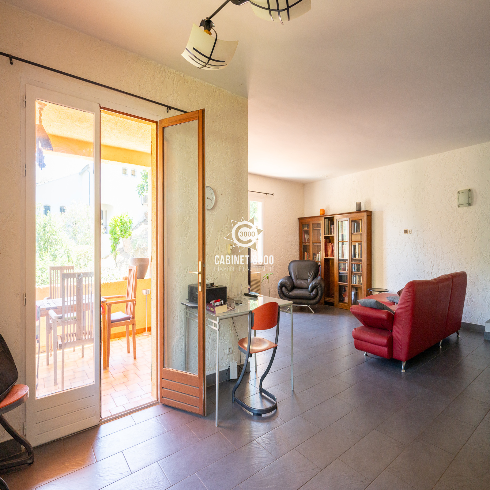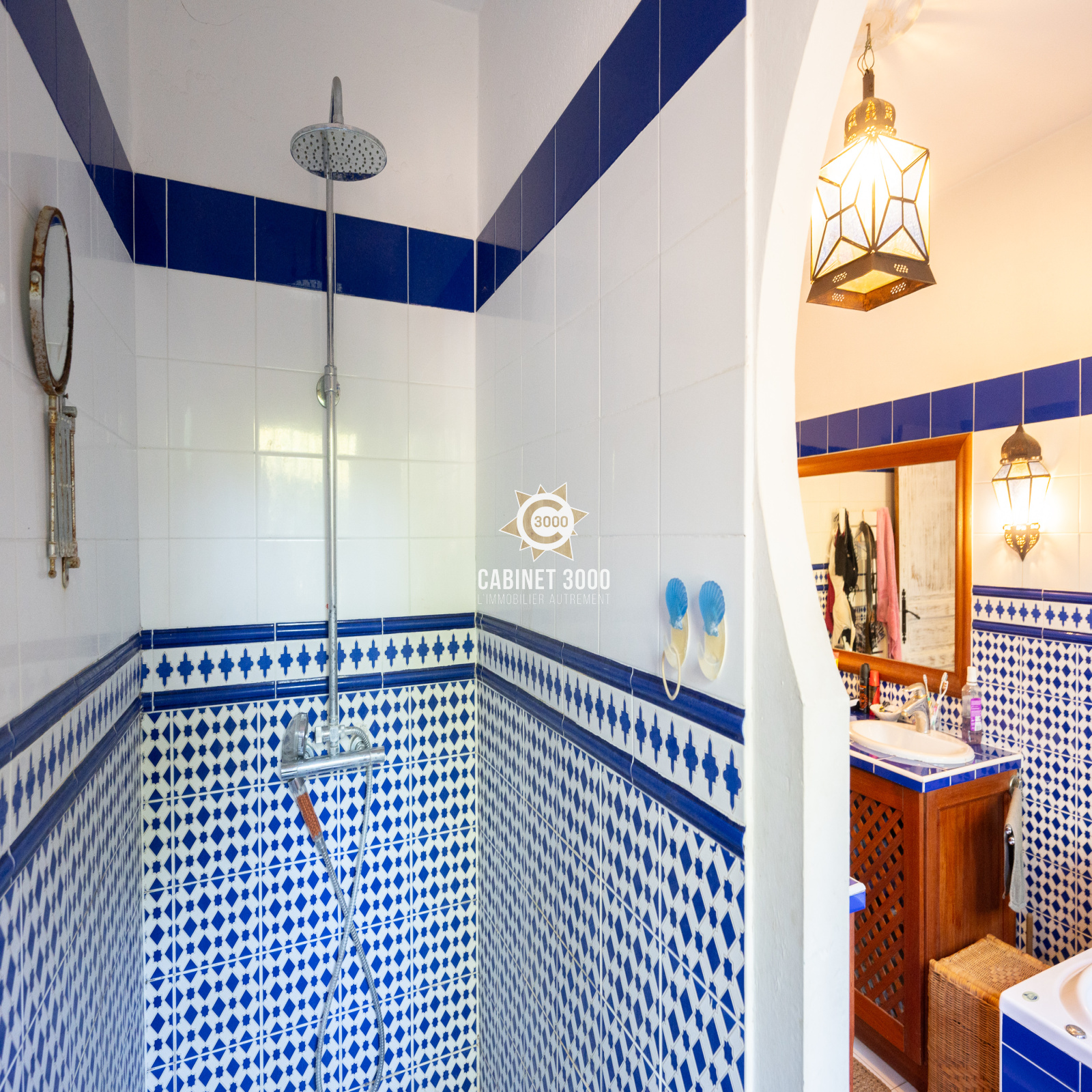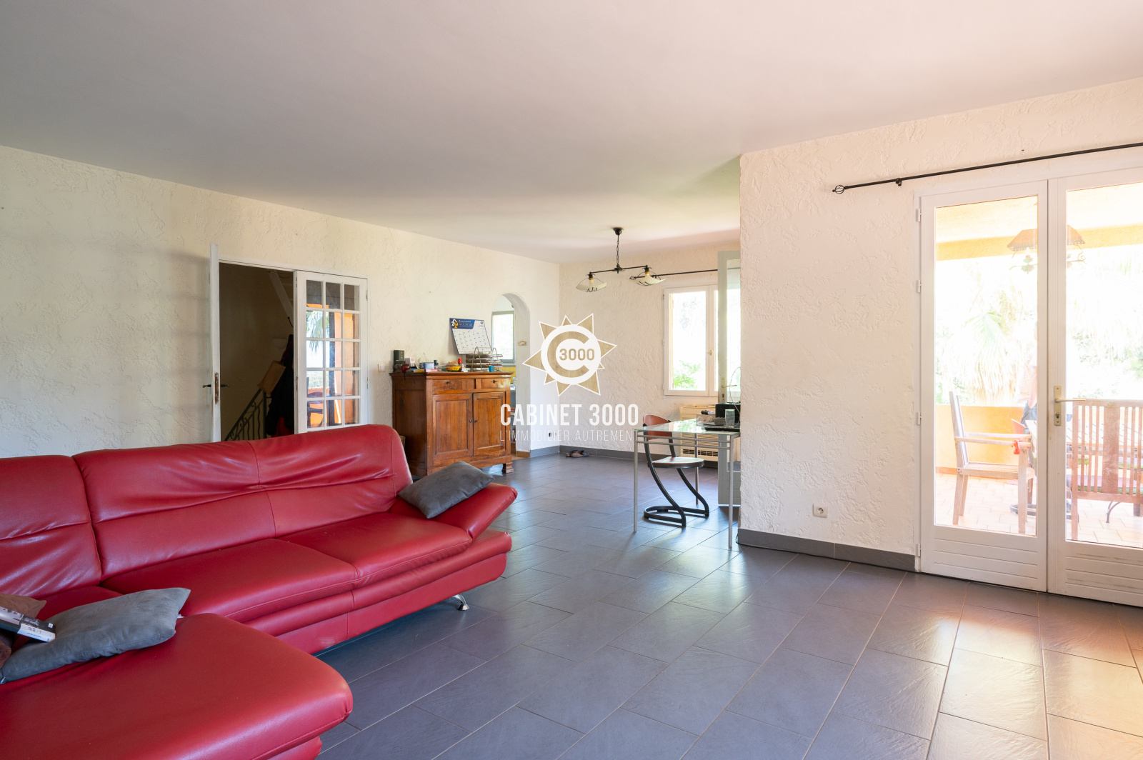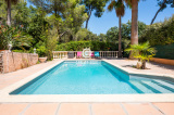 A Hyères, Costebelle, dans un écrin de verdure, beaux volumes pour cette lumineuse maison familiale de type T8 de 231 m², vue mer, avec de belles prestations, actuellement divisée en 4 appartements, mais facilement réunifiable : au 1er étage un appartement de type T4 de 124 m², comprenant : cuisine, séjour de 44 m² donnant sur grande terrasse, 2 chambres avec placards, salle de bain, WC et buanderie ; au rez-de-chaussée : 1 appartement de type T1 et 2 appartements de type T2 sur une parcelle de 800 m² avec piscine, forage et parkings, à 5 mn de la plage de l'Almanarre.
