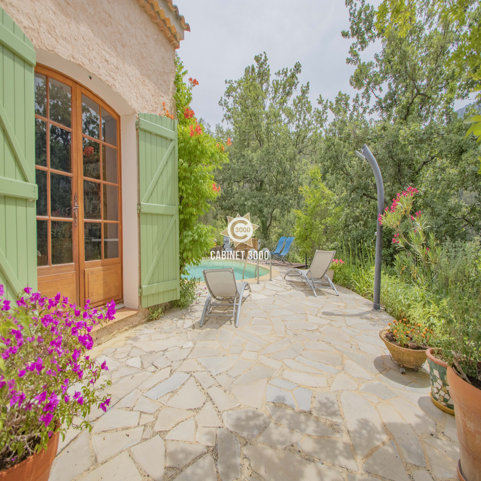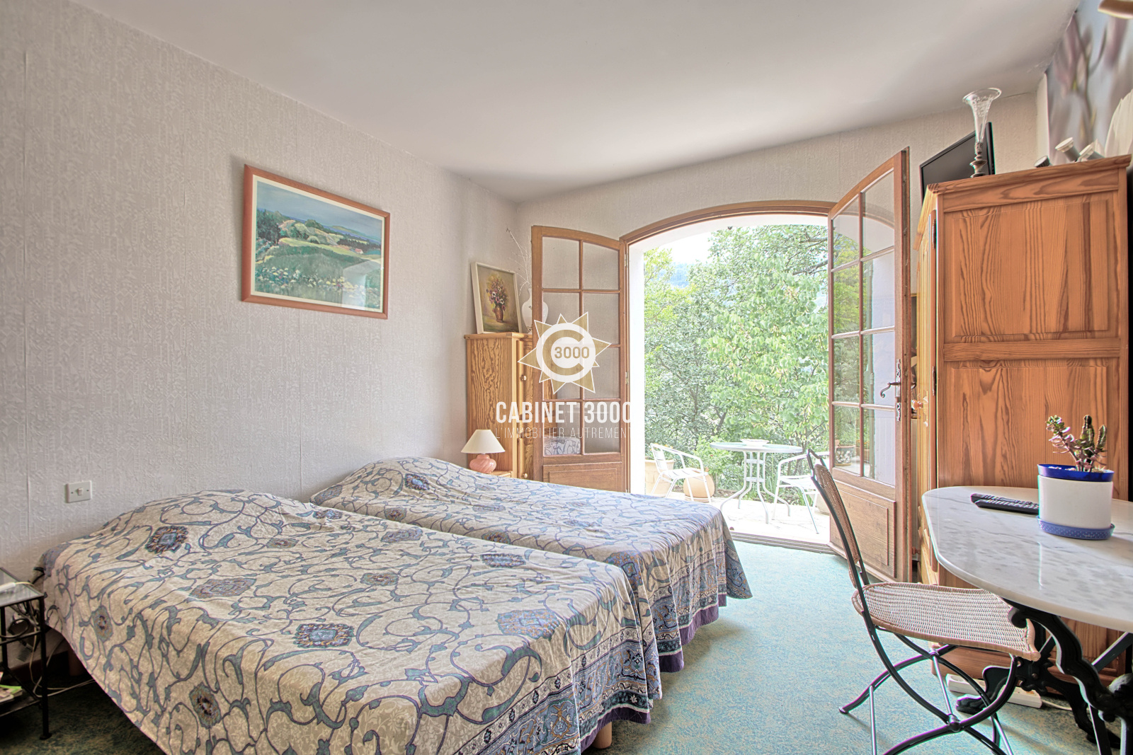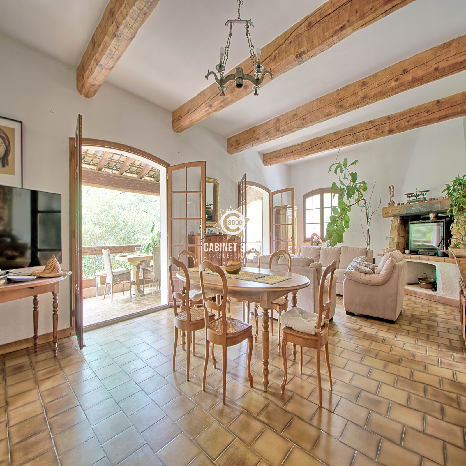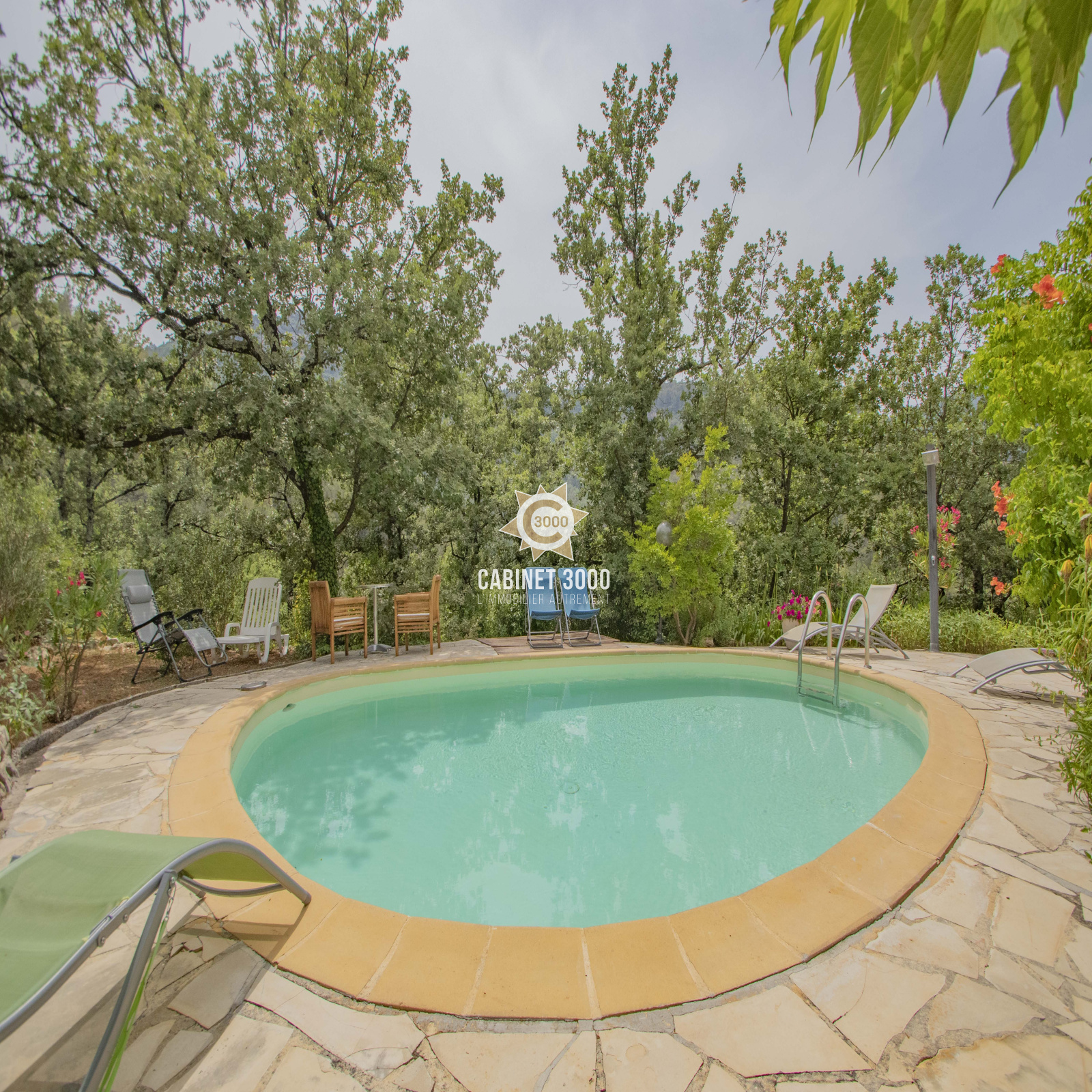 A Belgentier, nichée dans un écrin de verdure, maison d'hôtes depuis plus de 20 ans, de type T5 de 166 m², comprenant : cuisine équipée, salon avec cheminée donnant sur terrasse de 17 m², 4 chambres, salle de bain, 2 salles d'eau, WC et garage de 80 m² aménageable, sur une parcelle arborée d'essences méditerranéennes de 3000 m² avec piscine et maisonnette de 27 m². Une source privative alimente la maison en eau. Bonne rentabilité.