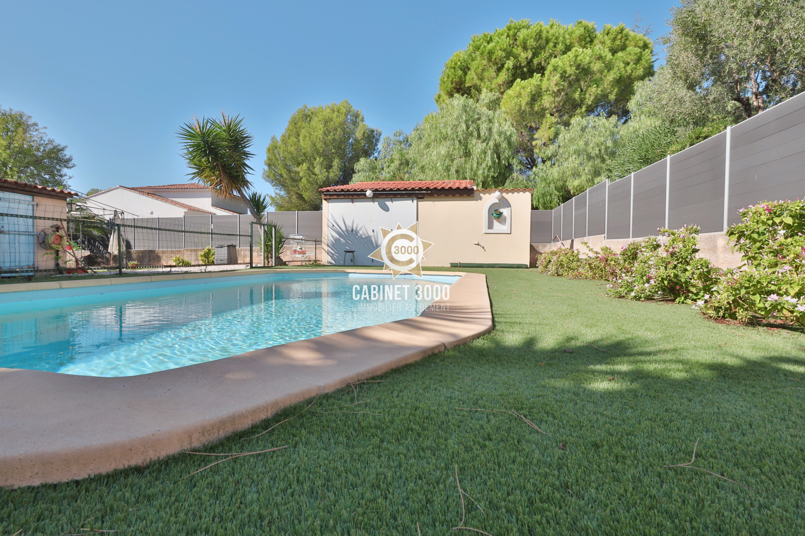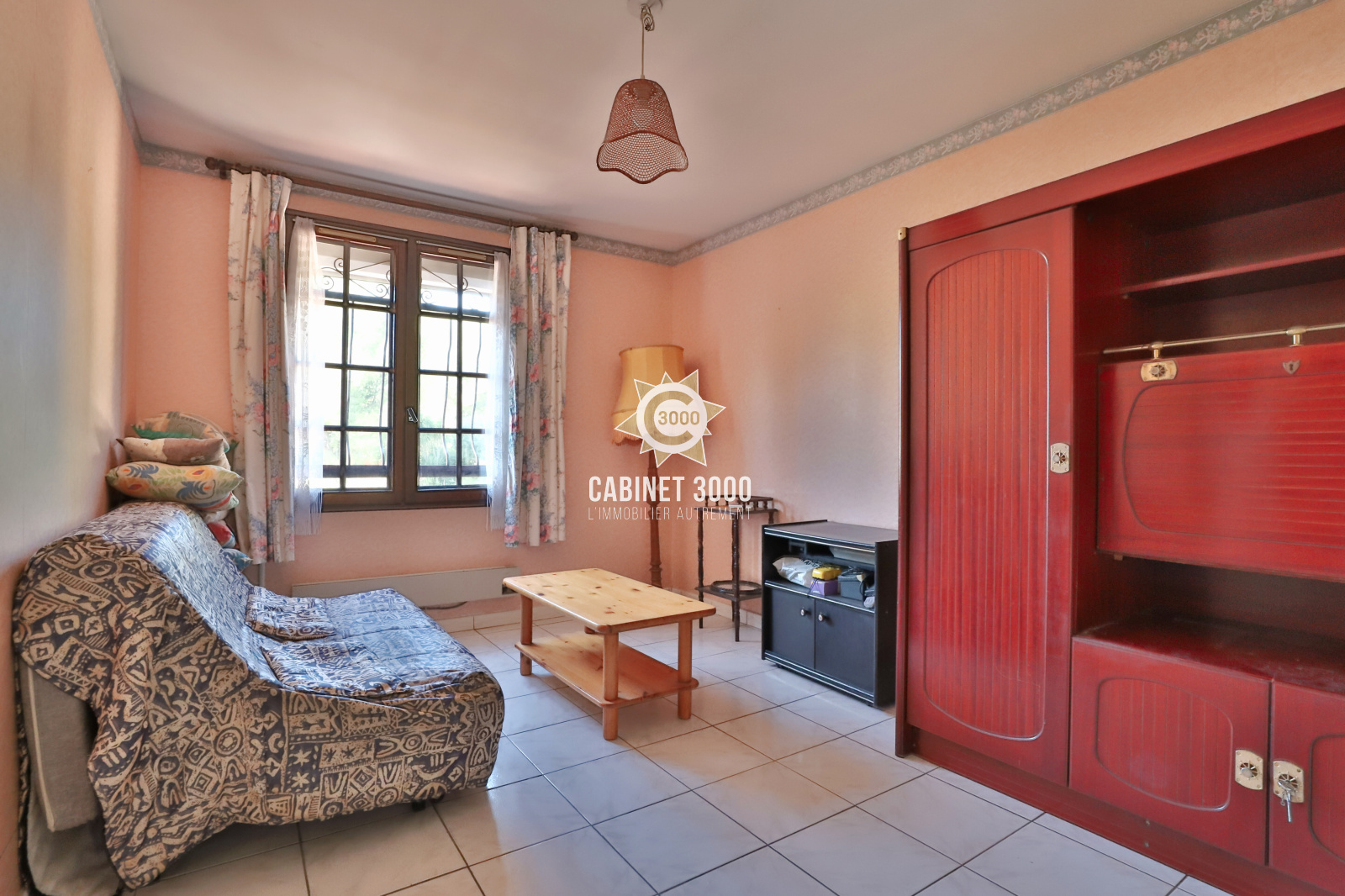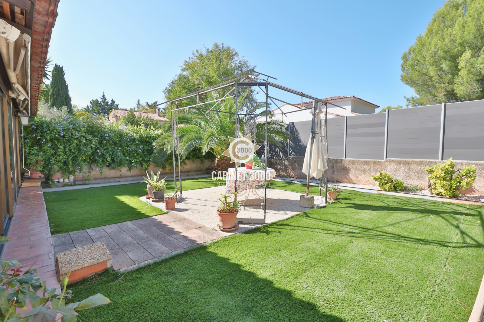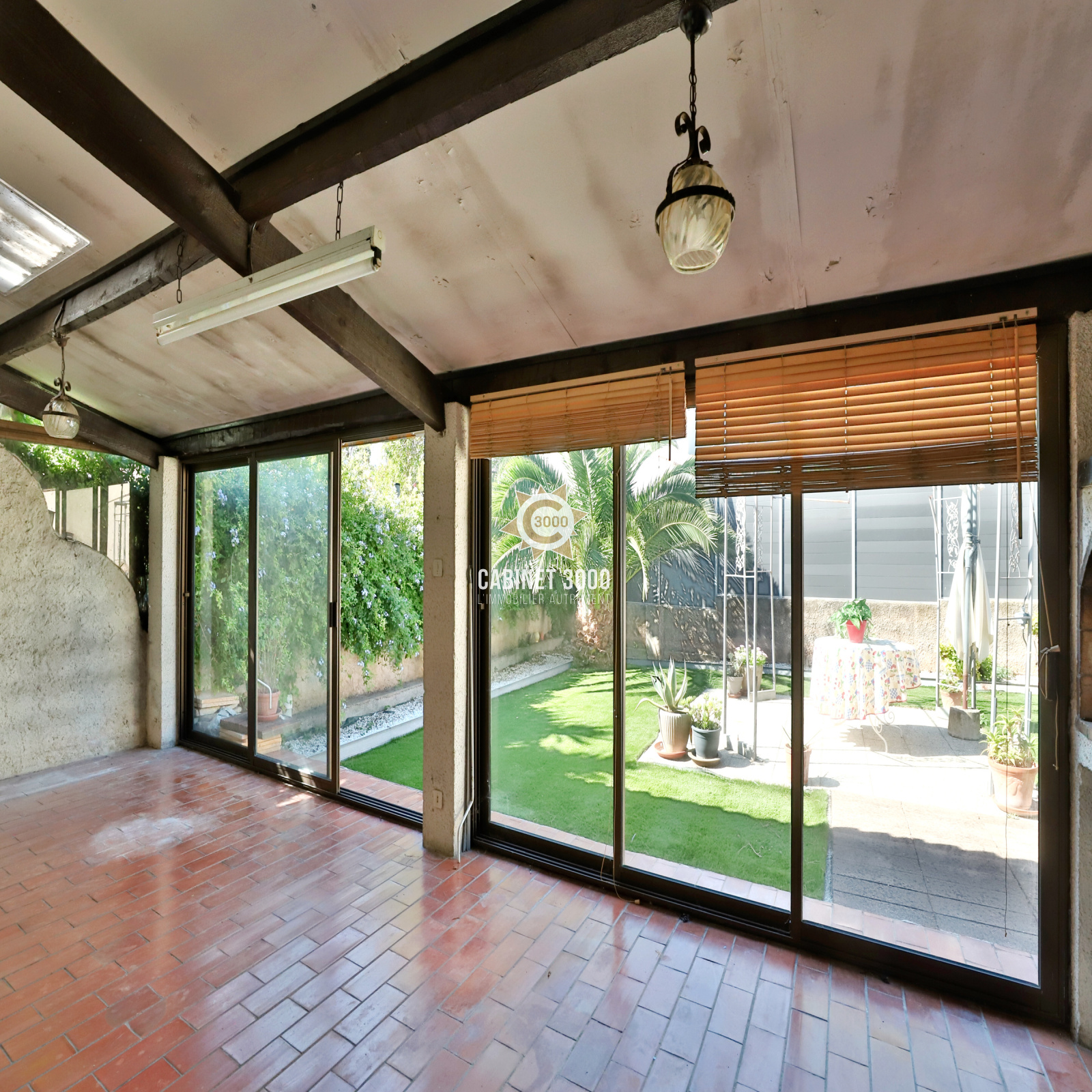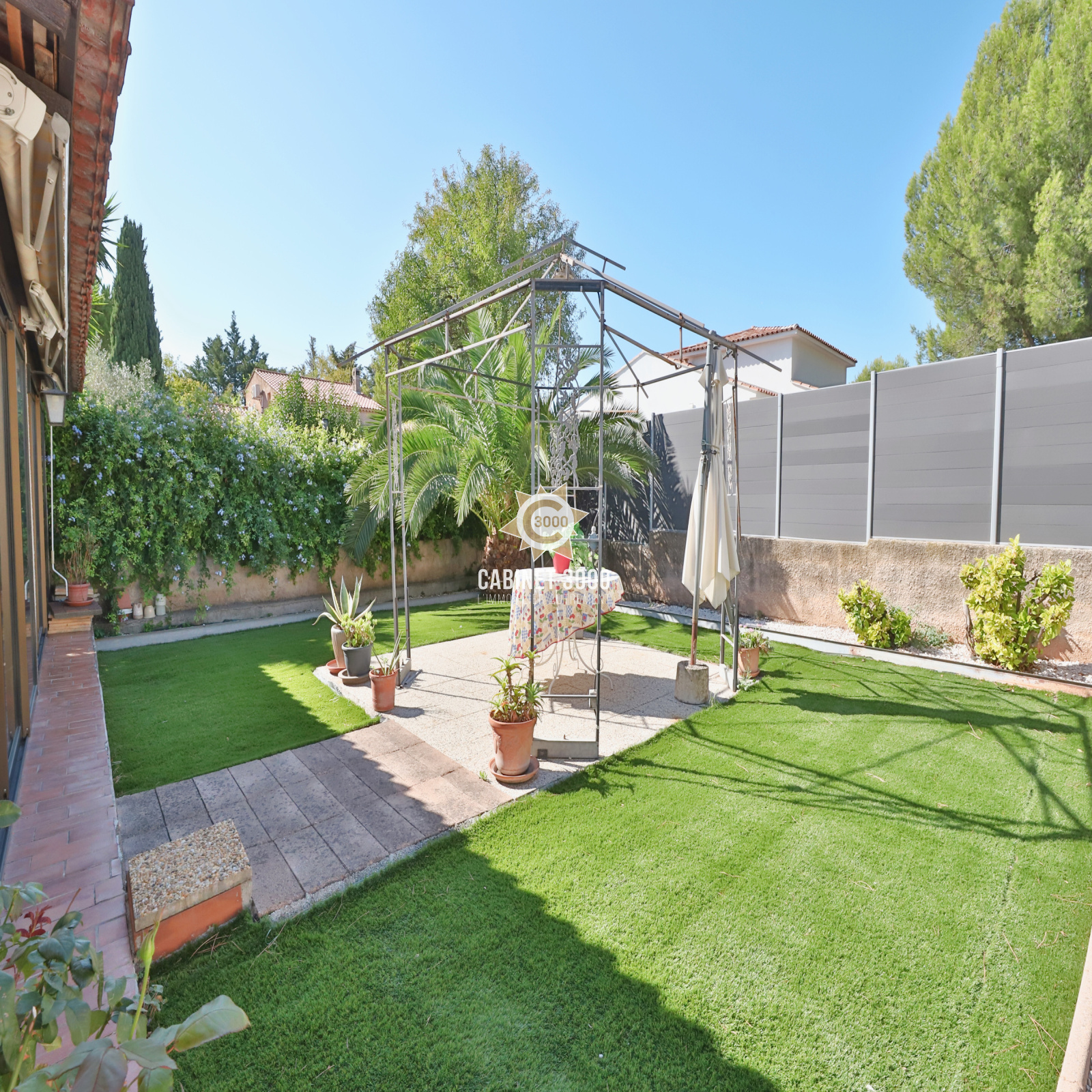 EXCLUSIVITE - A La Farlède, Centre-Ville, au calme absolu, maison mitoyenne d'un côté de type T5 de 118 m² comprenant : cuisine, salon/séjour avec cheminée à insert donnant sur véranda de 26 m² et jardin, 4 chambres avec placards, salle de bain, salle d'eau, WC et cellier, sur une parcelle de 525 m² avec piscine et dépendance. A rafraichir.